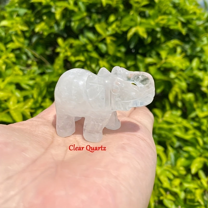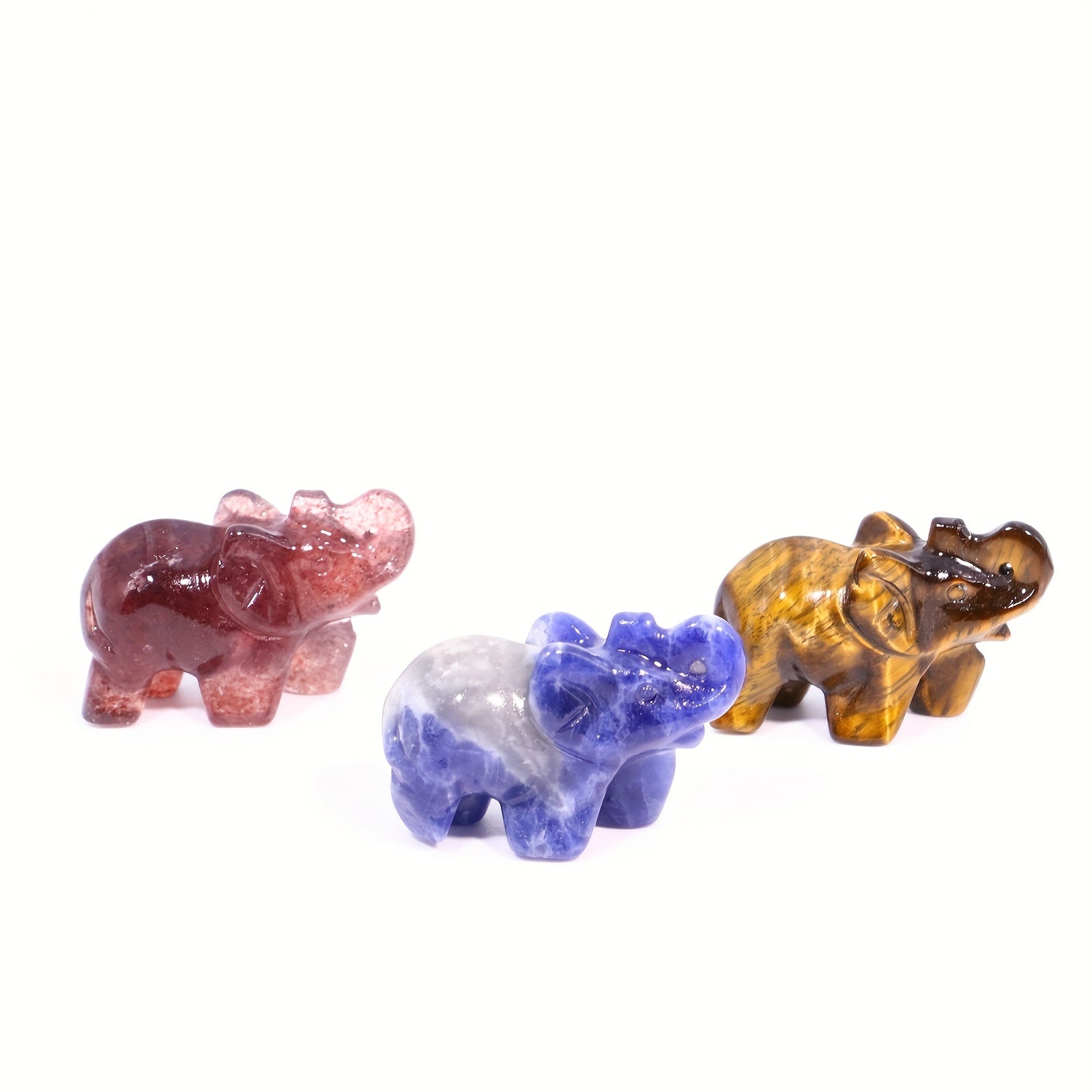 Crystal Elephant Statue Gemstone Animal Carving Home Decor