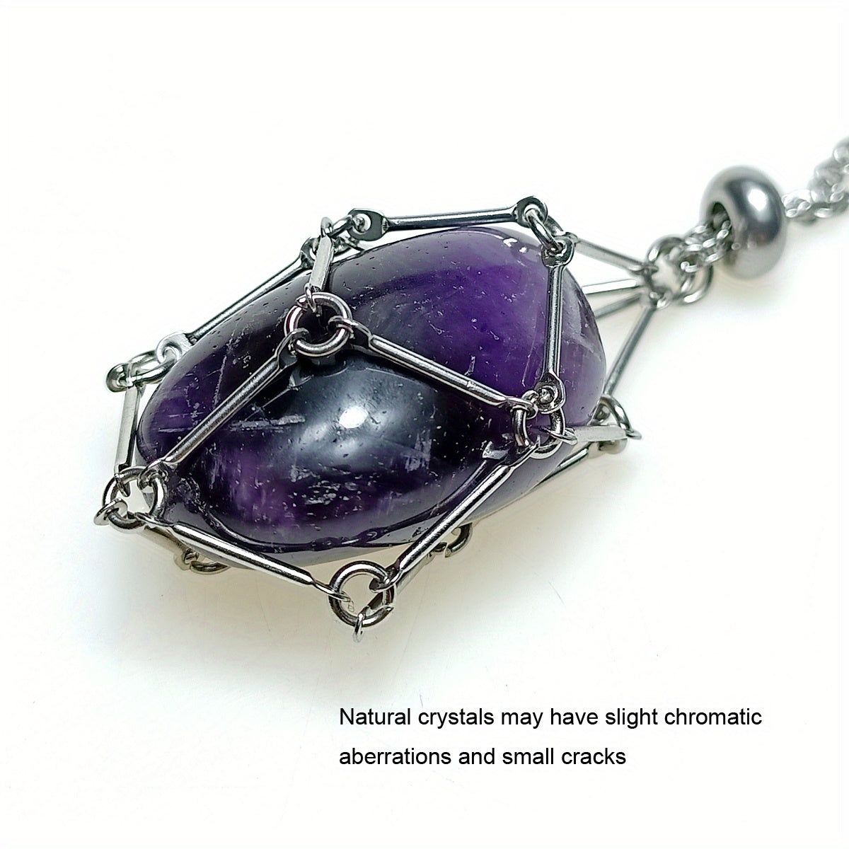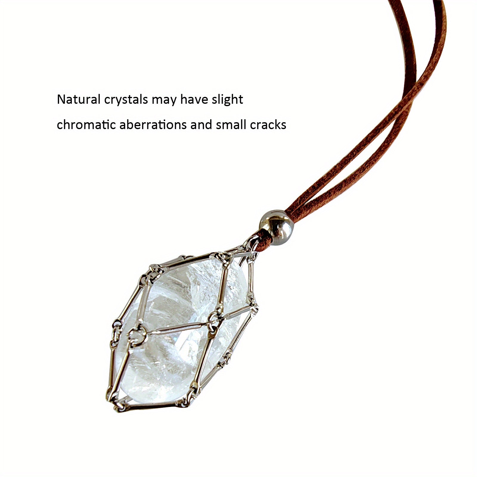 This stainless steel cage necklace is perfect for holding your favorite crystal. The adjustable length makes it suitable for both men and women. Make a statement with this quartz gemstone jewelry.