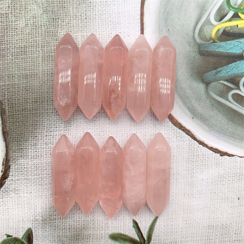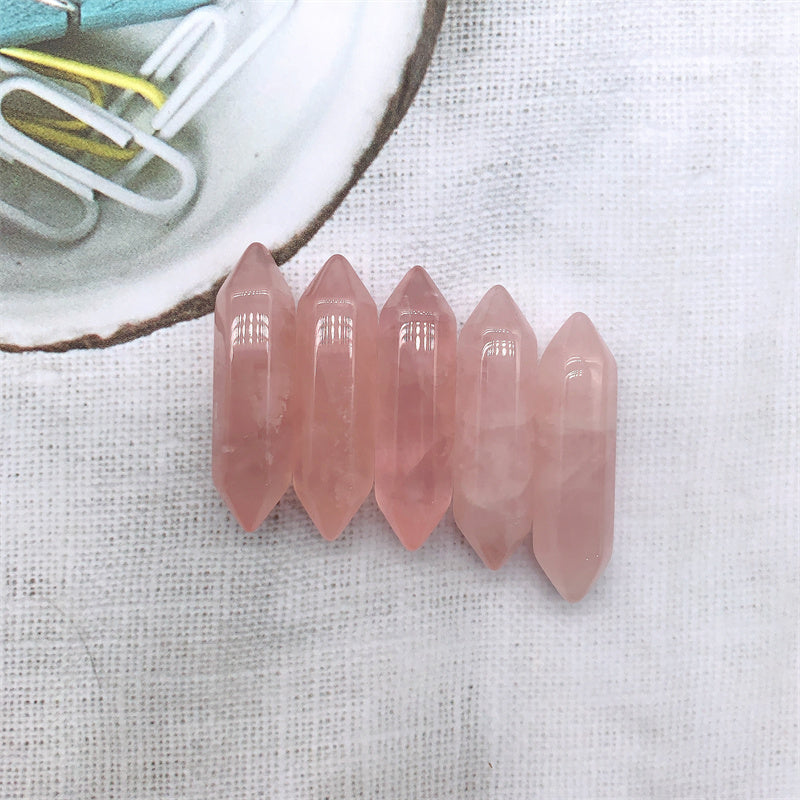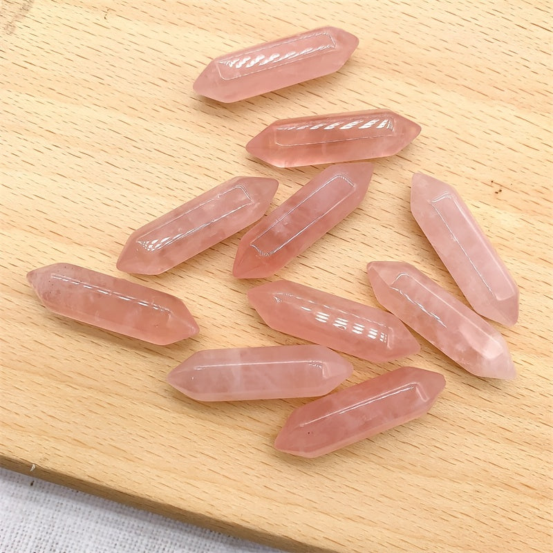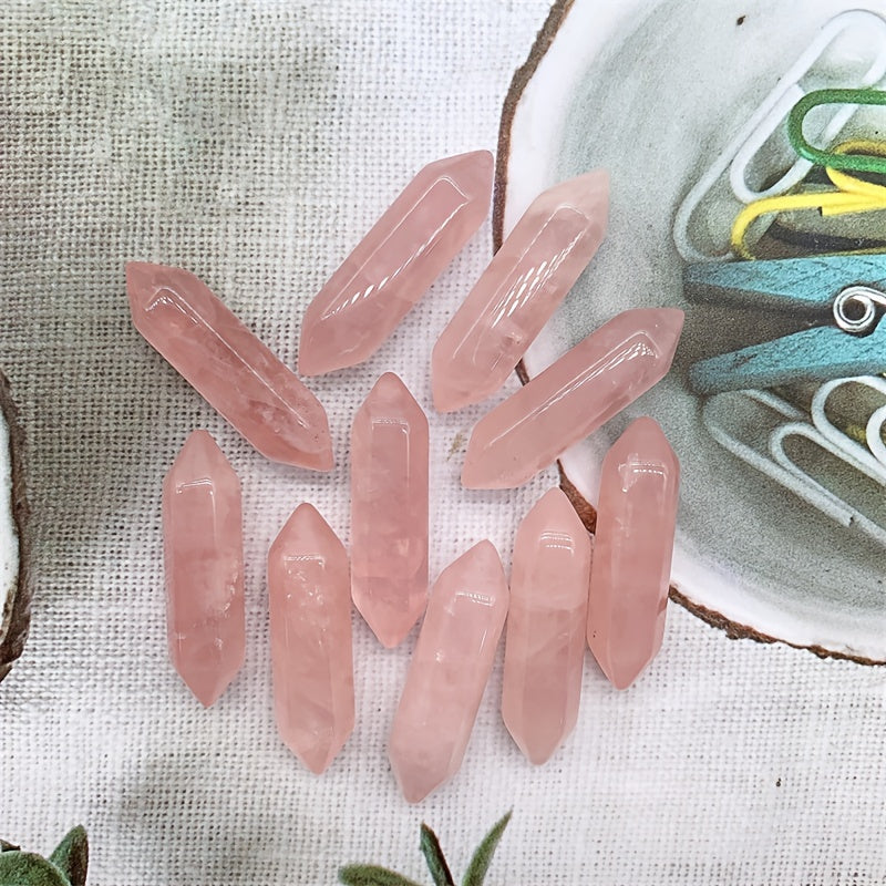 Experience the calming energy of natural rose quartz with these mini hexagonal points. Perfect for healing and meditation practices.