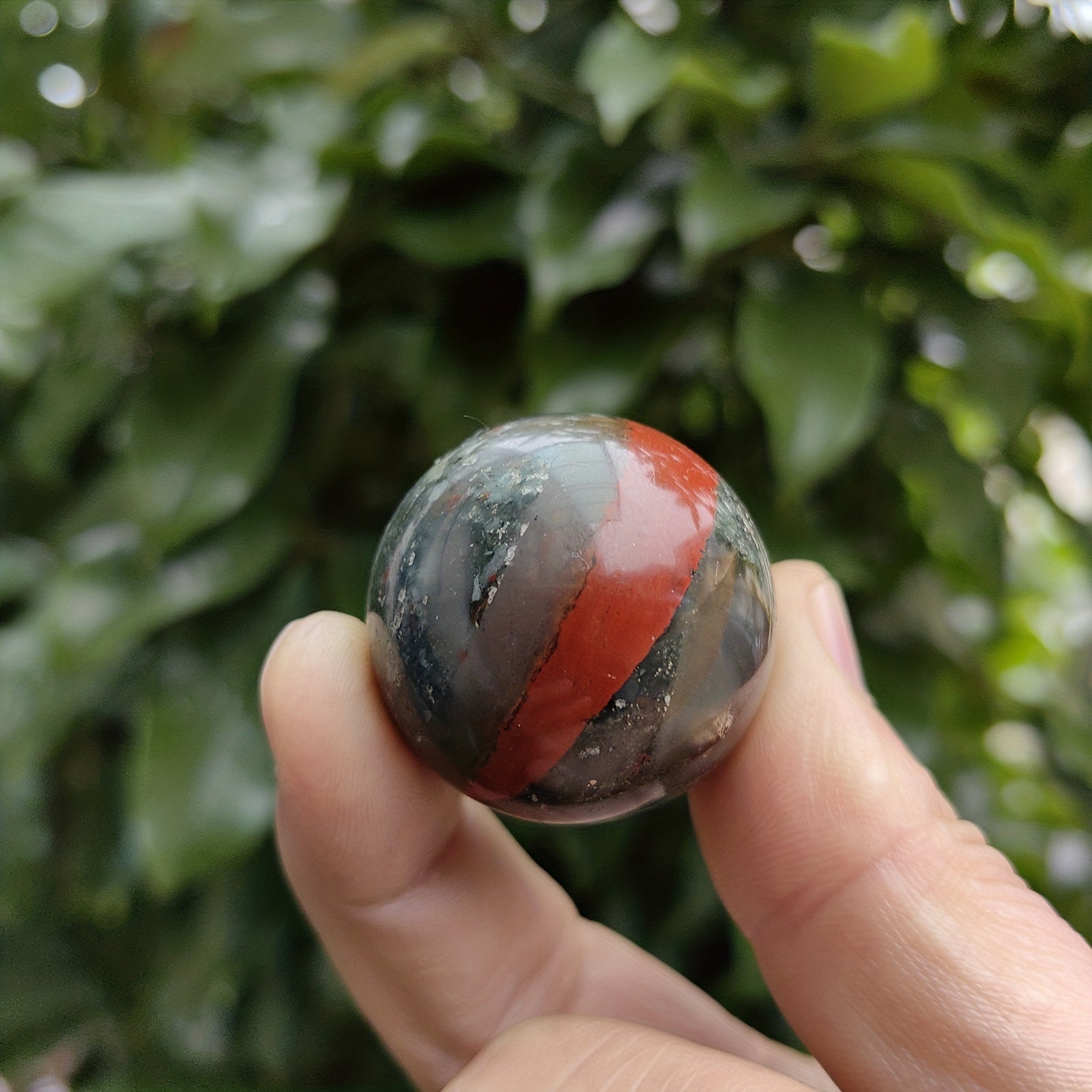 Enhance your meditation practice with this natural Crystal Dragon's Blood Stone ball. Perfect for energy work and spiritual healing.