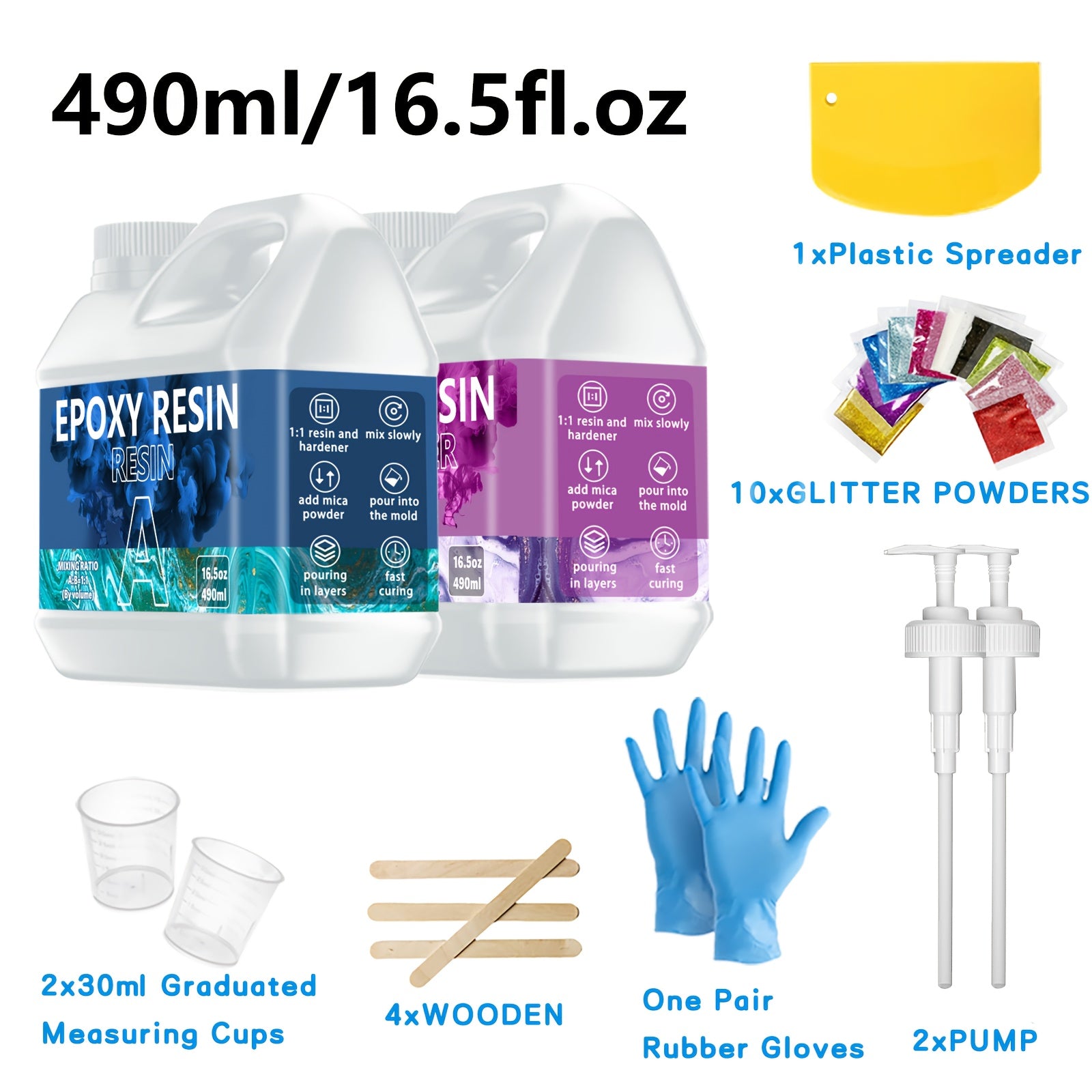 Epoxy Resin Kit 500ml-980ml Clear No Yellowing Bubble Self Filling