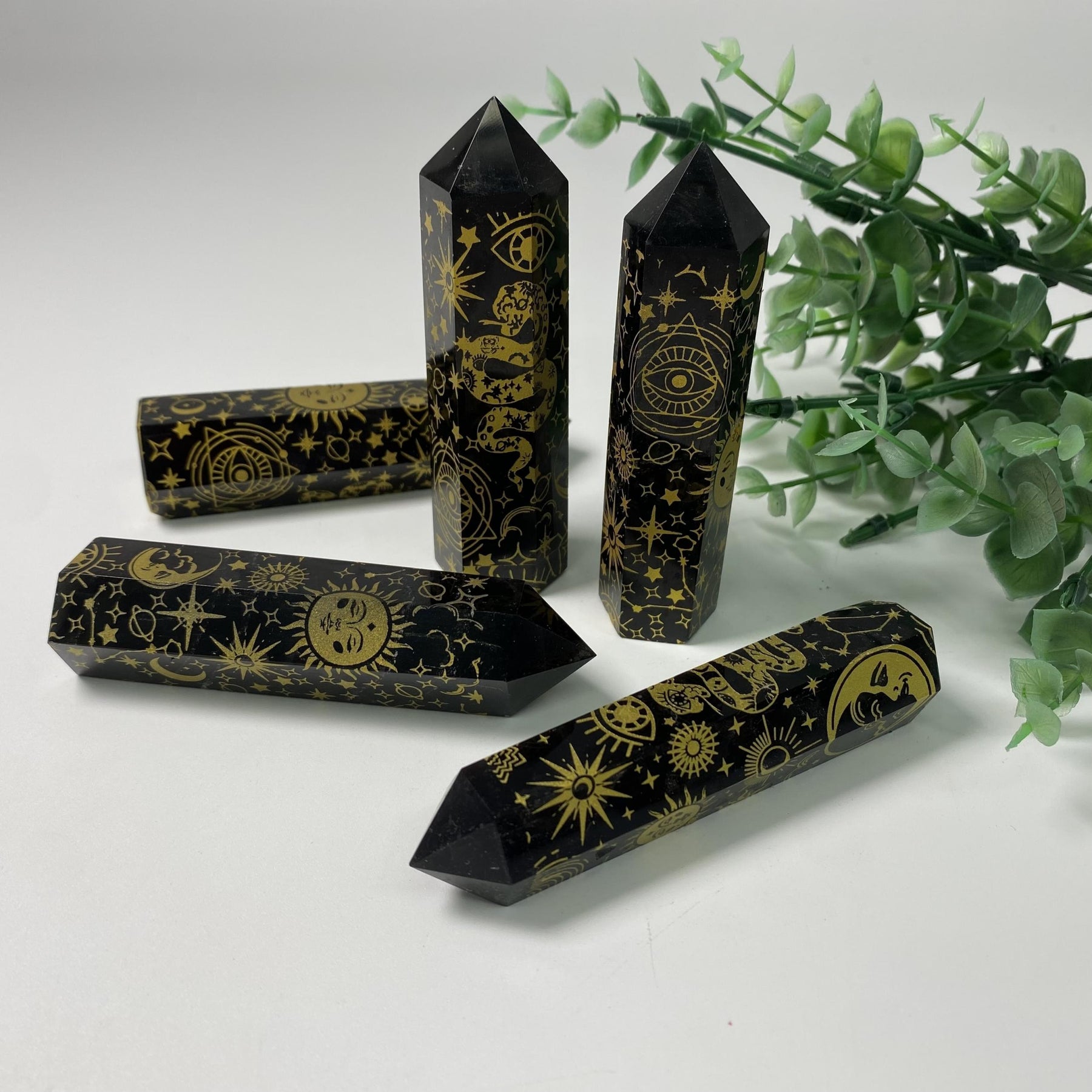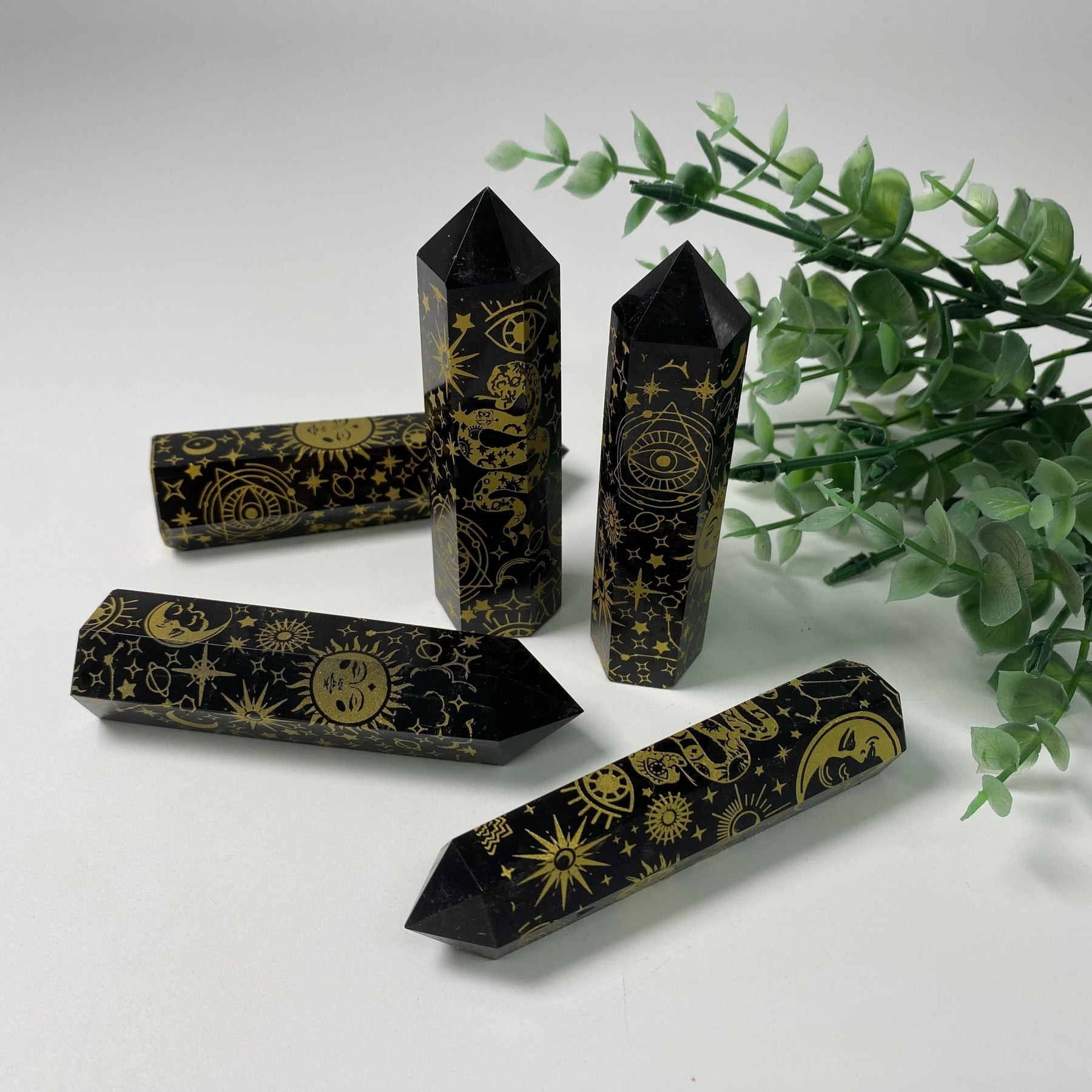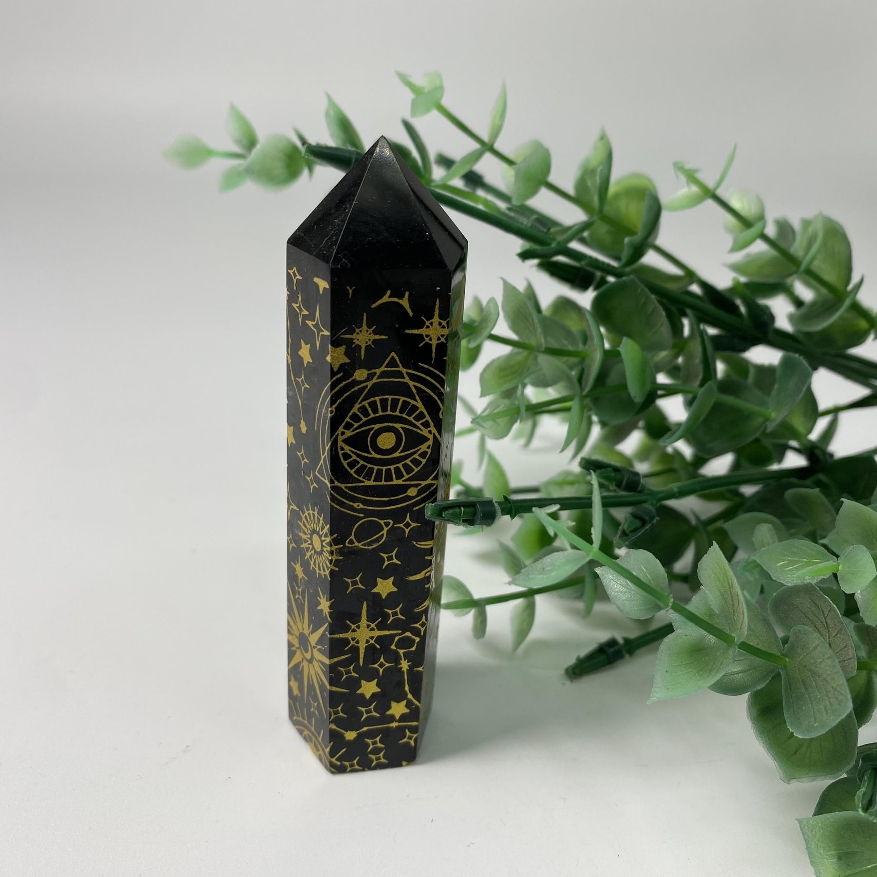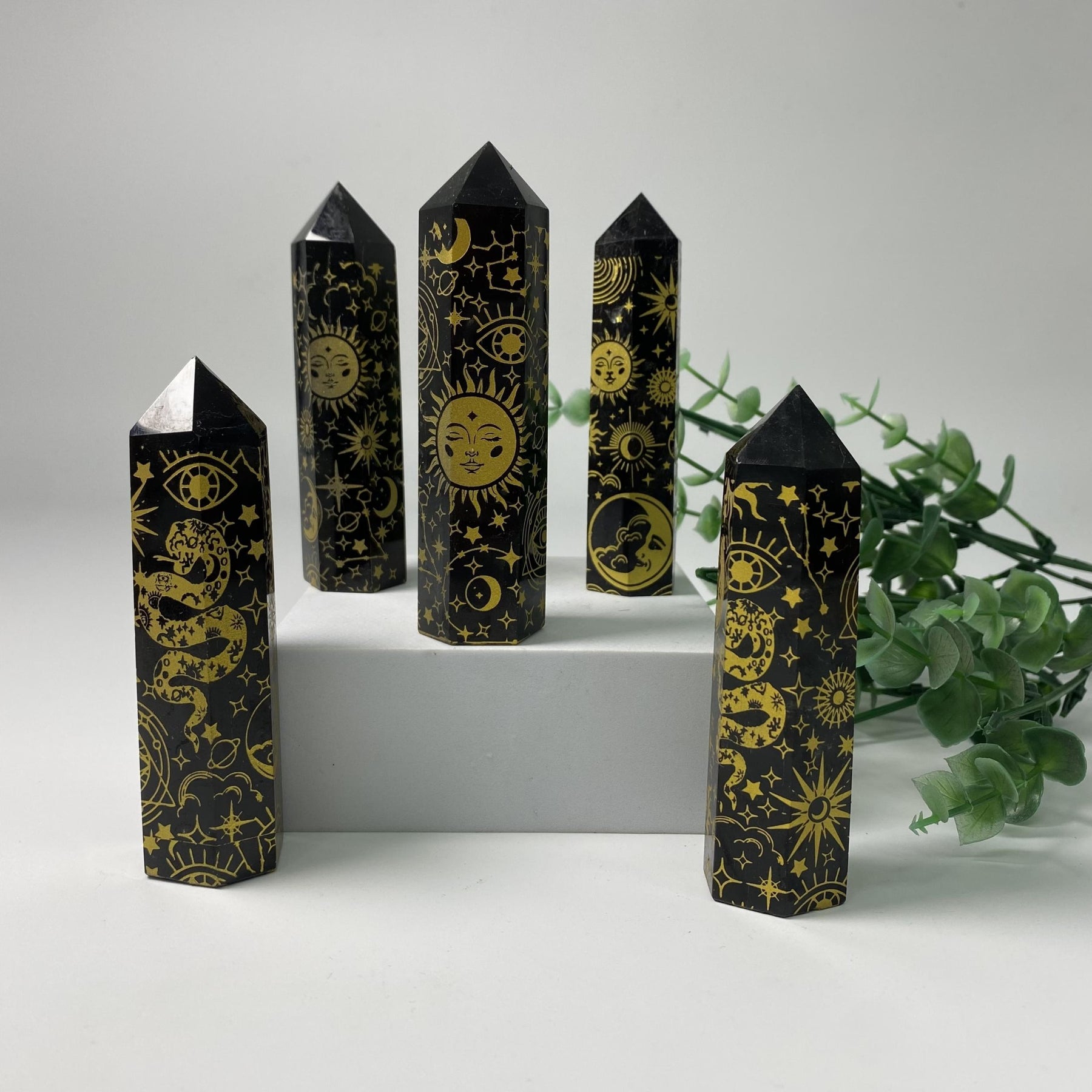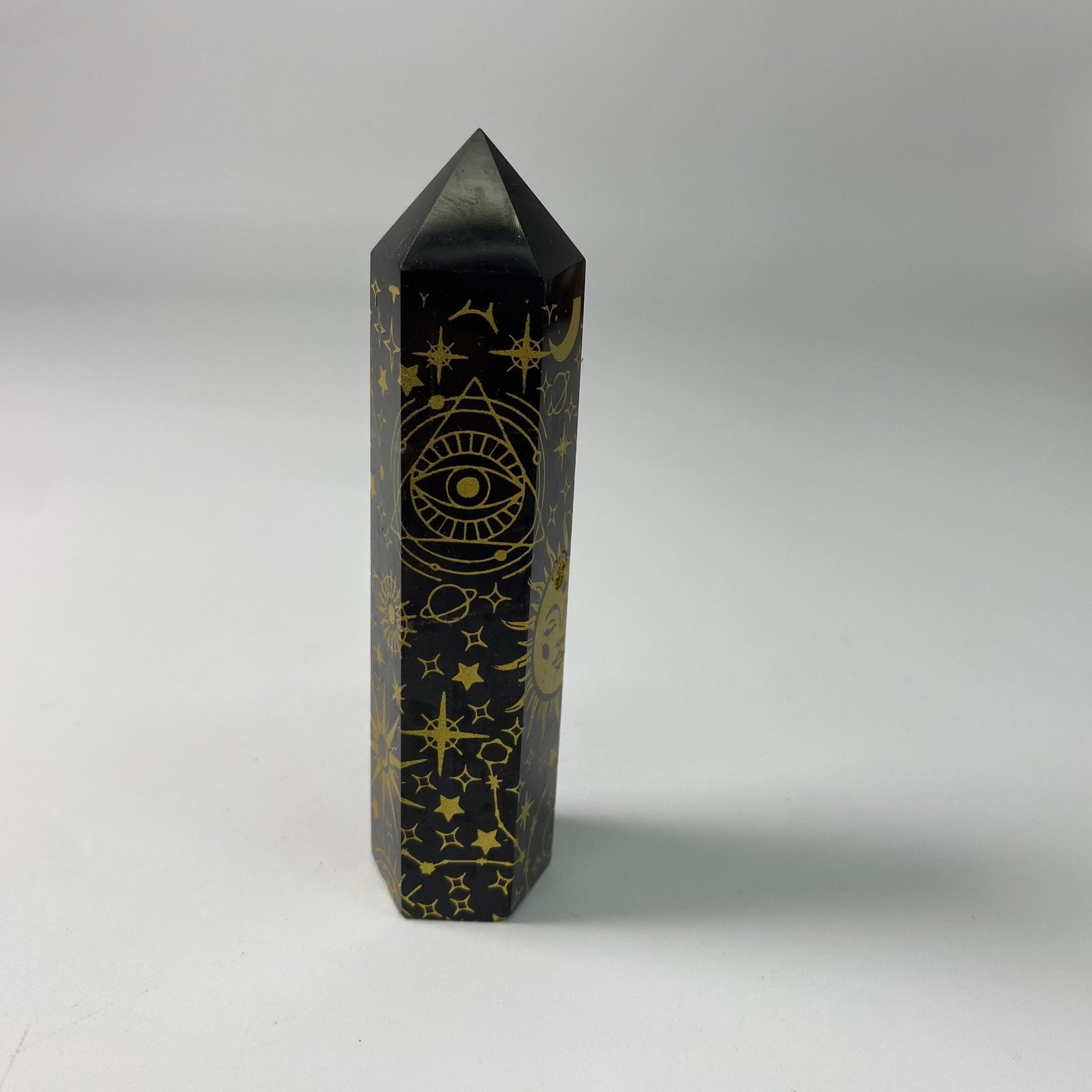 Add a touch of elegance to your space with this Golden Obsidian Snake Sun Moon crystal stone. Perfect for interior decoration, healing practices, and as a thoughtful gift for your loved ones. Bring peace and love into your home with this beautiful piece.