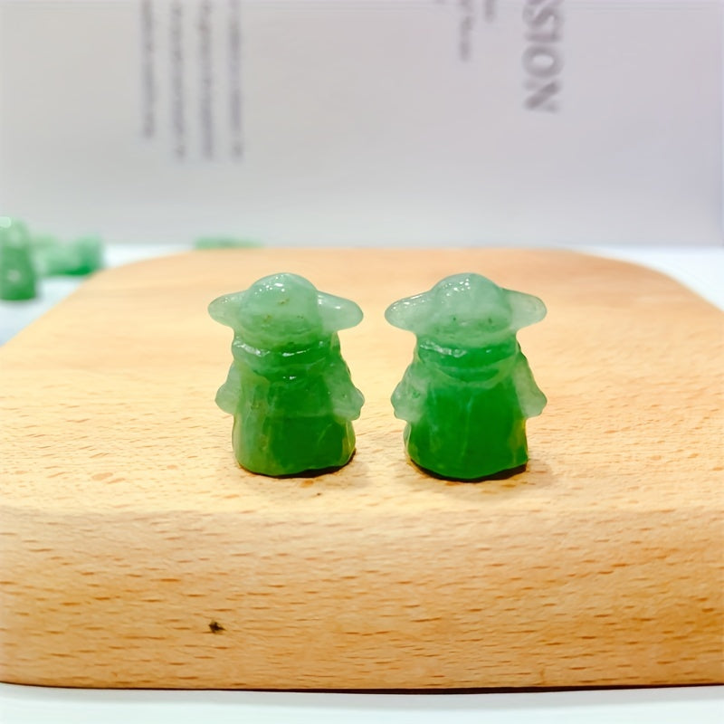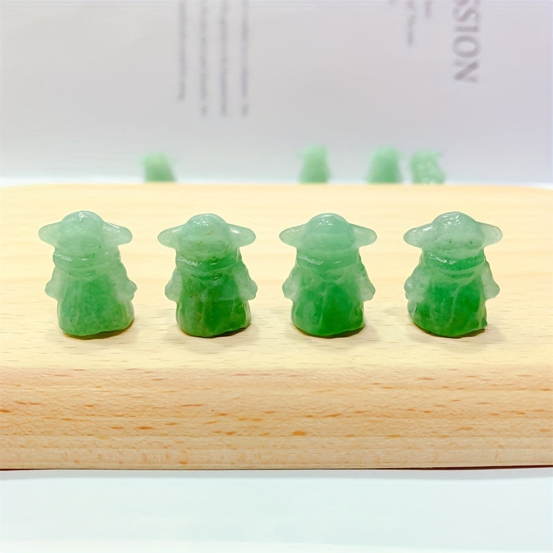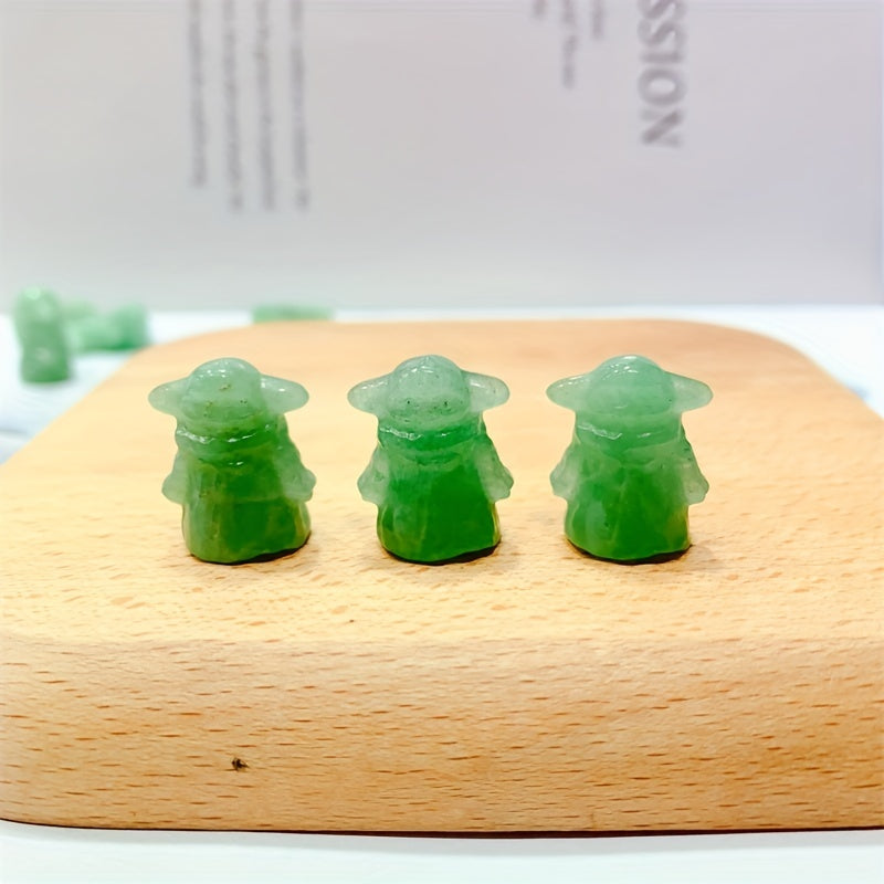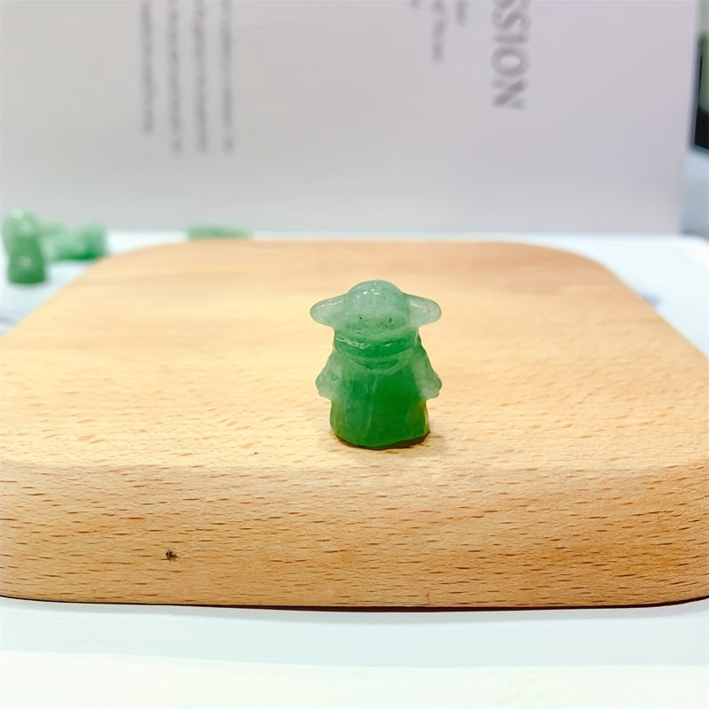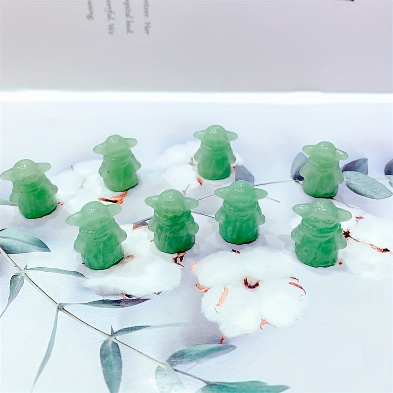 This natural green aventurine carving features a cute cartoon character design, perfect for healing and home decoration.