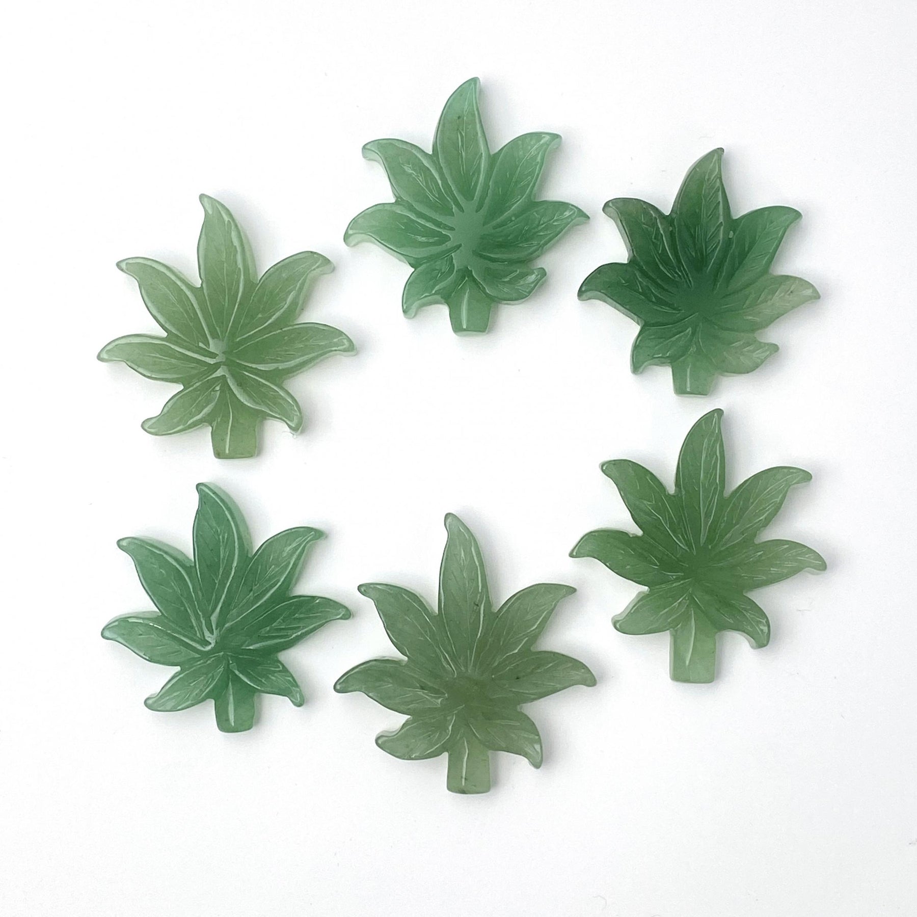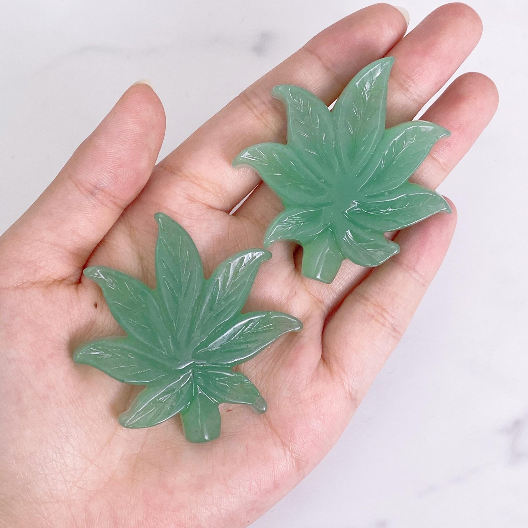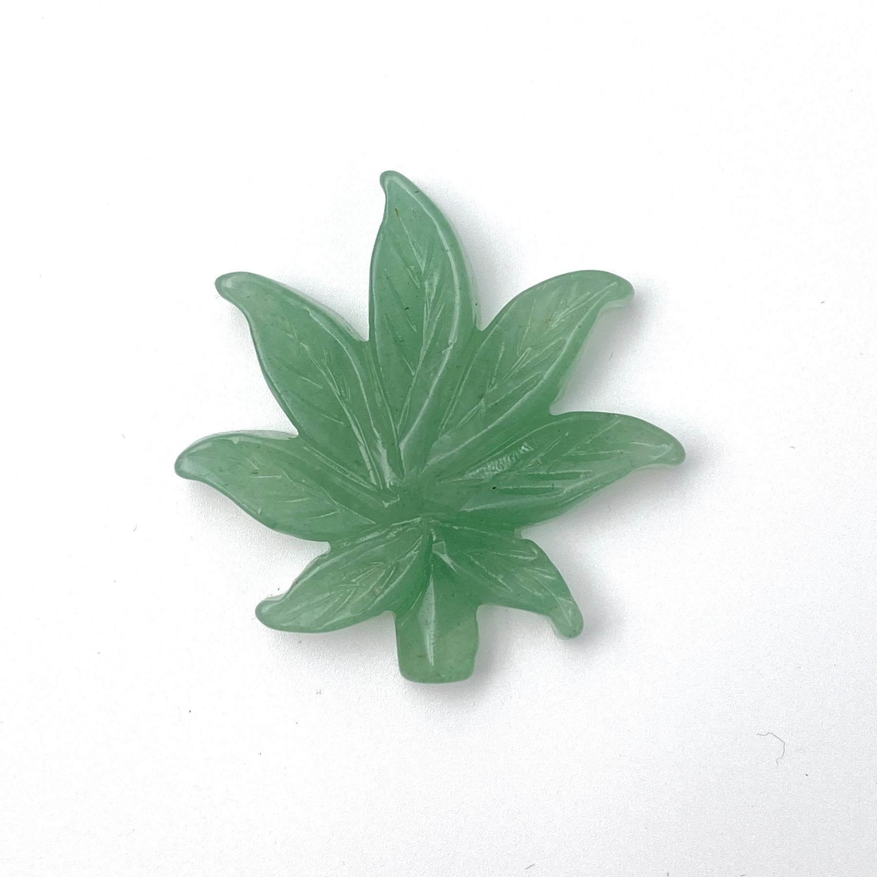 Bring the soothing energy of green aventurine into your space with this beautifully carved leaf crystal. Ideal for home decoration and healing practices.