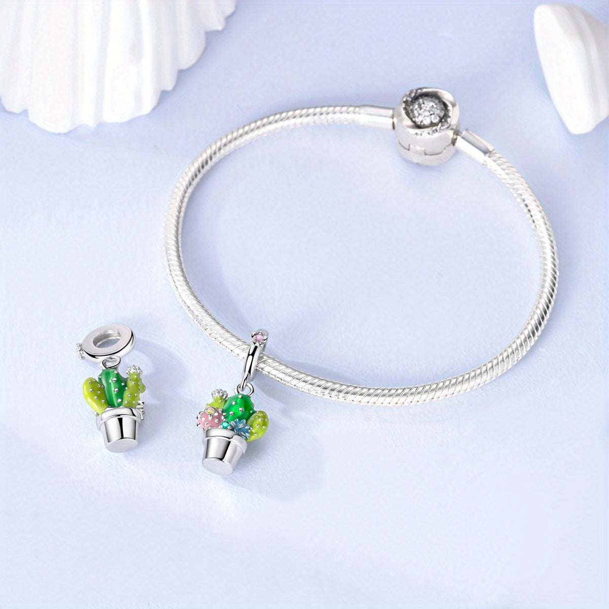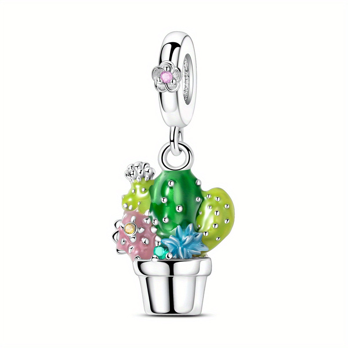 Add a touch of nature to your creations with this silver-plated green enamel cactus charm featuring synthetic zirconia. Perfect for snake bracelets and necklaces.