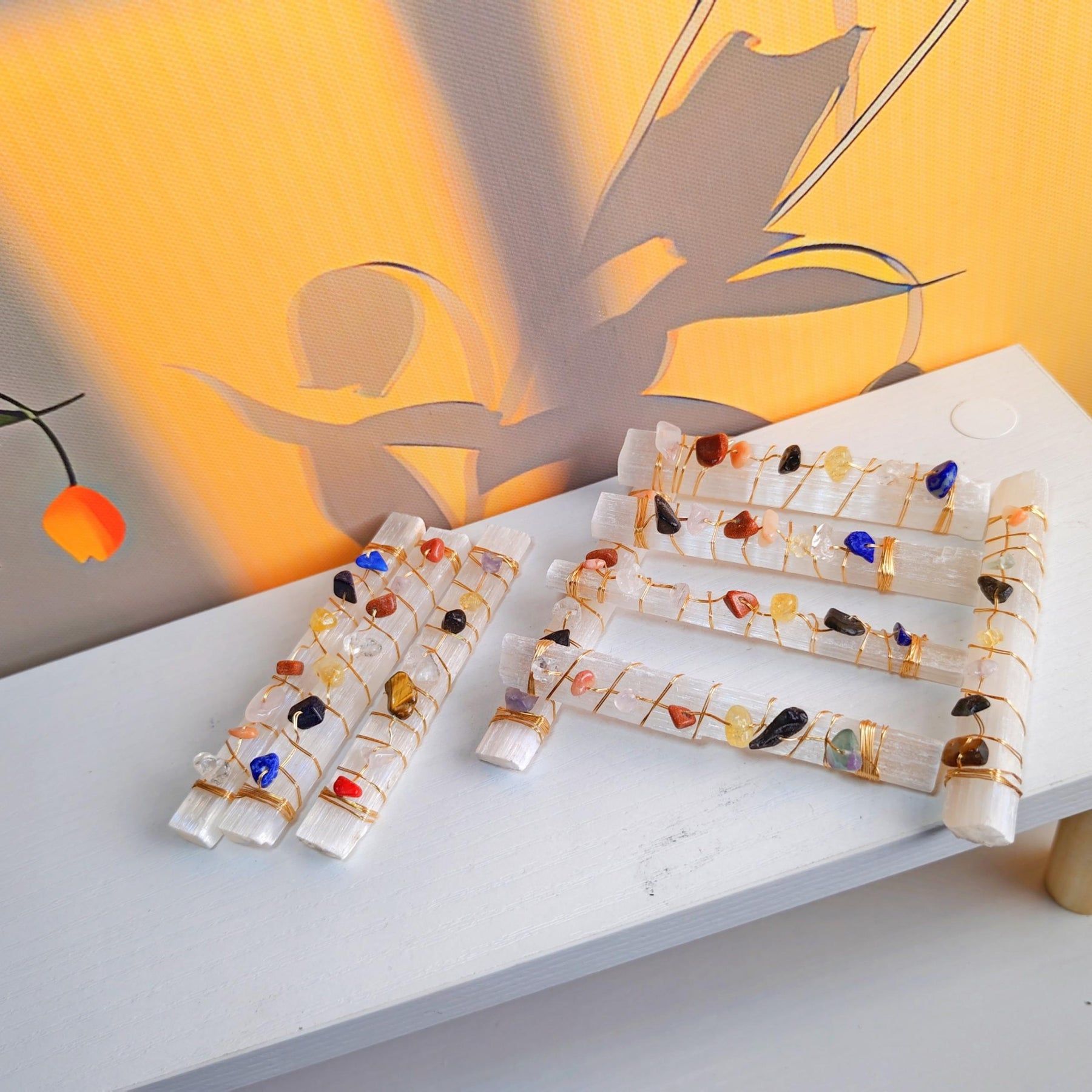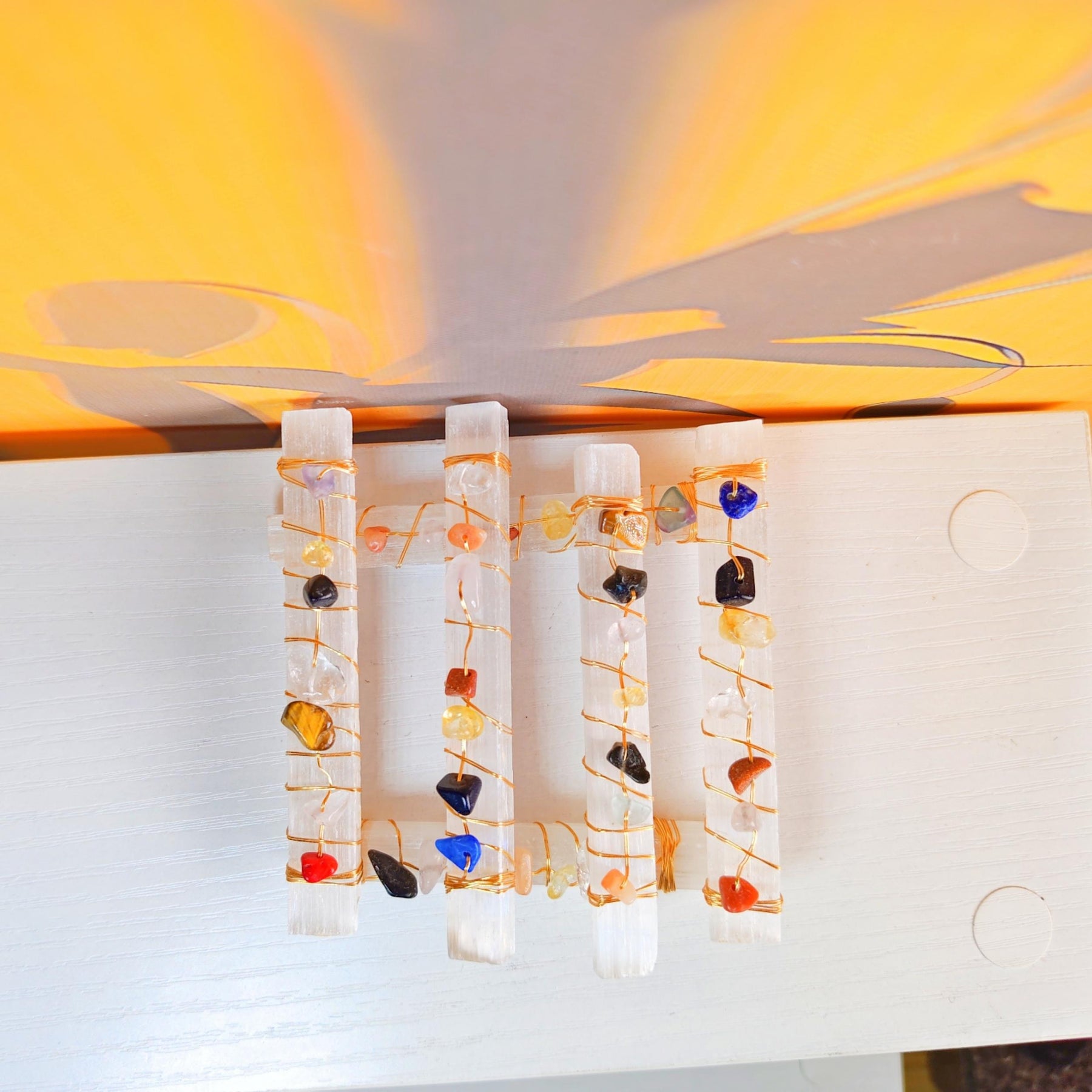 This beautiful gypsum strip ornament is a natural crystal carving that brings healing energy. Perfect for decorating your home or office space.