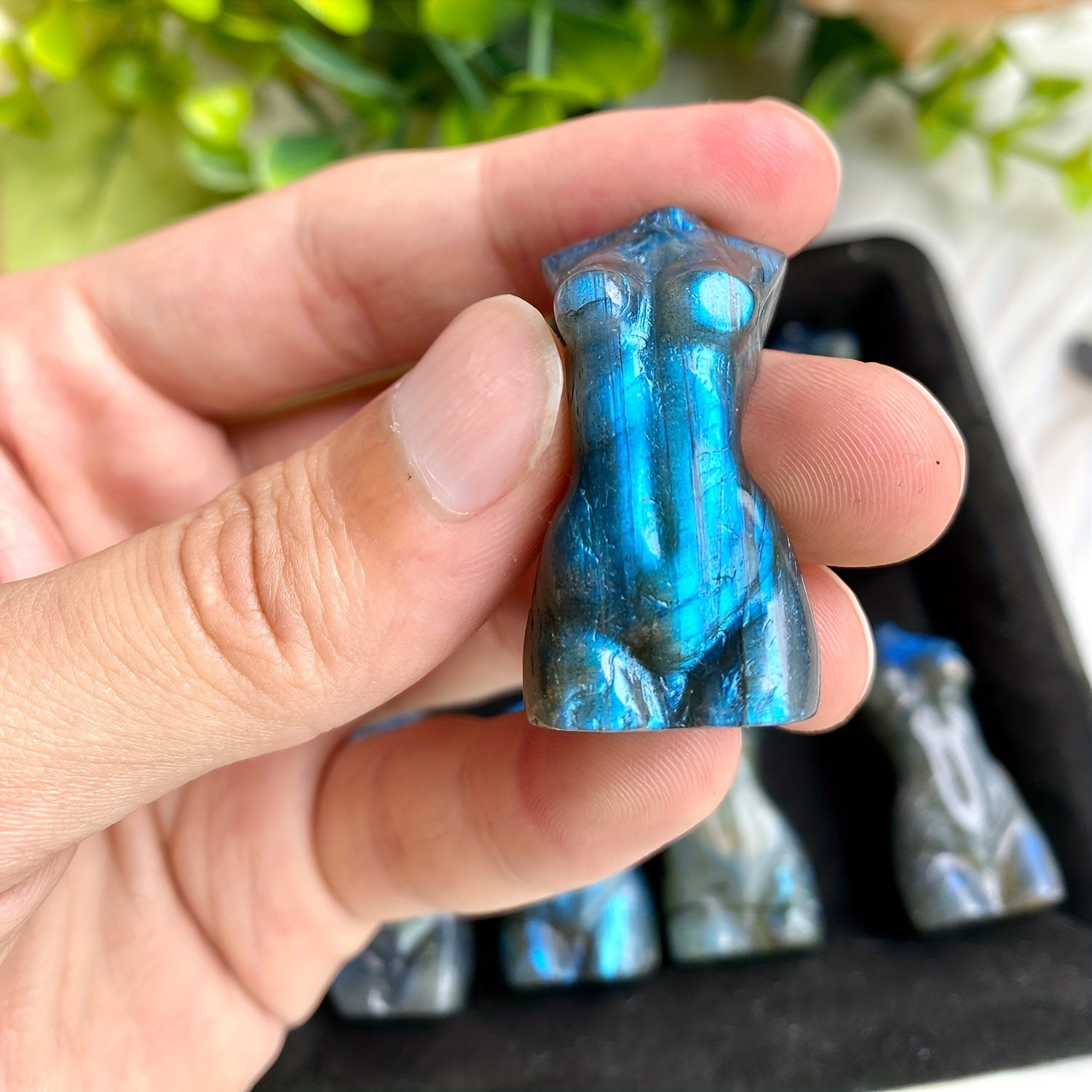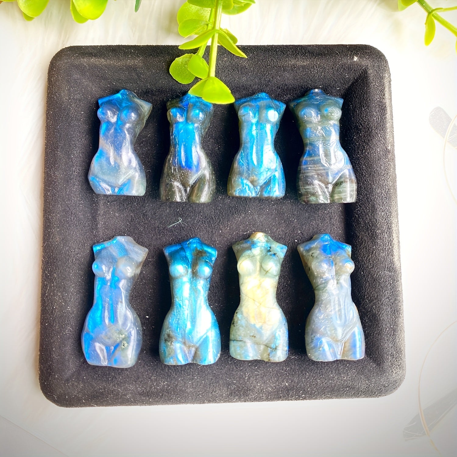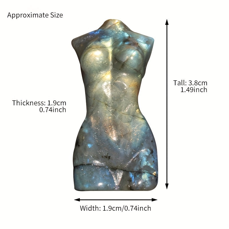 This stunning Labradorite female body carving is a natural crystal handicraft that serves as a beautiful decoration. It makes a unique and eye-catching addition to any space.