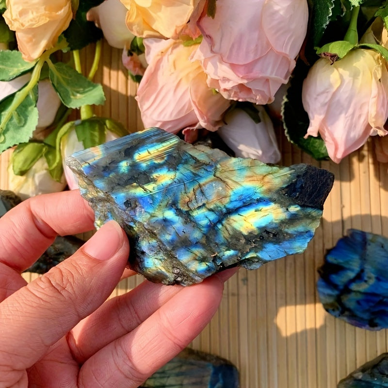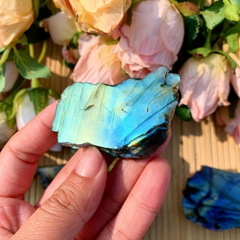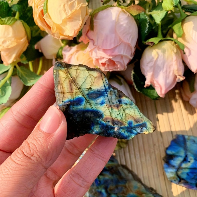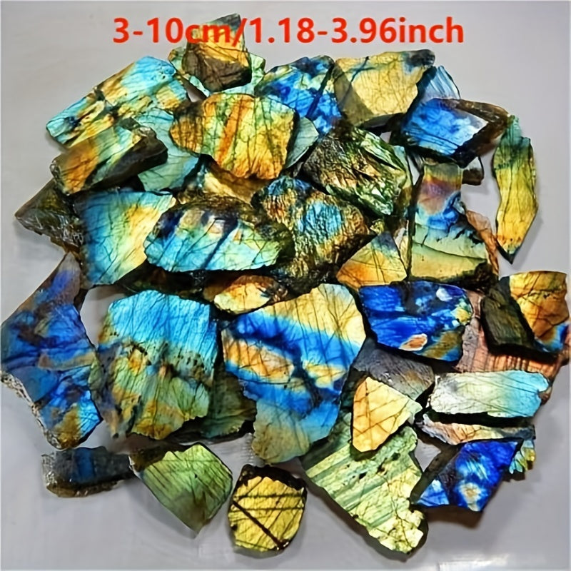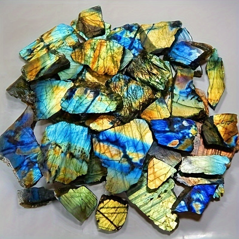 Enhance your indoor space with these high gloss yellow Labradorite slabs. Perfect for crystal healing and decorative projects.