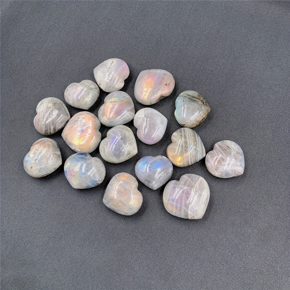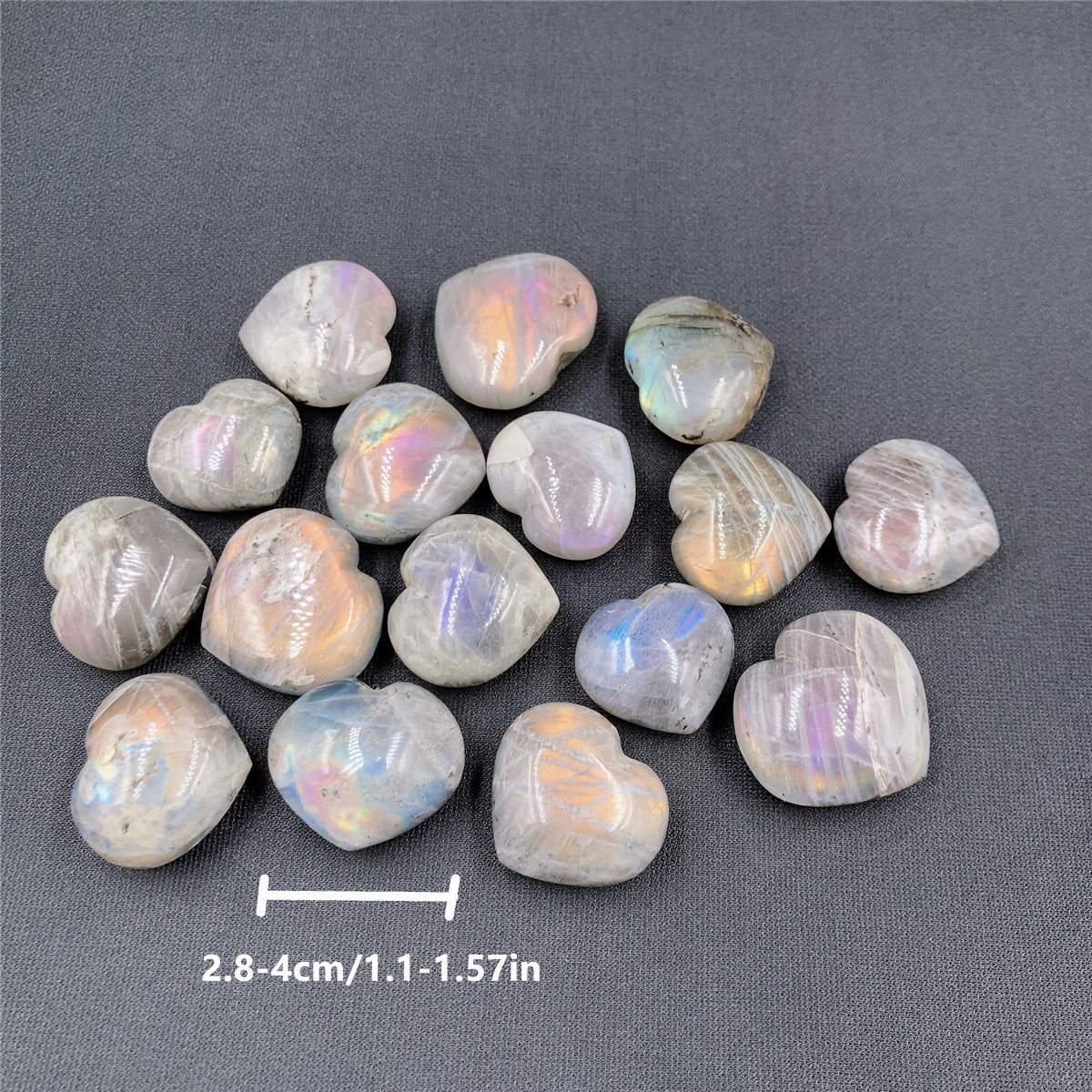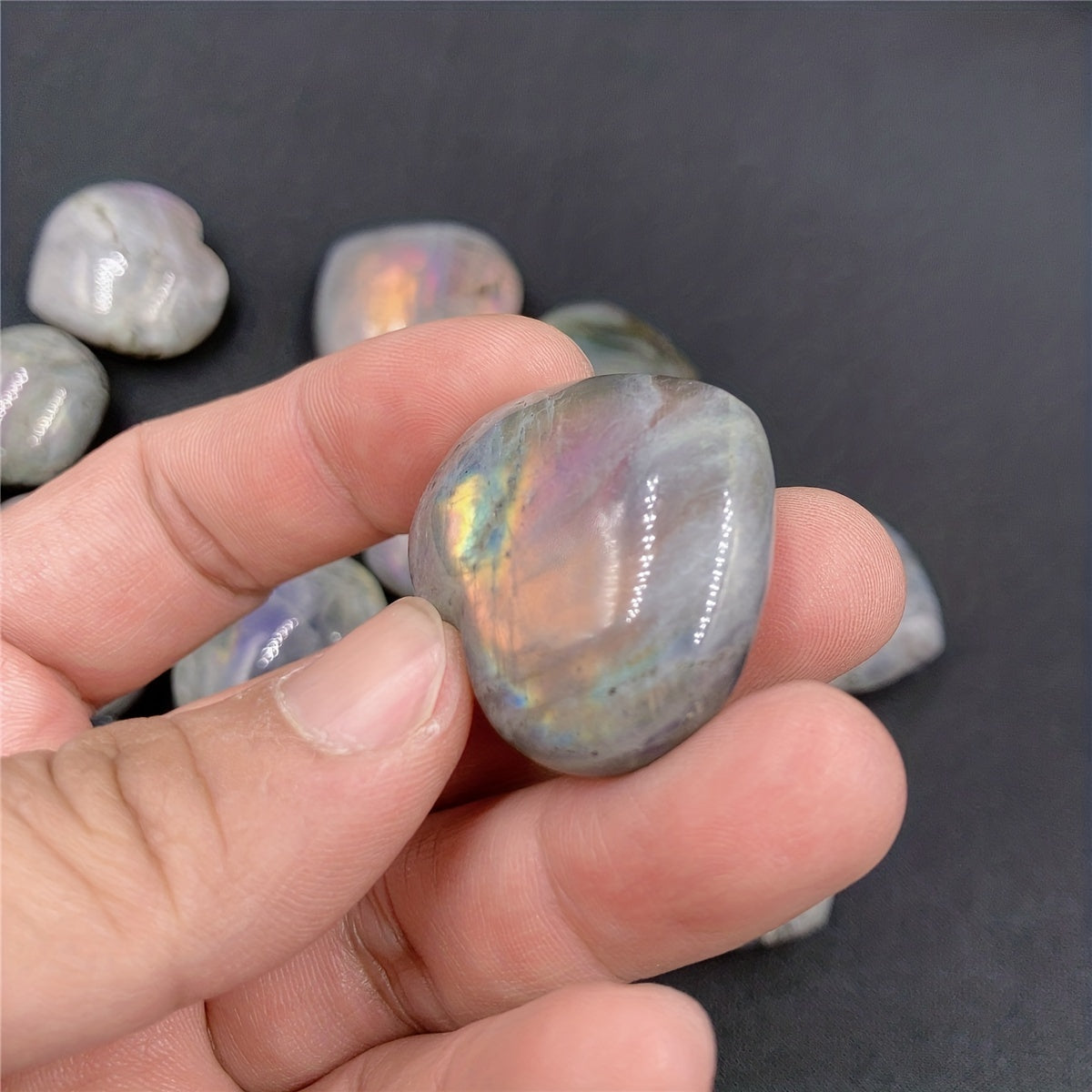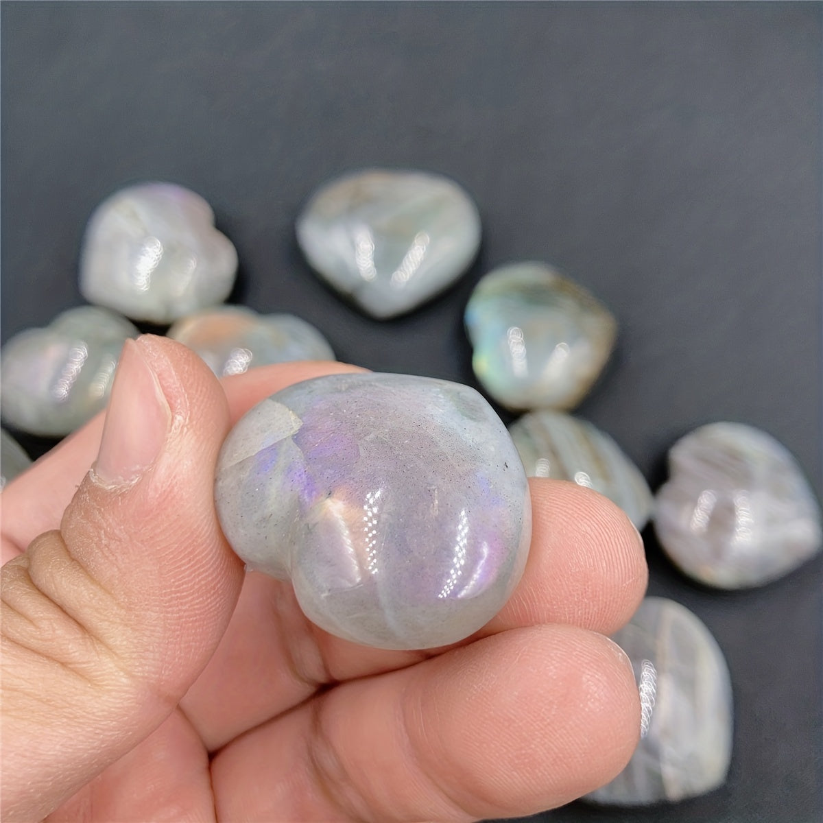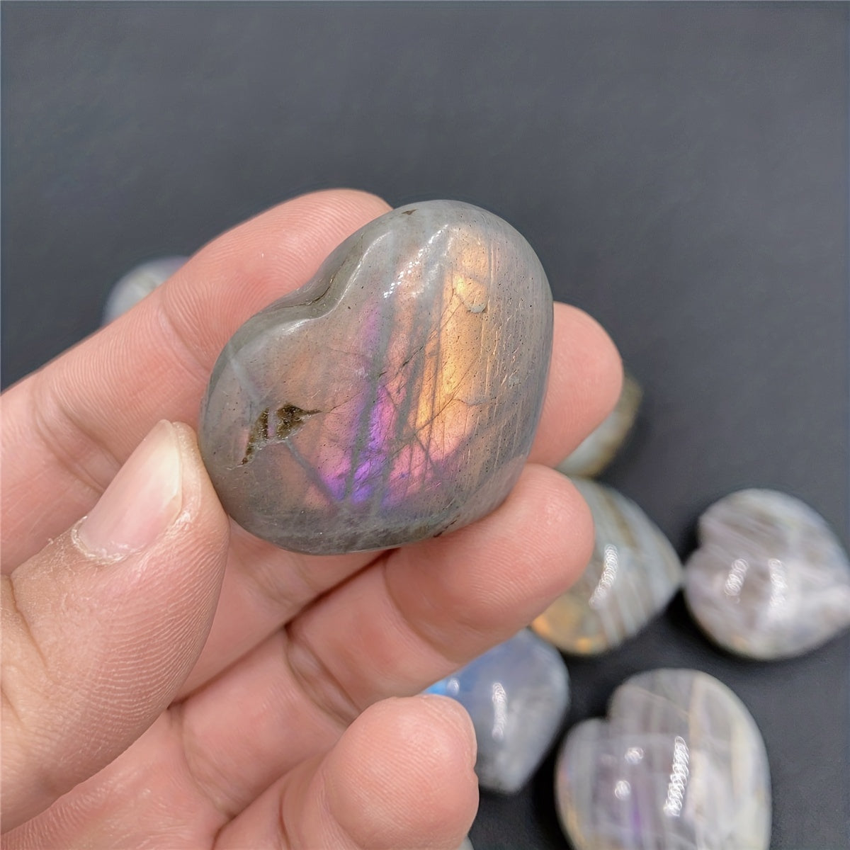 This natural labradorite stone love shape pendant is perfect for DIY projects, healing practices, and home decor. Its colourful and vibrant design adds an elegant touch to any setting.