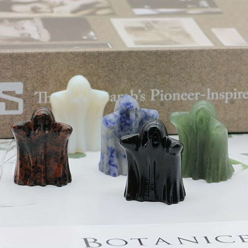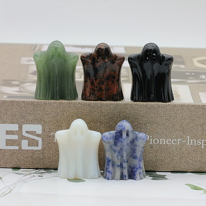 This adorable ghost carving made from natural stone is a perfect Halloween gift. It can be used as a table decoration or holiday decor to add a festive touch to any room. The healing crystal properties of the stone make it a unique and special gift for someone special.