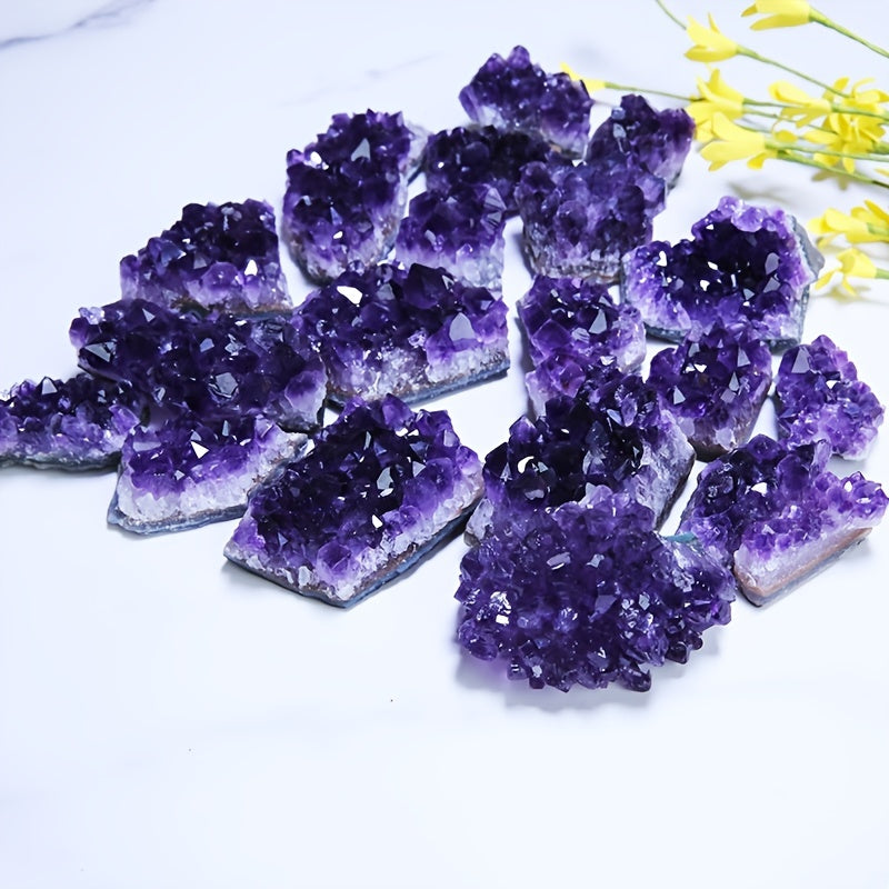 This beautiful natural Amethyst cluster mineral specimen is perfect for adding an oriental mysterious touch to your collection or using as a DIY jewelry accessory. Each piece is unique and showcases the beauty of Amethyst.