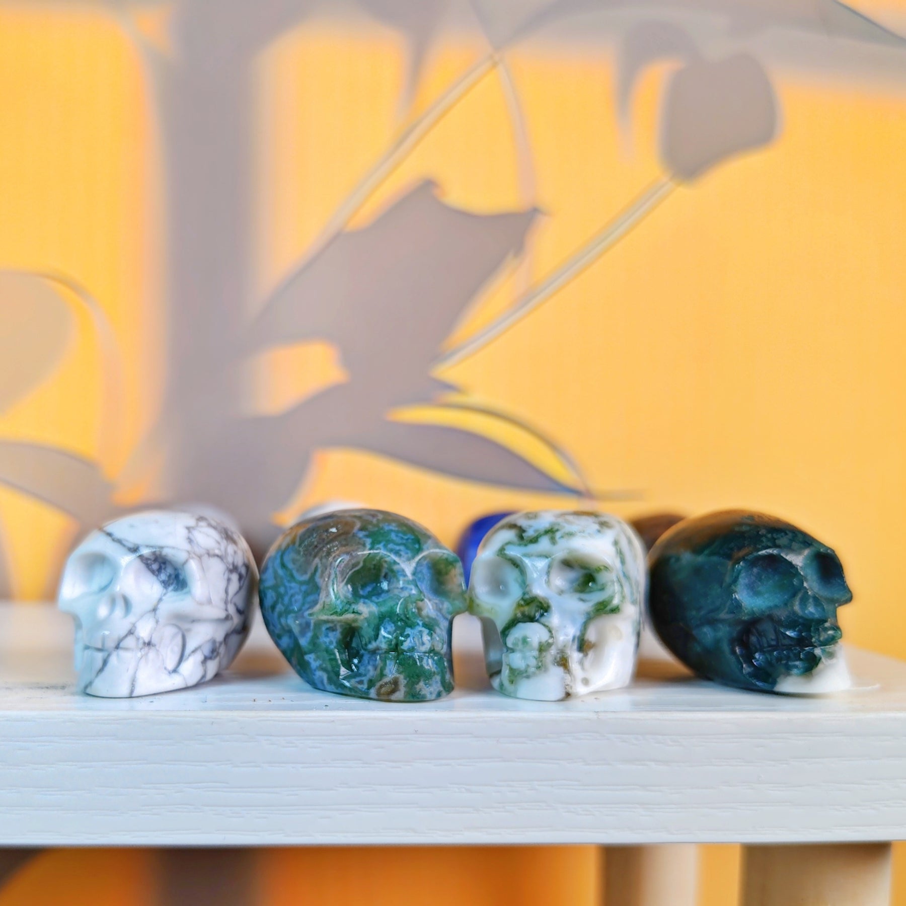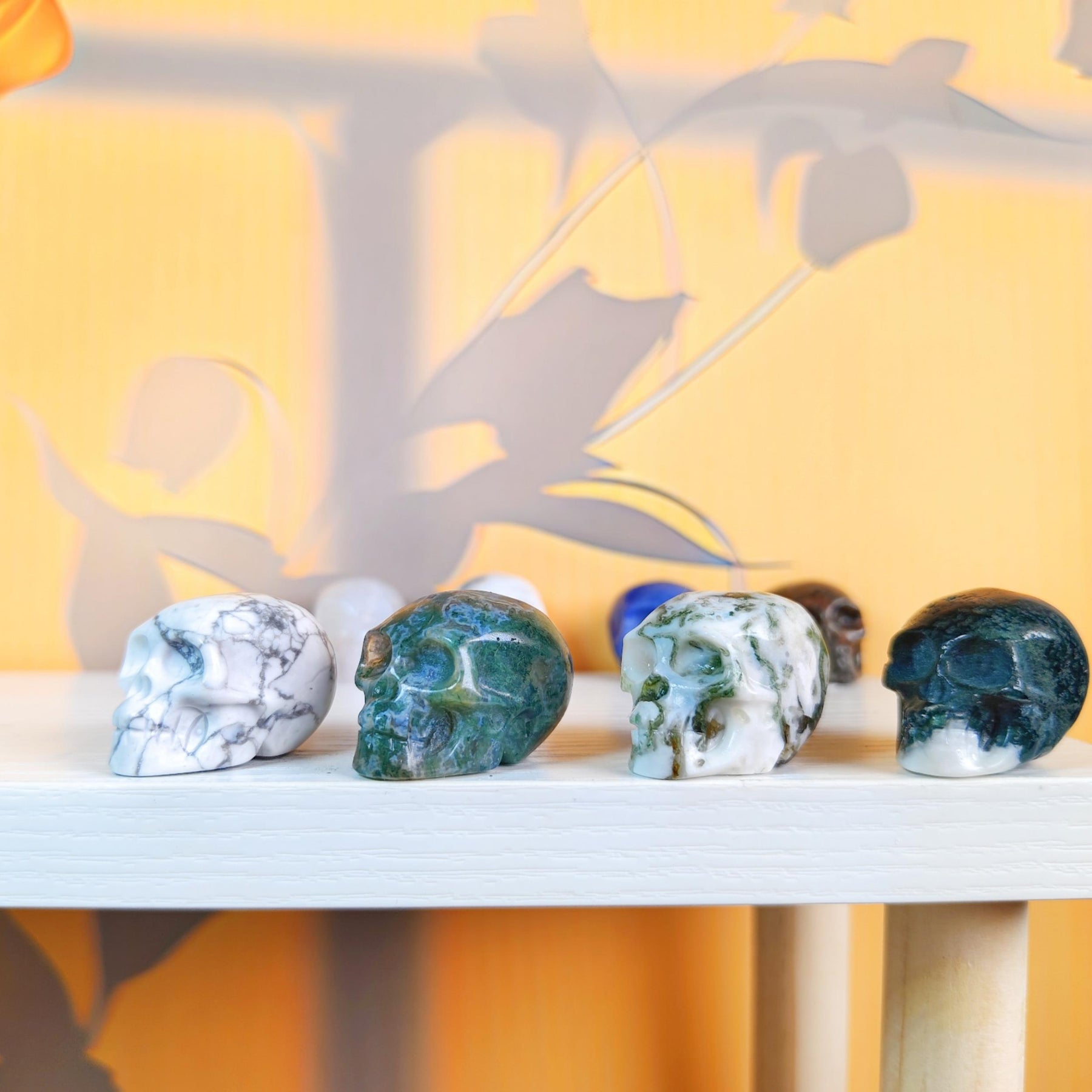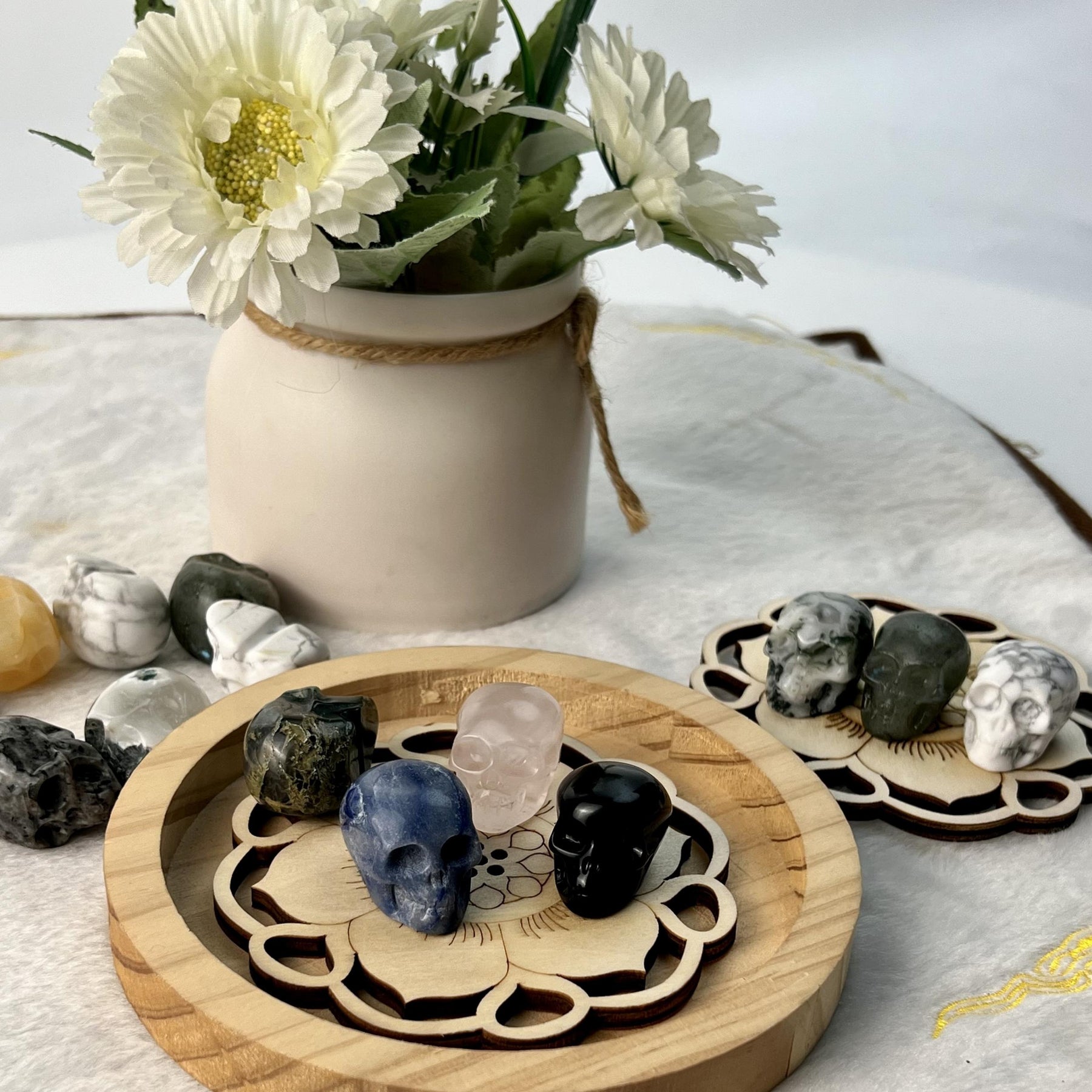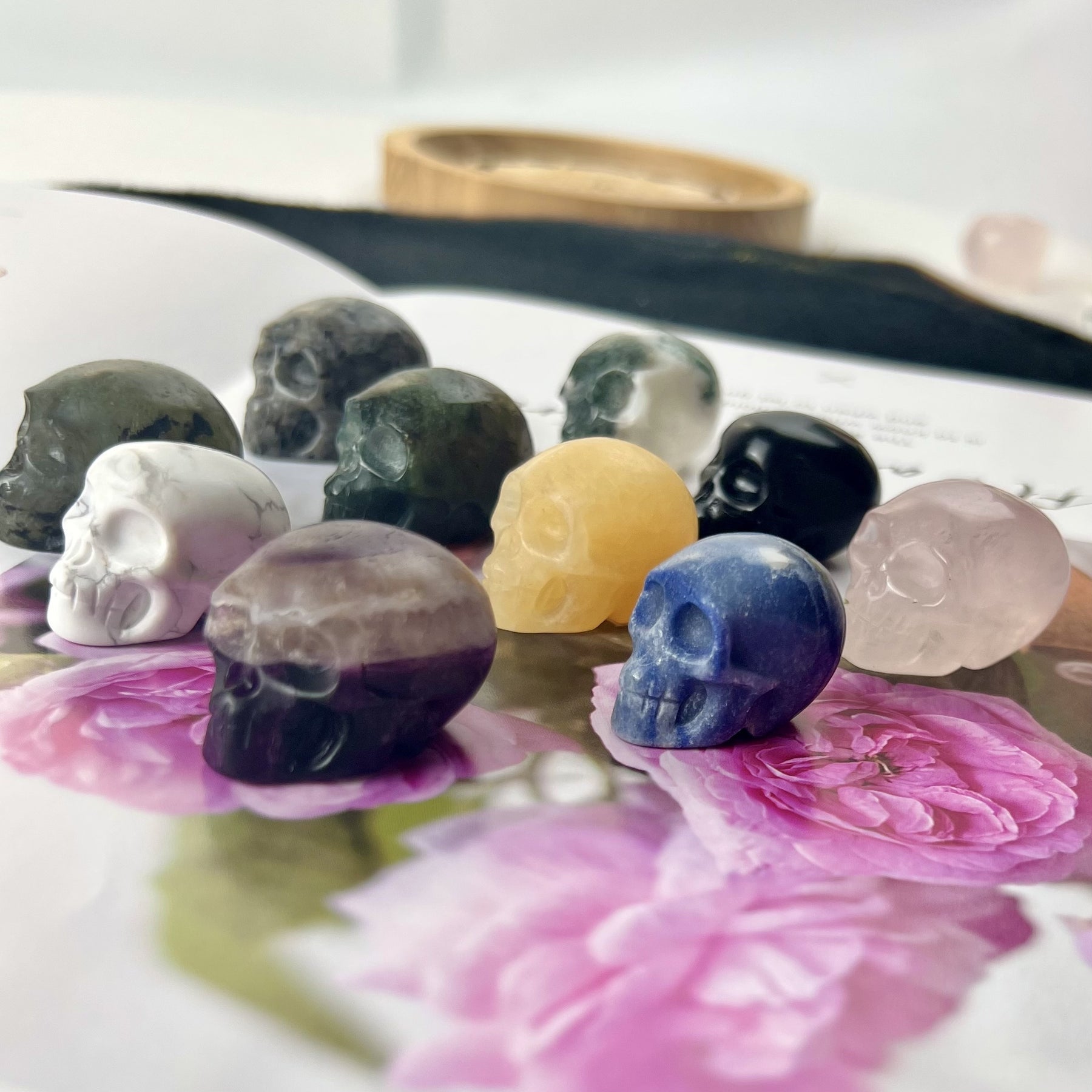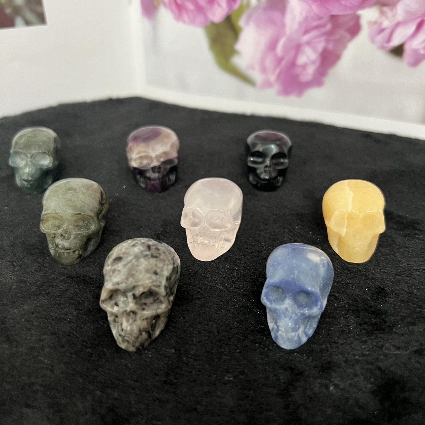 Enhance your home or office decor with these one-piece loose gemstones featuring small skull ornaments. These healing crystals are perfect for table decorations.