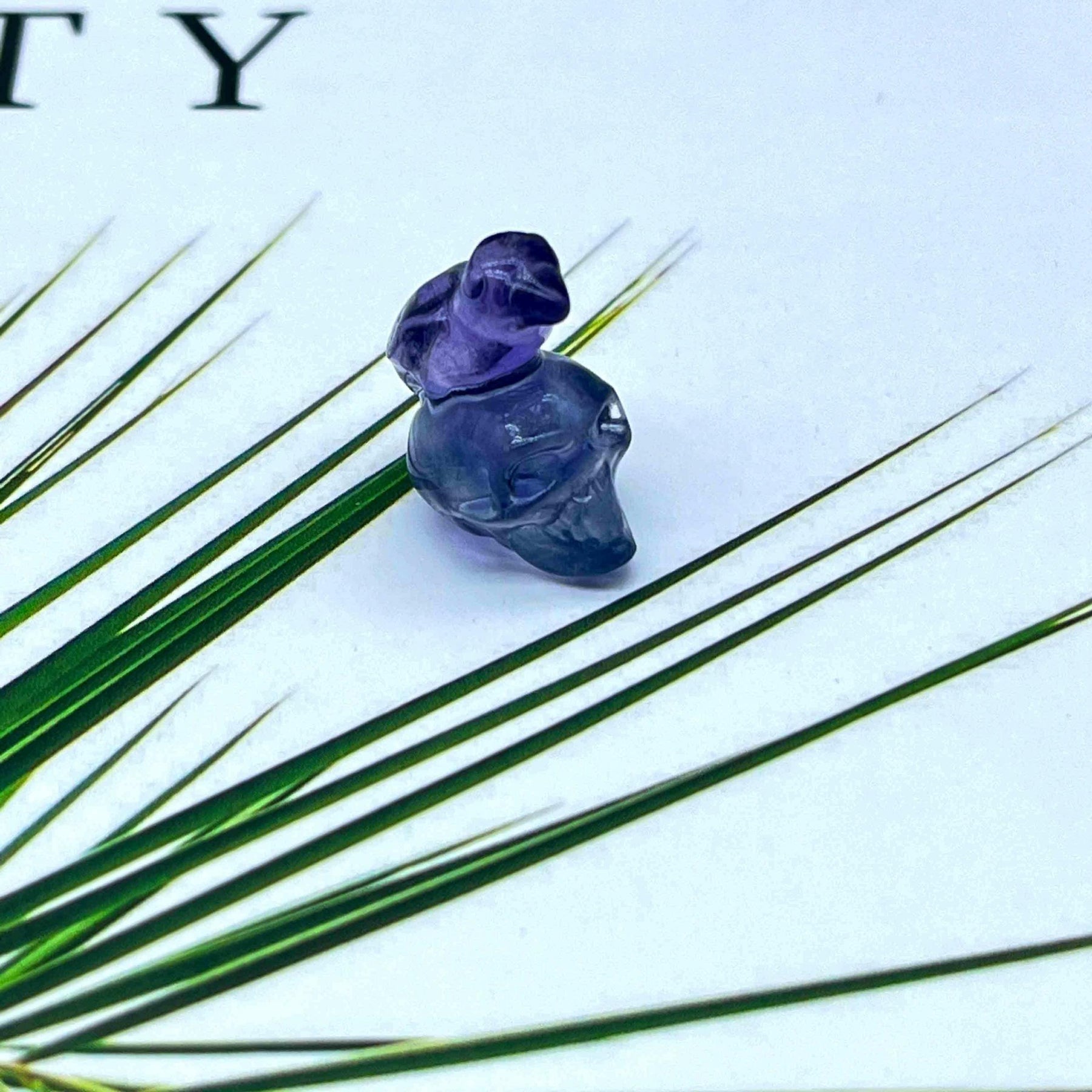 Beautiful and unique natural crystal carving featuring a crow standing on a skull made of fluorite. Perfect for interior decoration and healing.