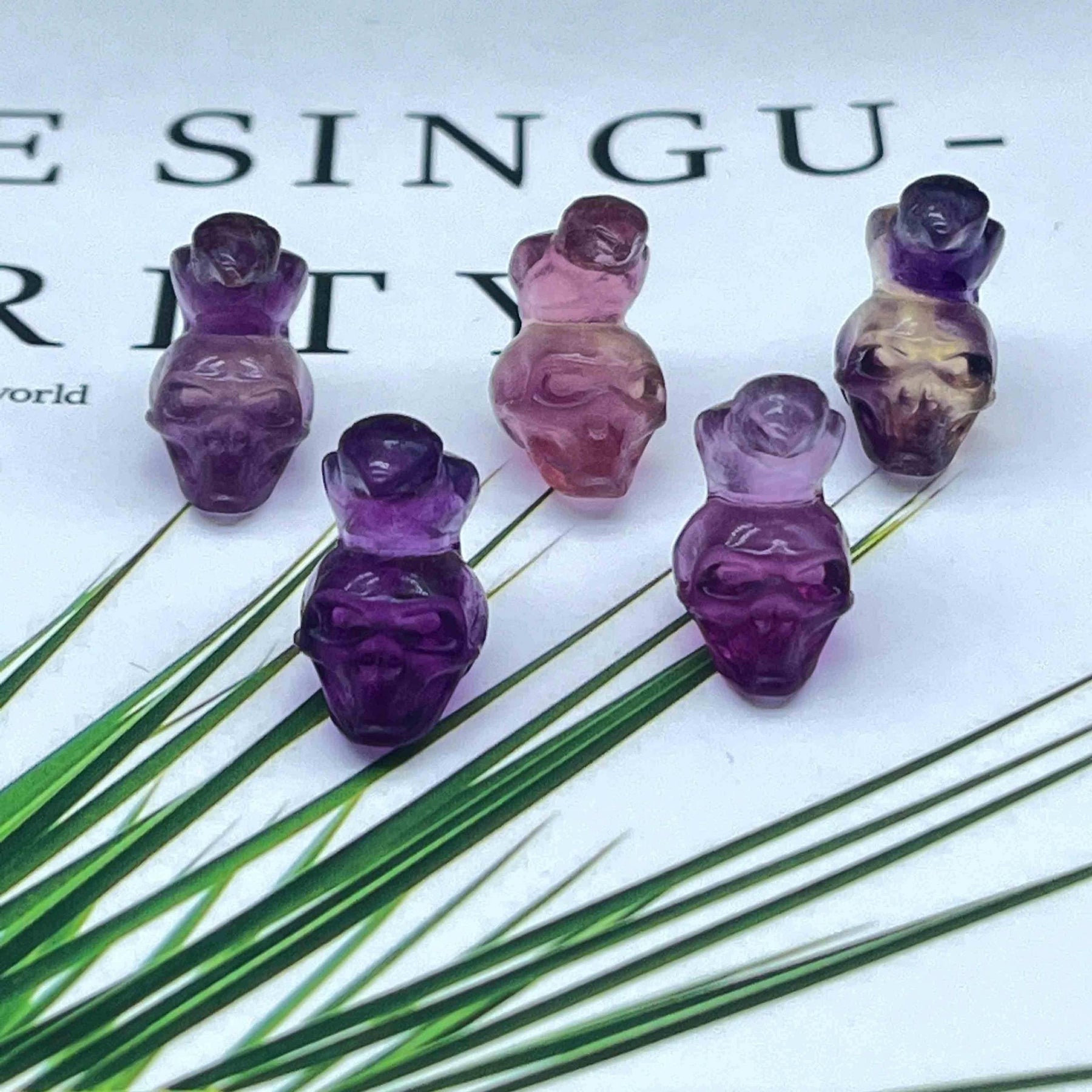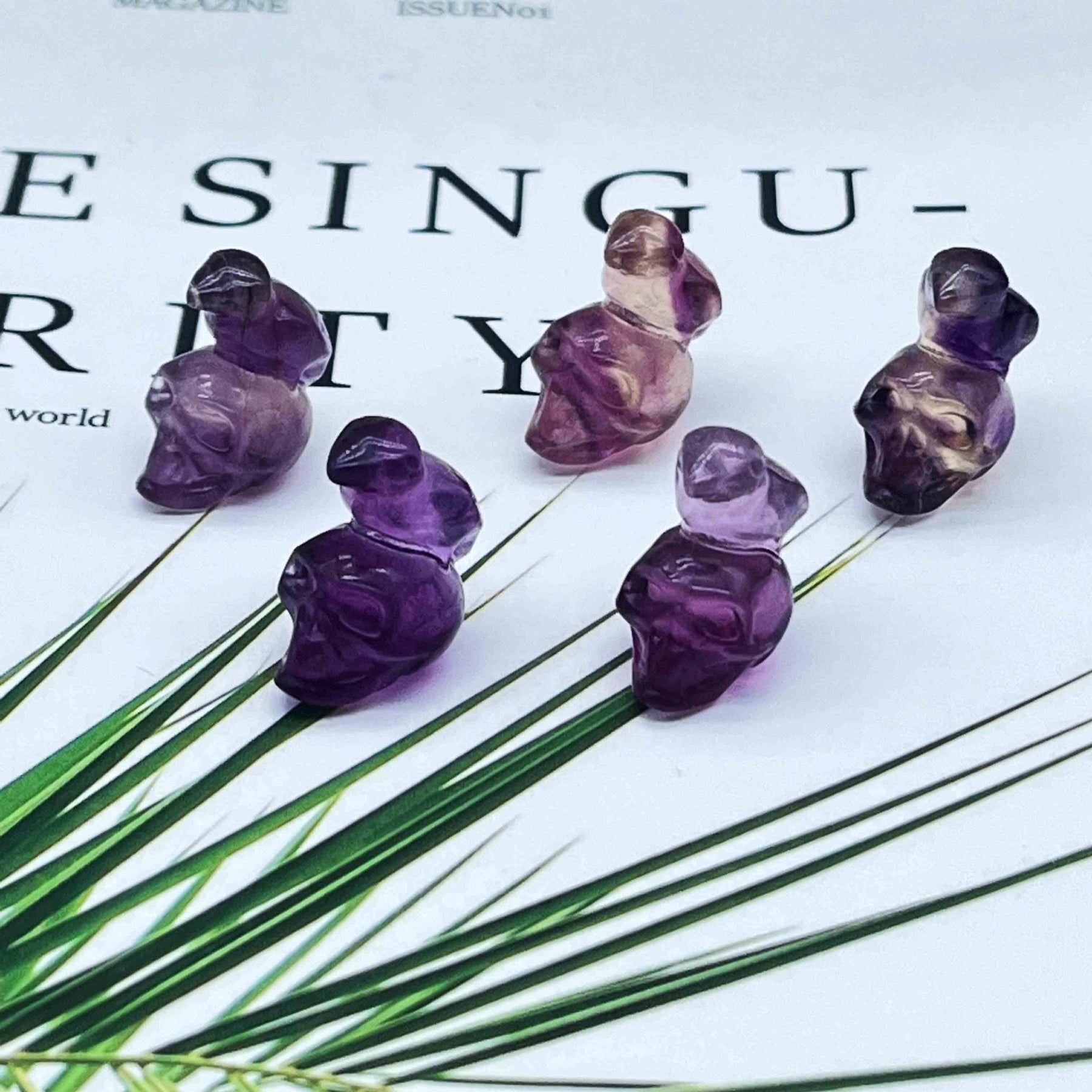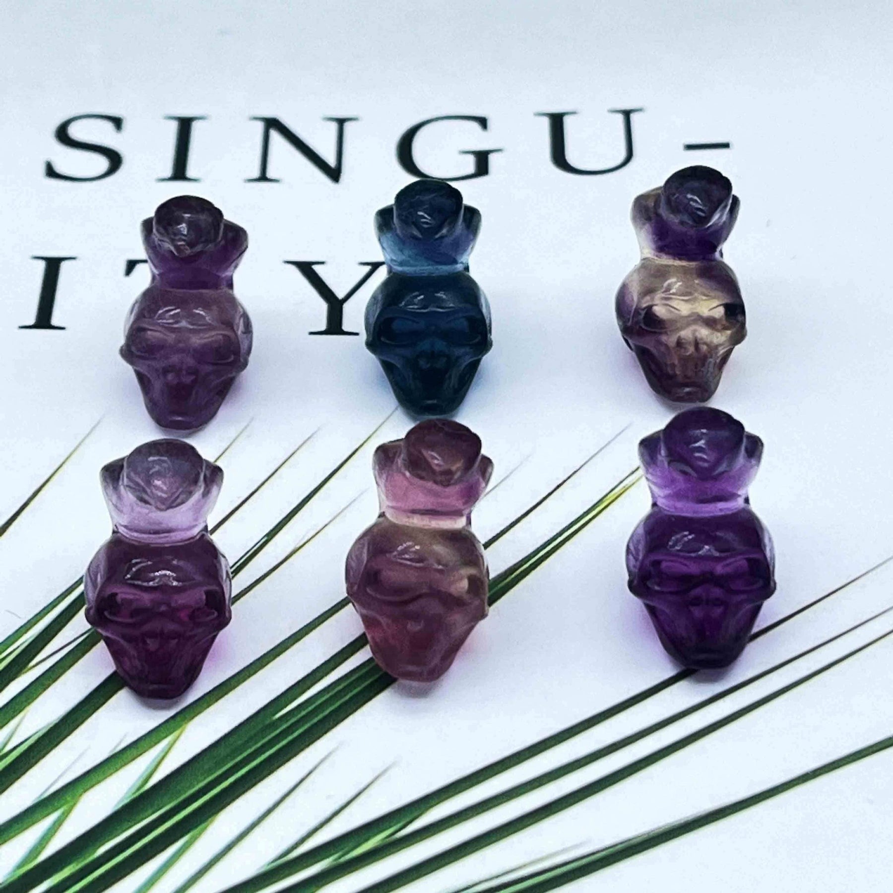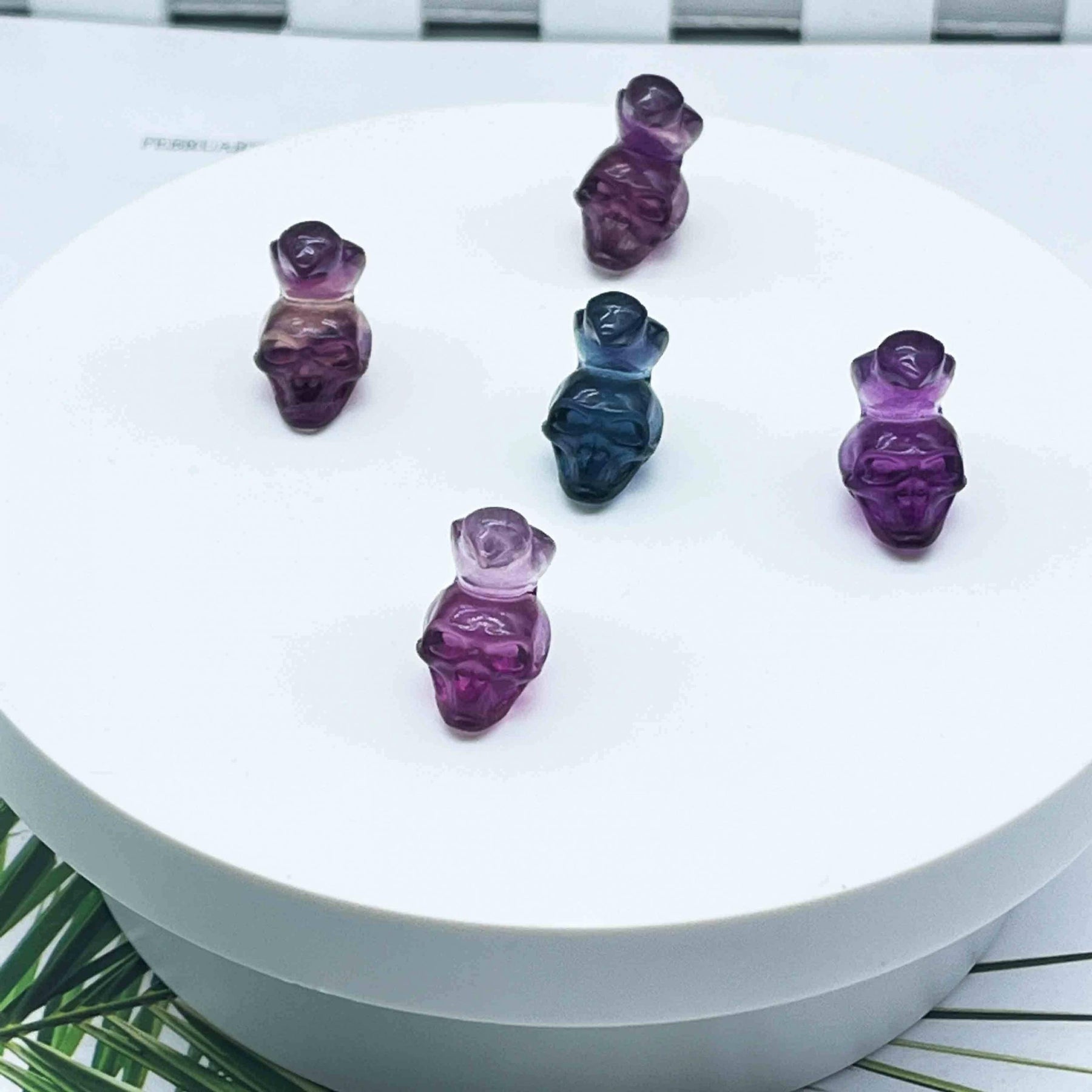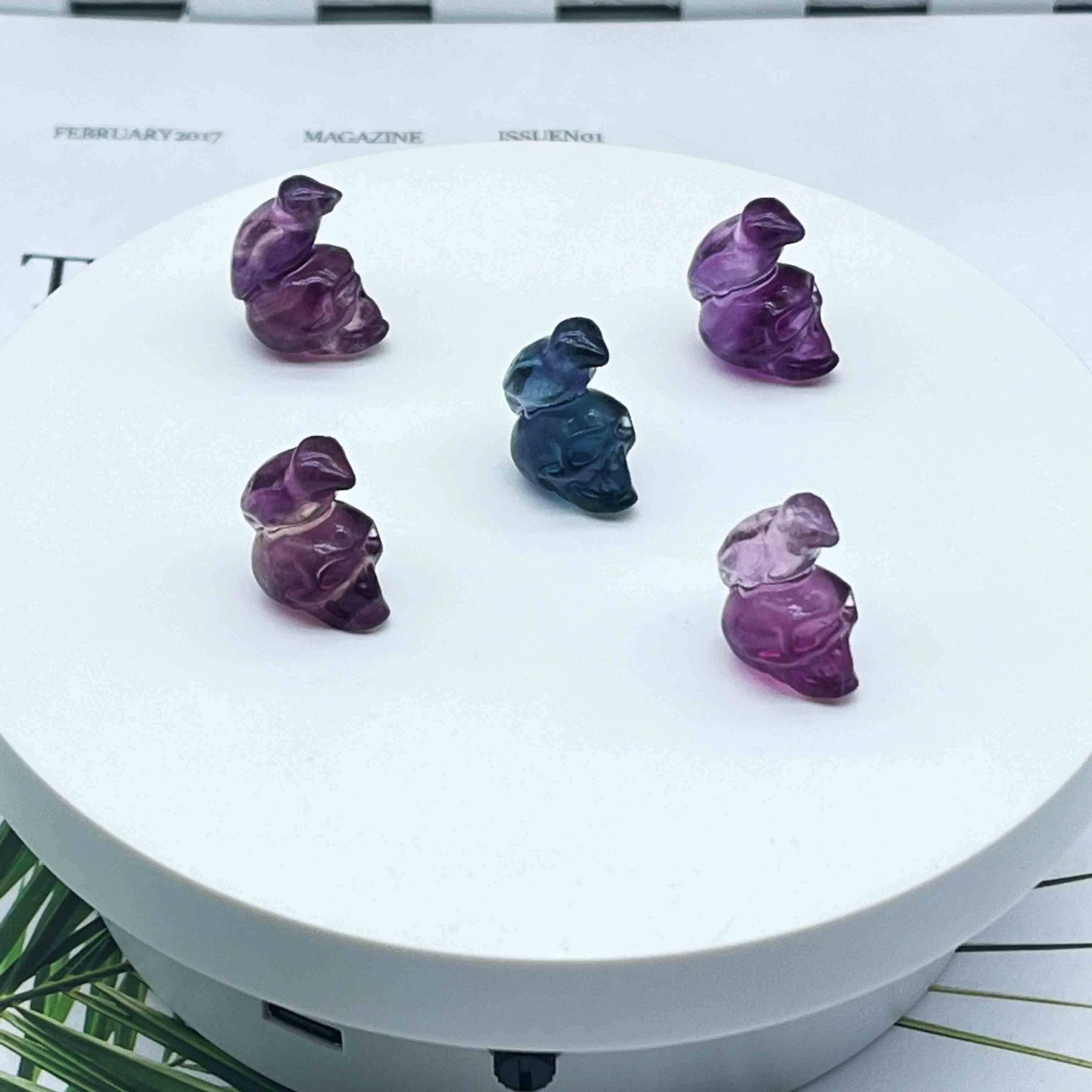 Natural Crystal Crow Standing On Skull Fluorite Carving