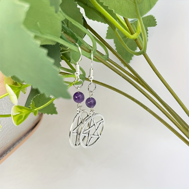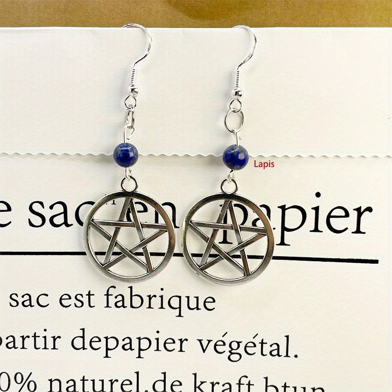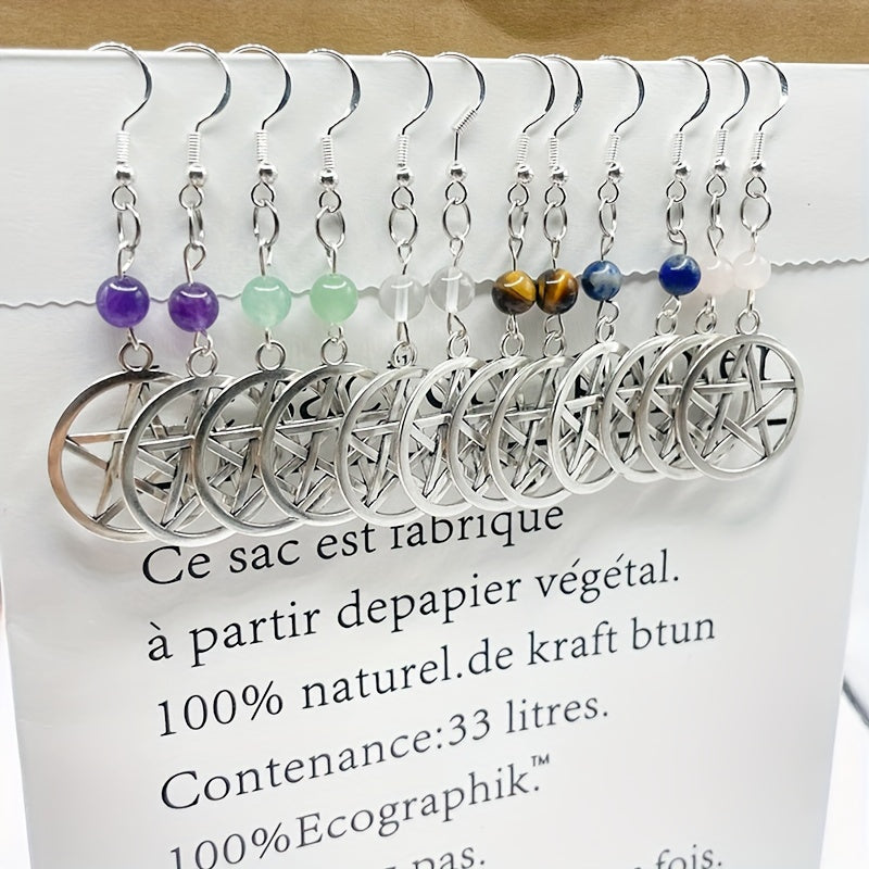Enhance your look with these stunning pair of natural crystal earrings featuring rose quartz, tiger eye, lapis, and amethyst gemstones. These earrings are a perfect addition to your crystal jewelry collection.