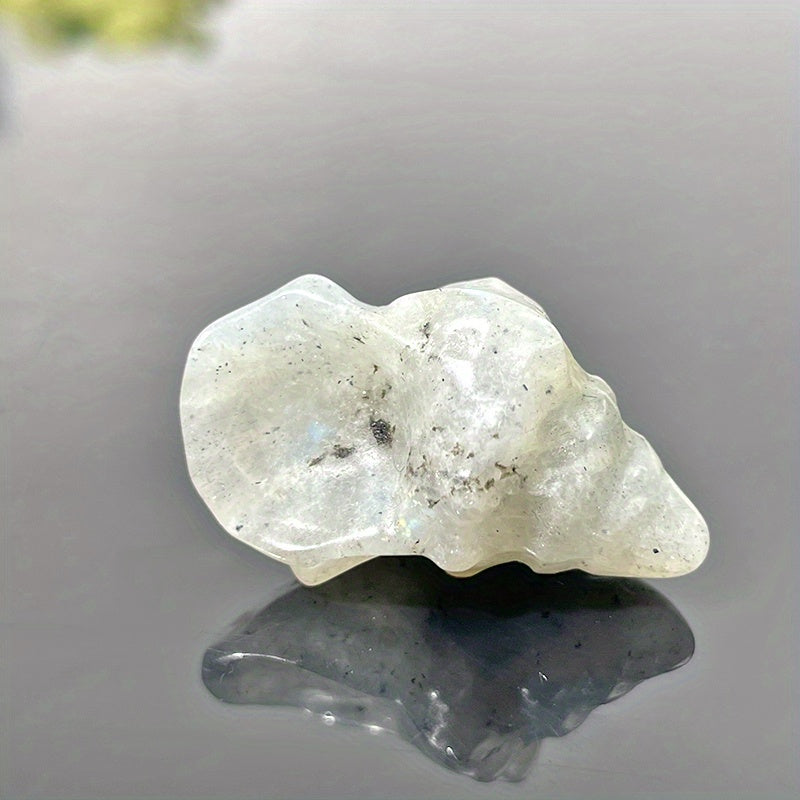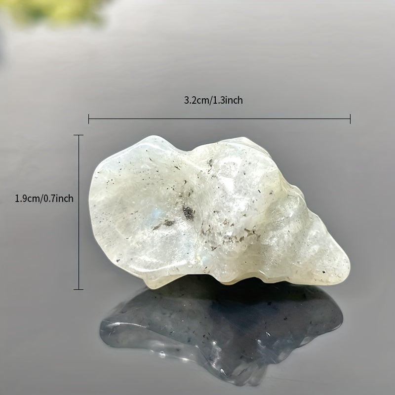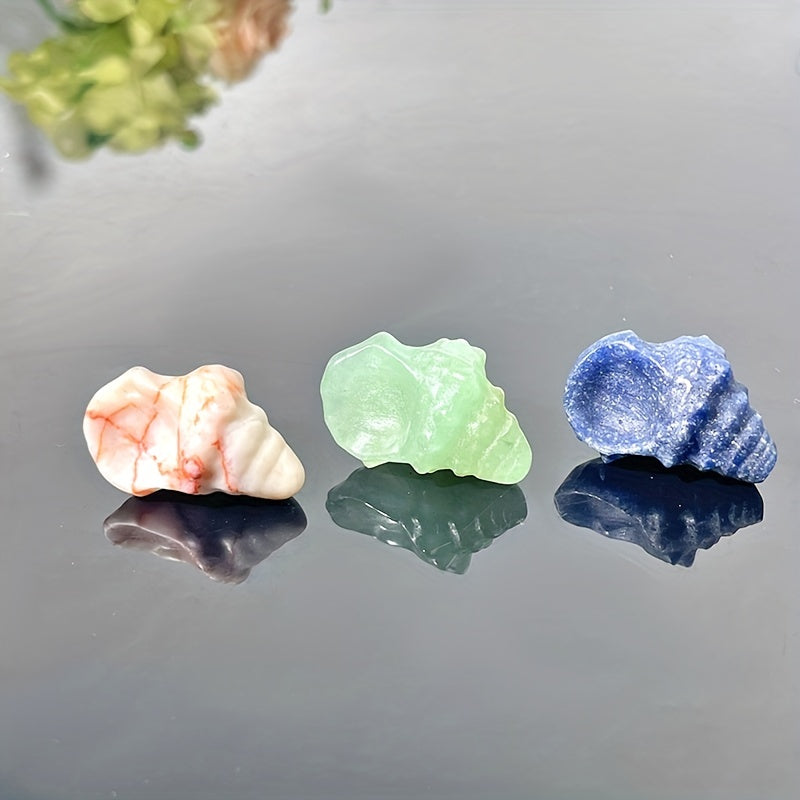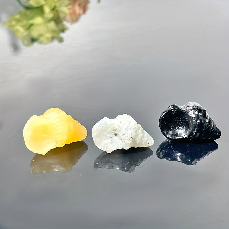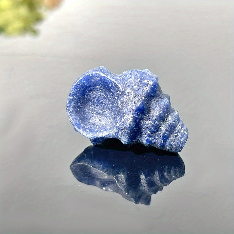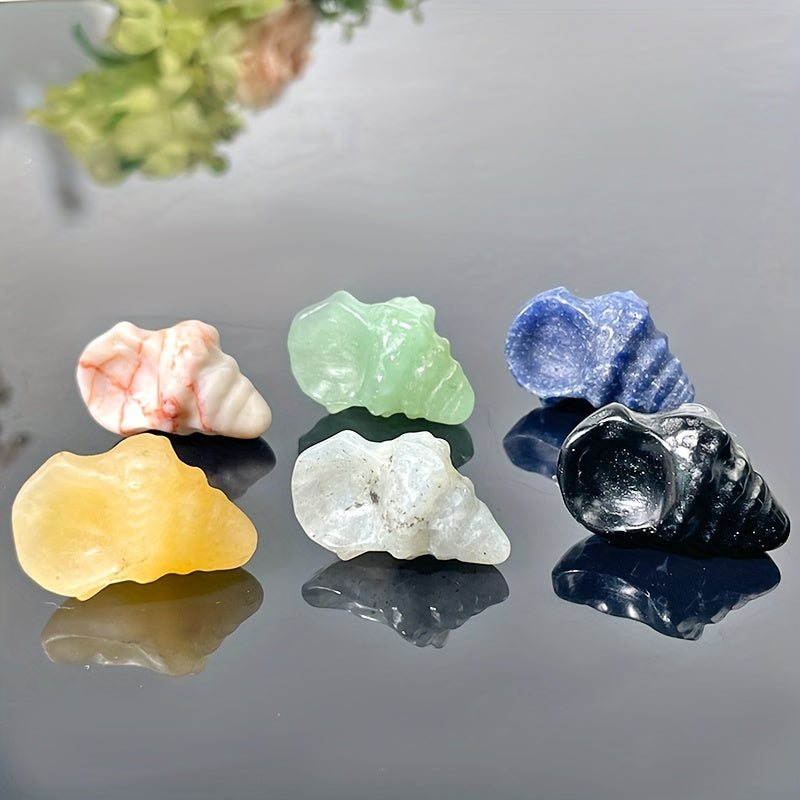 Add a touch of beauty to your space with this hand-carved conch shell featuring yellow calcite and green aventurine stone. Makes a perfect gift or decorative crystal for any collection.