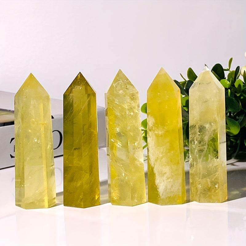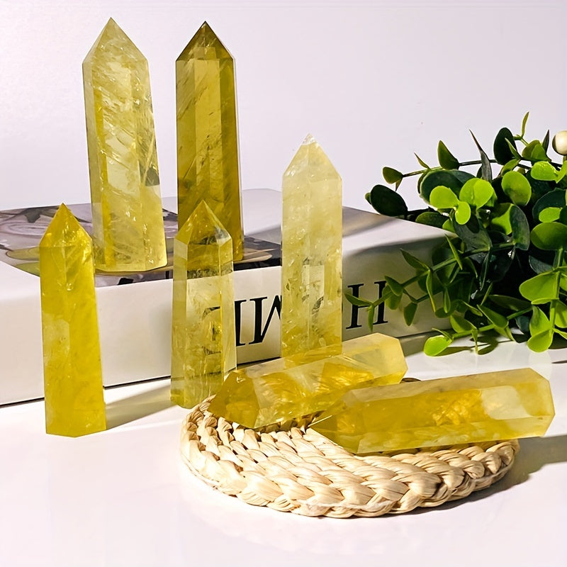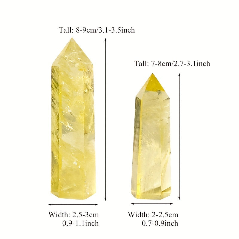 Enhance your self-confidence and attract wealth with these natural crystal quartz wands featuring citrine points. Perfect for healing and increasing positive energy.