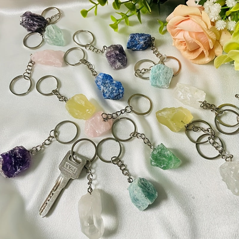 Natural Crystal Raw Stone Keychain Large
