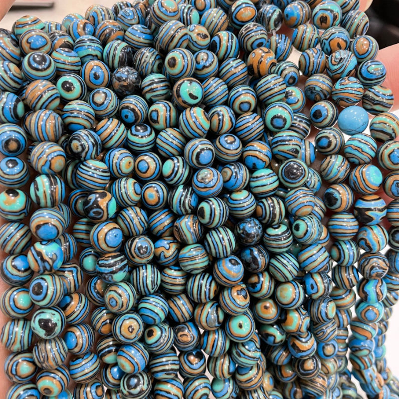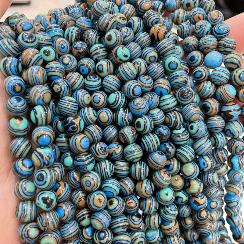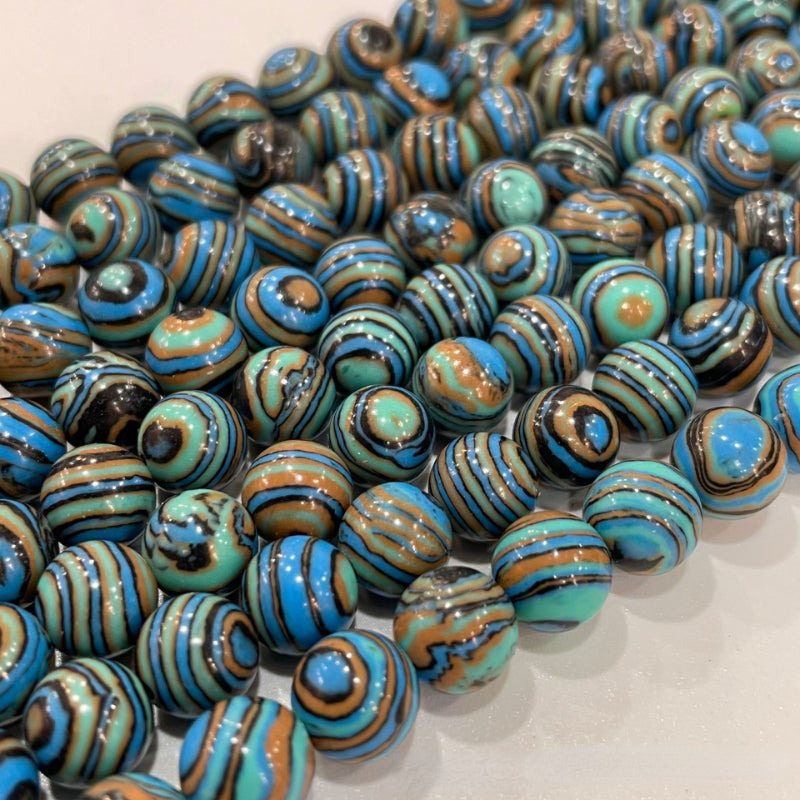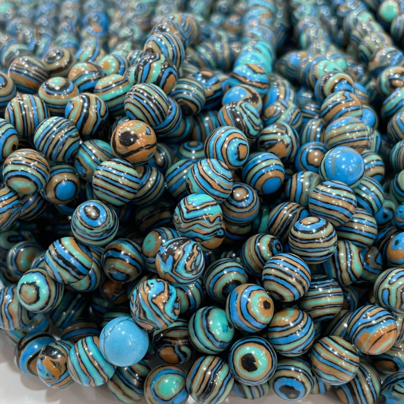 Create stunning jewelry pieces with these 4mm-12mm round red malachite and synthetic turquoise beads. Perfect for DIY projects and crafting.