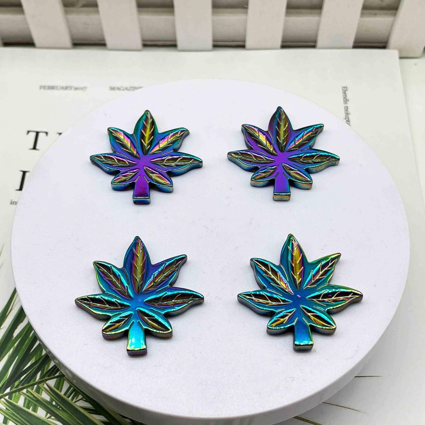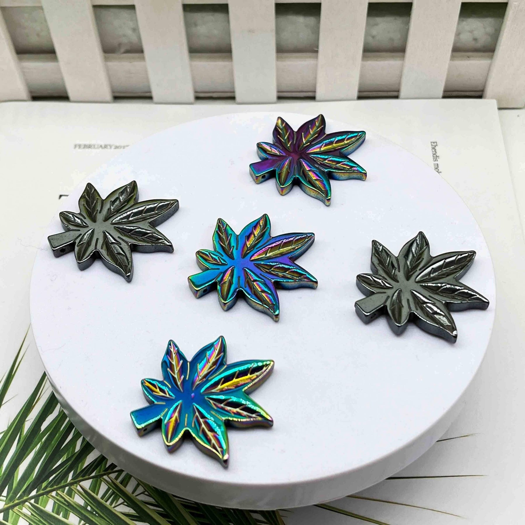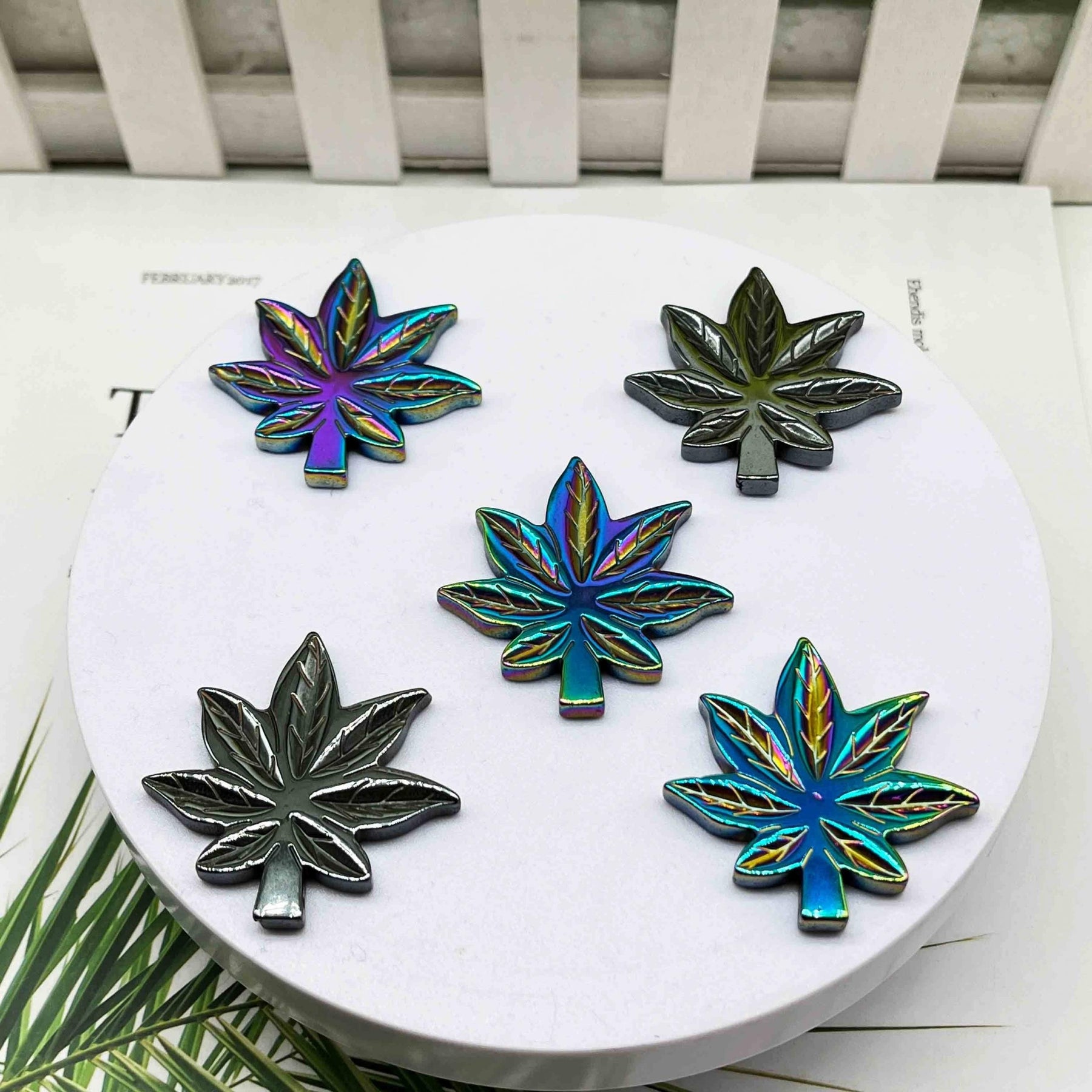 Natural Hematite Leaf Carving Stone Decoration Gift