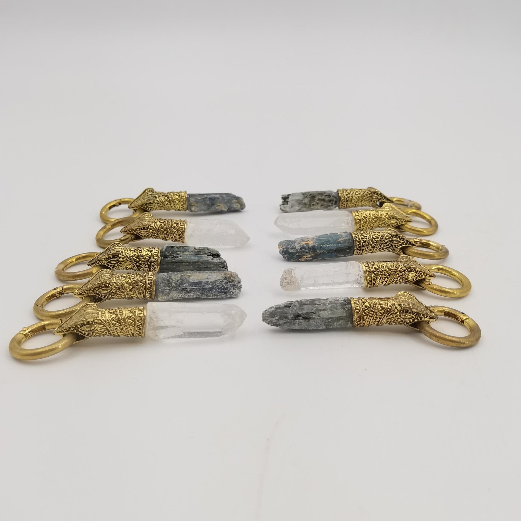 Natural Kyanite Crystal Cluster Key Chain, Reiki Healing Stone
