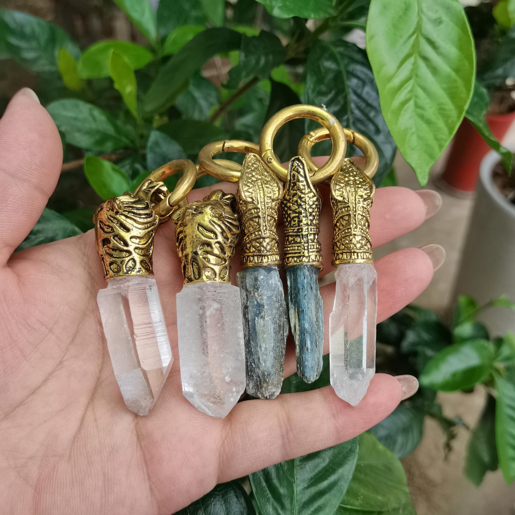 This key chain features a natural Kyanite crystal cluster attached to an alloy keychain. It serves as a unique and meaningful holiday gift, perfect for healing and balancing energy.