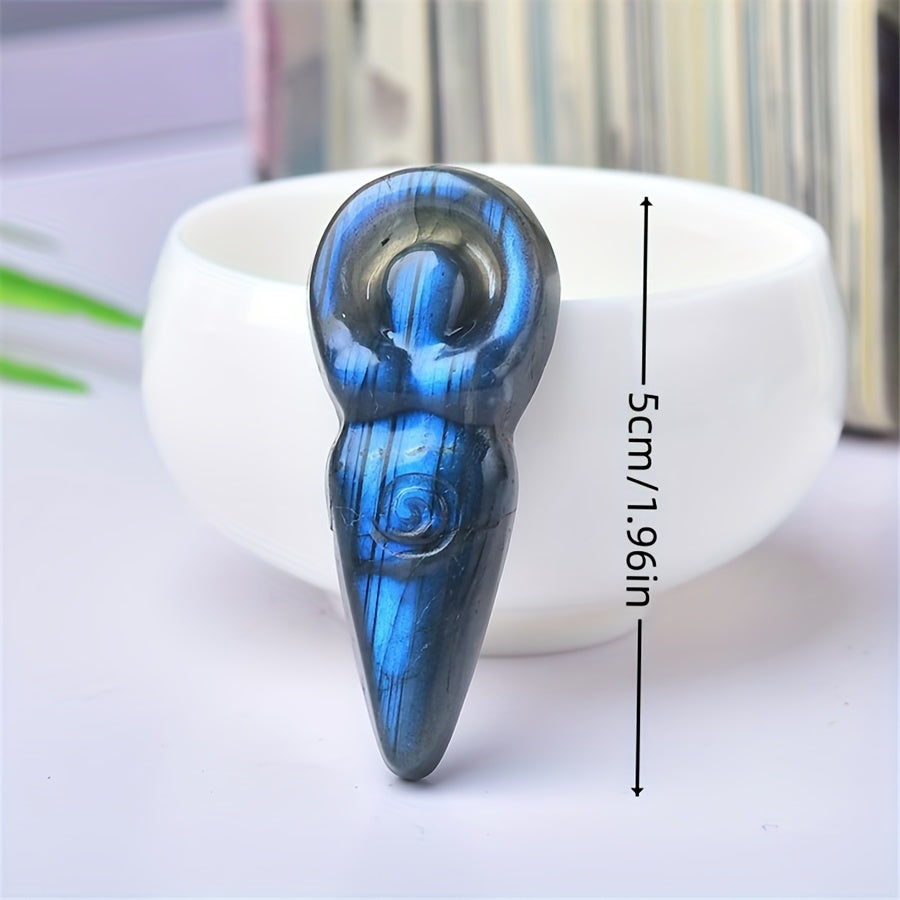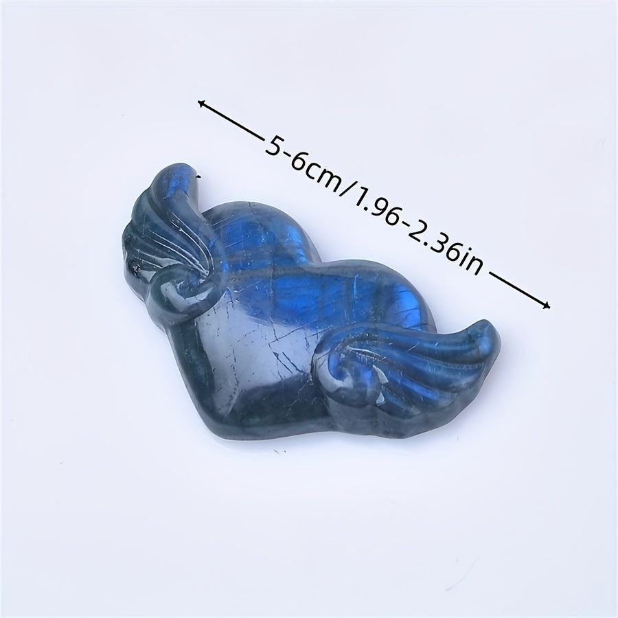 Enhance your space with this exquisite natural Labradorite carving piece. It features a stunning gray moonlight design that adds a touch of elegance to any room.