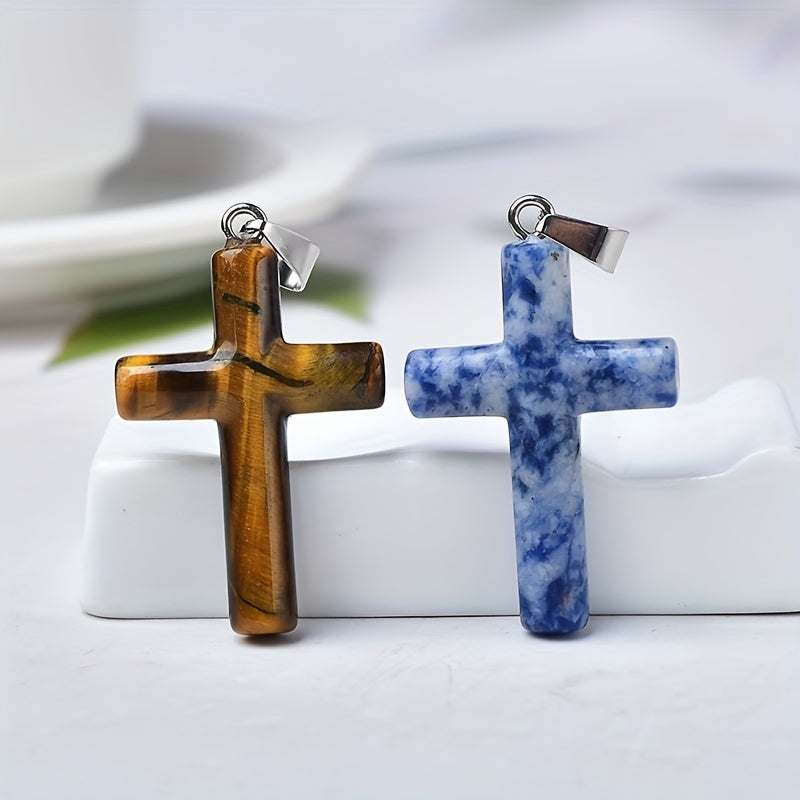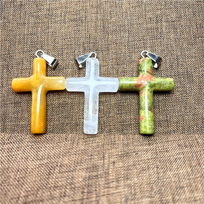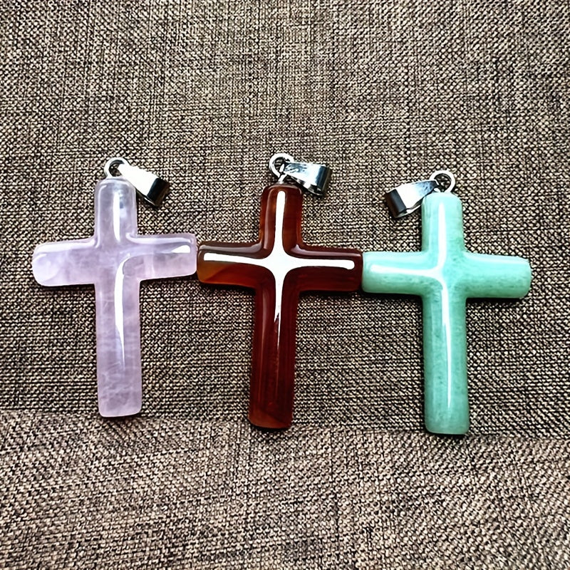 Beautiful cross pendant necklace made of natural mixed crystals.