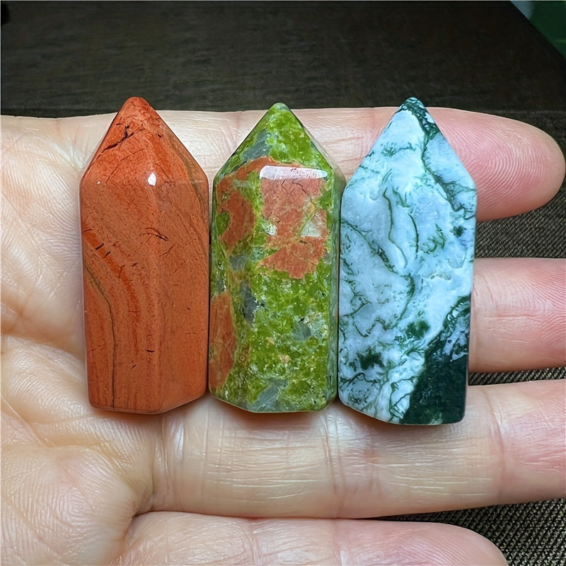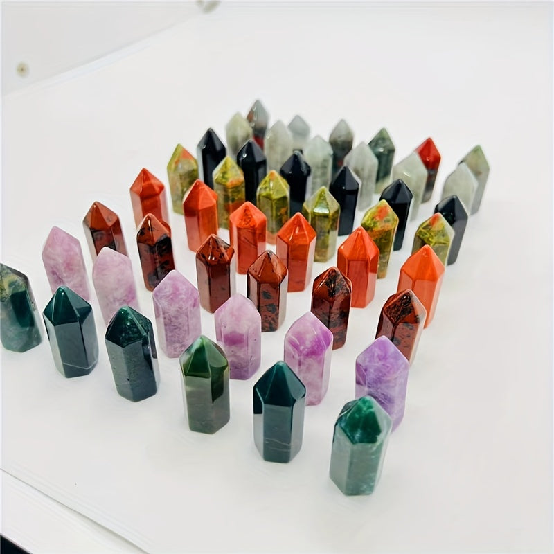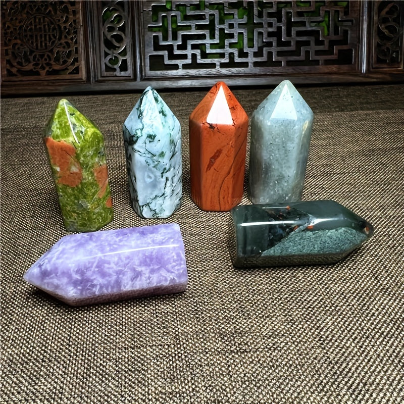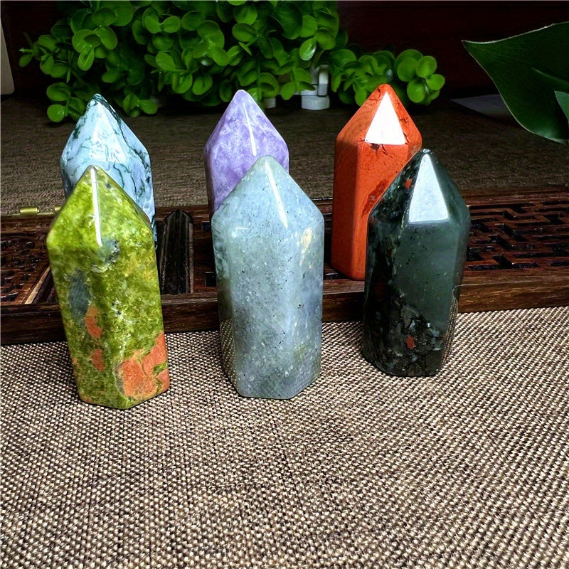 Natural Mixed Crystal Single Pointed Column Reiki Healing Decoration