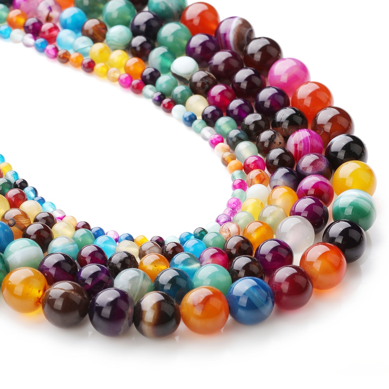 These 4mm to 12mm natural multicolor agate gemstones are perfect for creating beautiful artificial jewelry pieces such as necklaces, earrings, and bracelets.