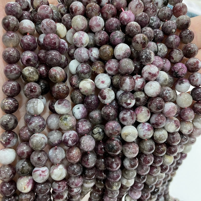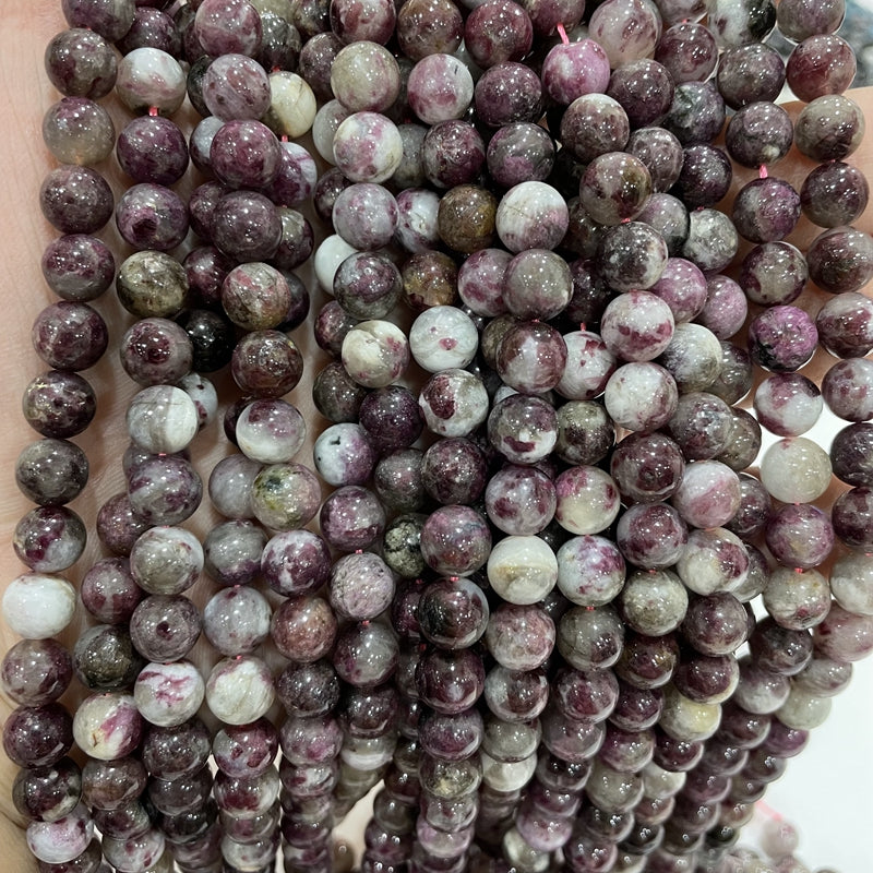 Natural Plum Tourmaline Round Beads 6-10mm for Jewelry DIY