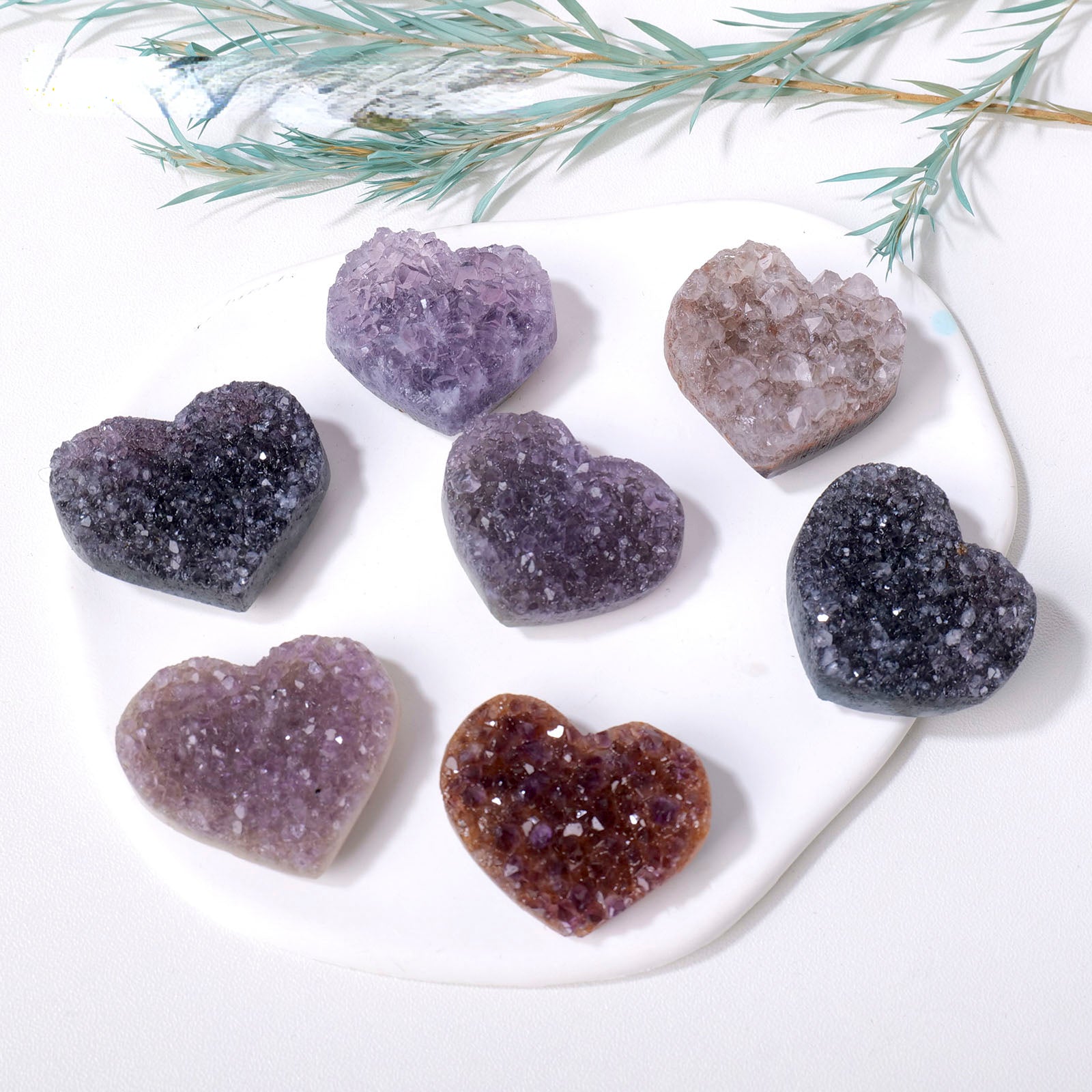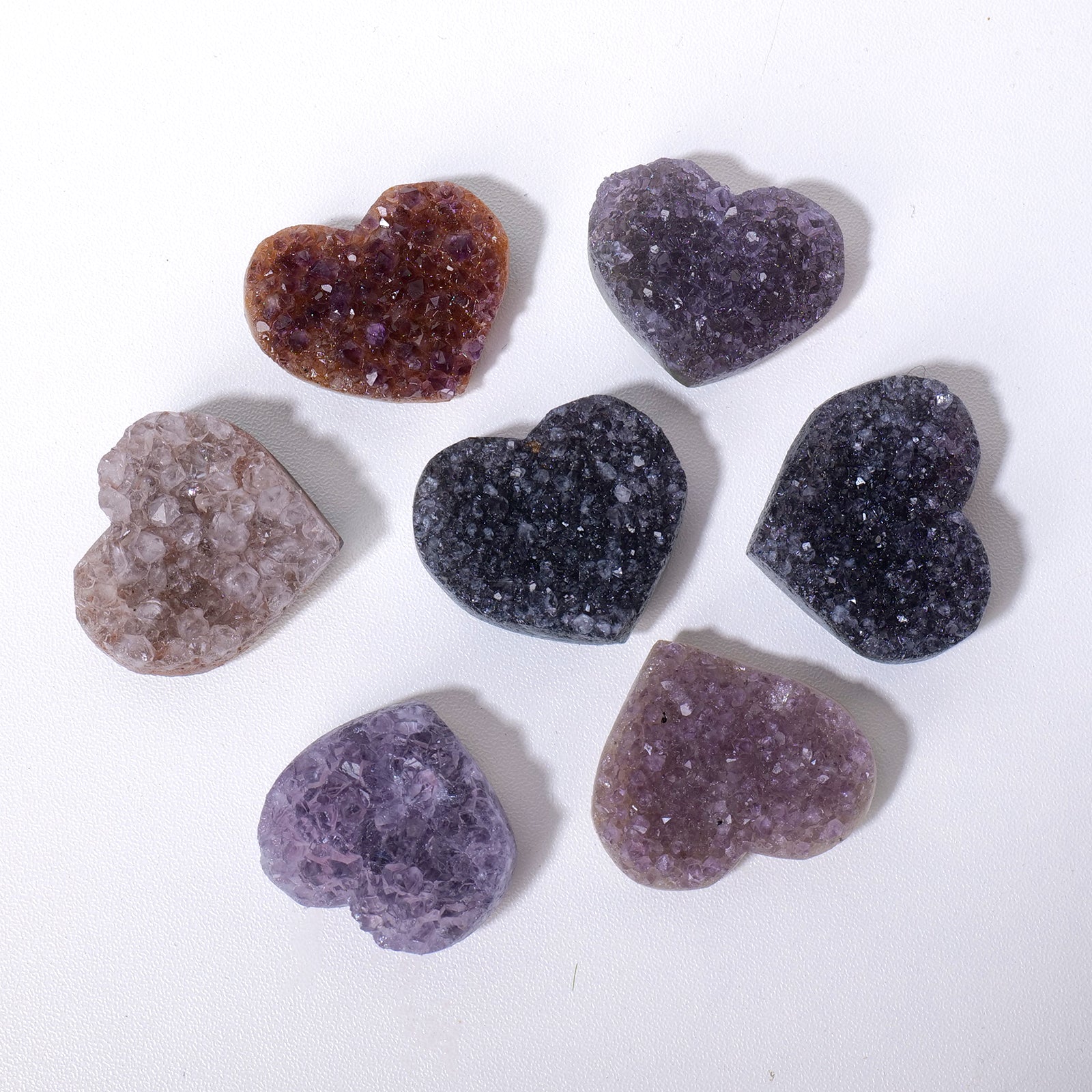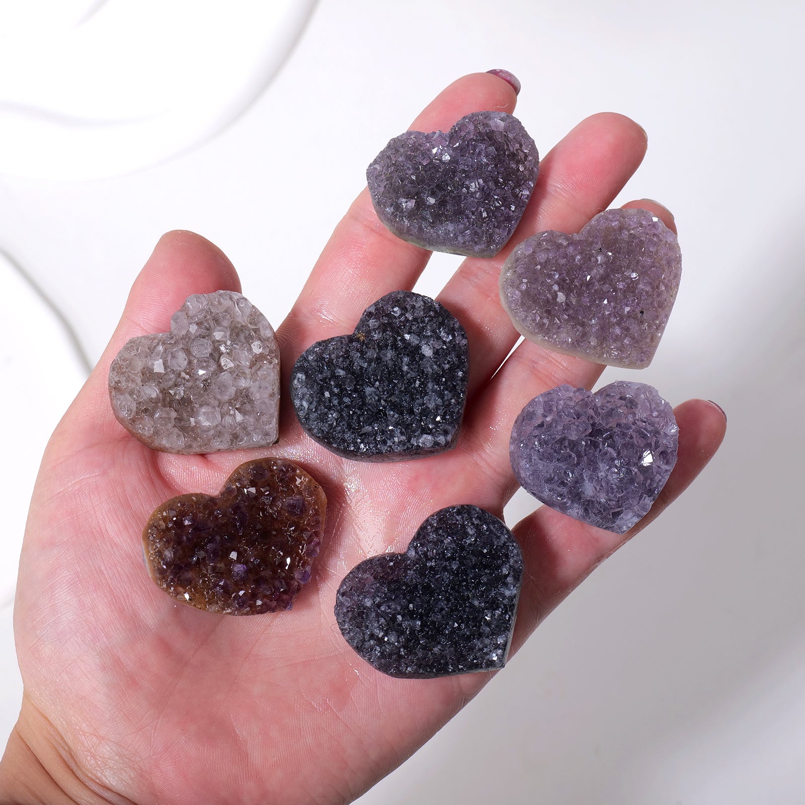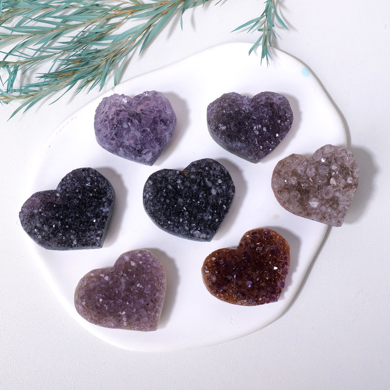 Natural Purple Quartz Amethyst Heart Cluster Healing Raw Stone Mineral Specimen