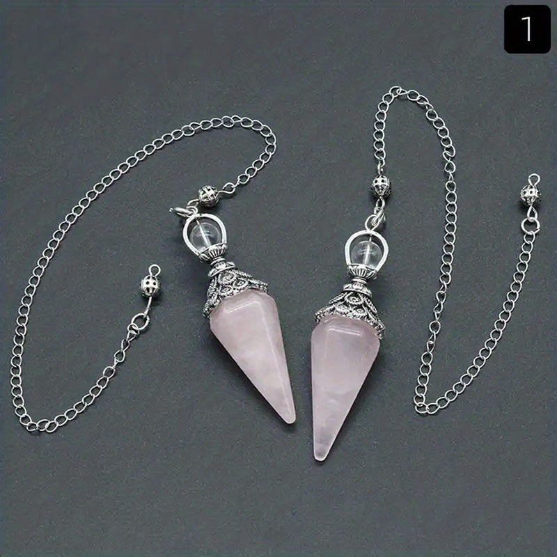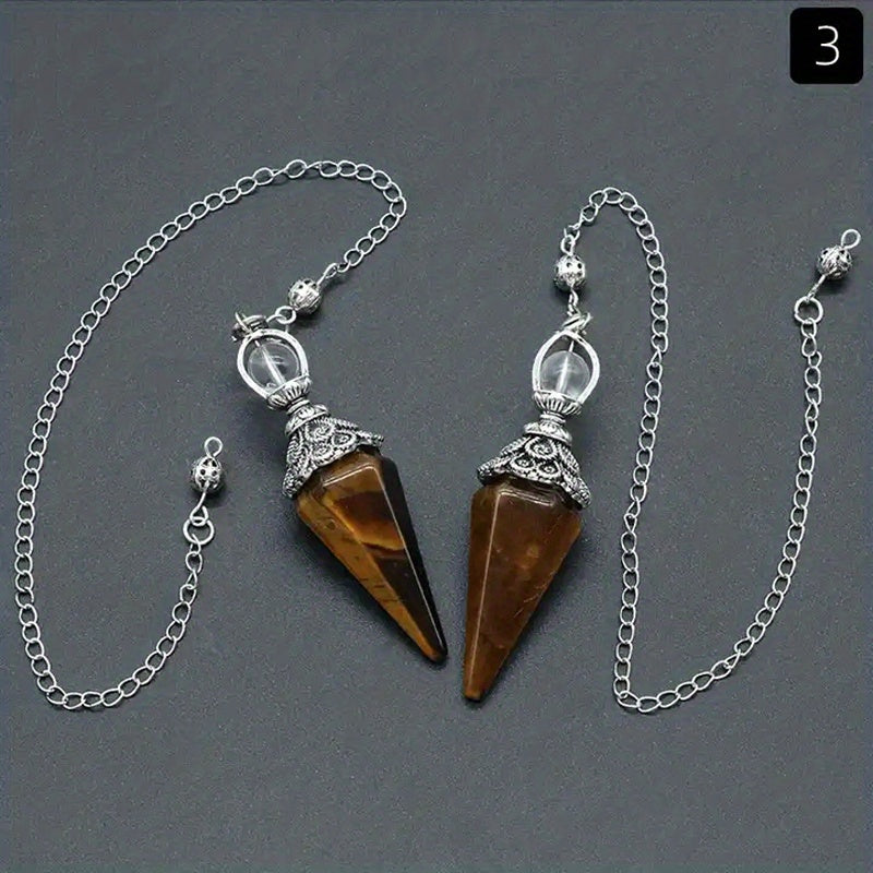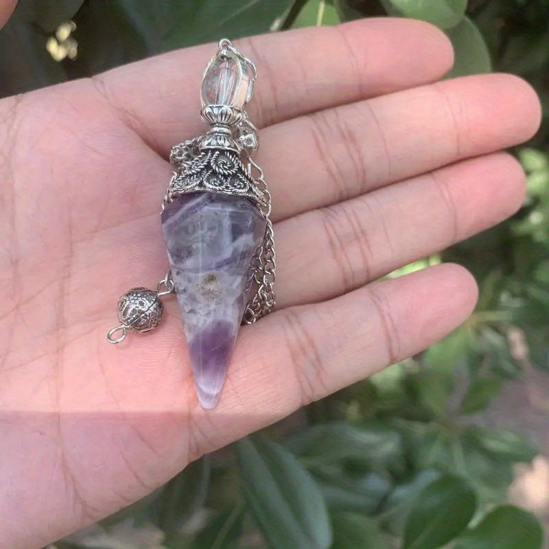 Add a touch of natural beauty to your style with this crystal stone pendulum pendant. The six pyramid design adds a unique charm to the piece, making it a beautiful ornament or piece of gemstone jewelry.