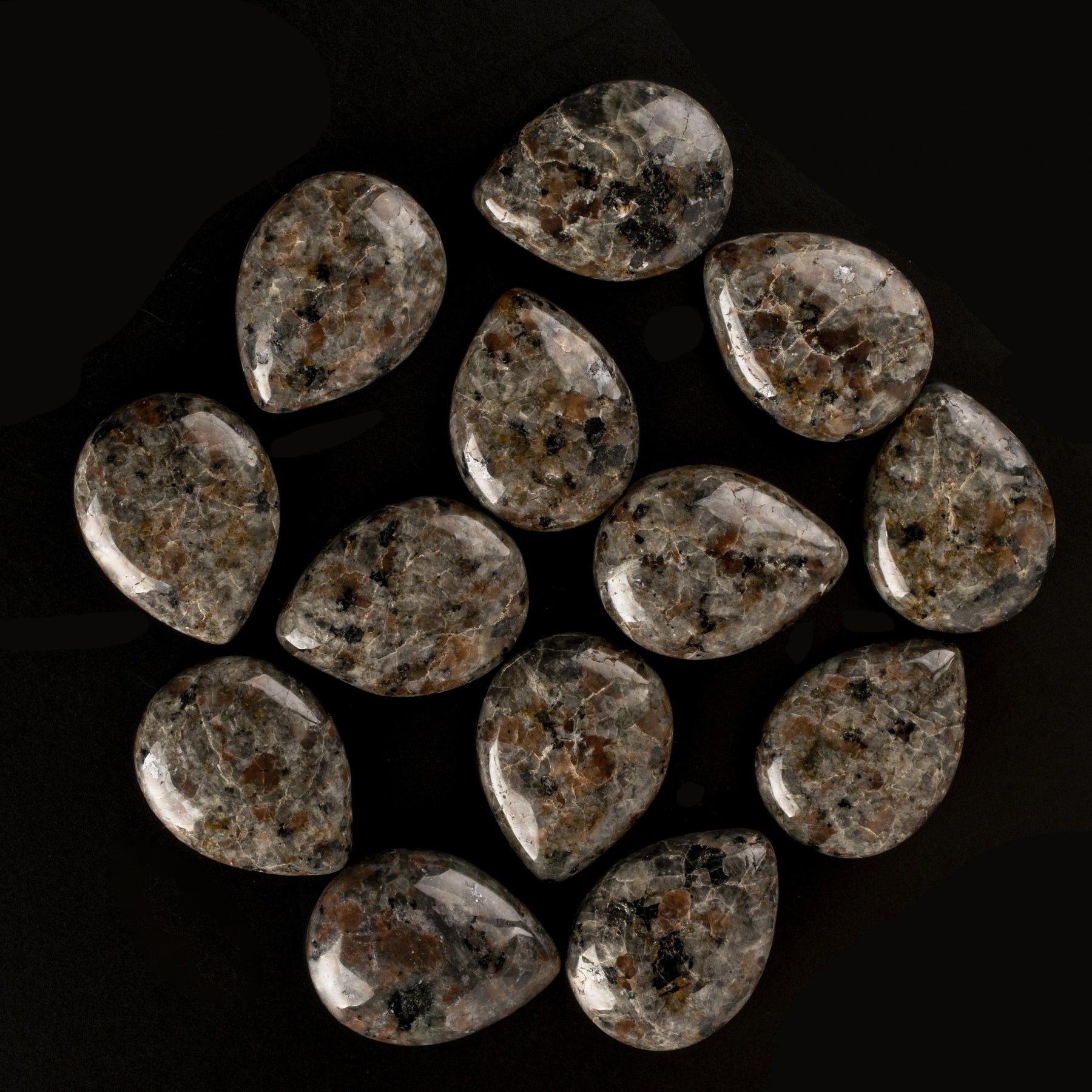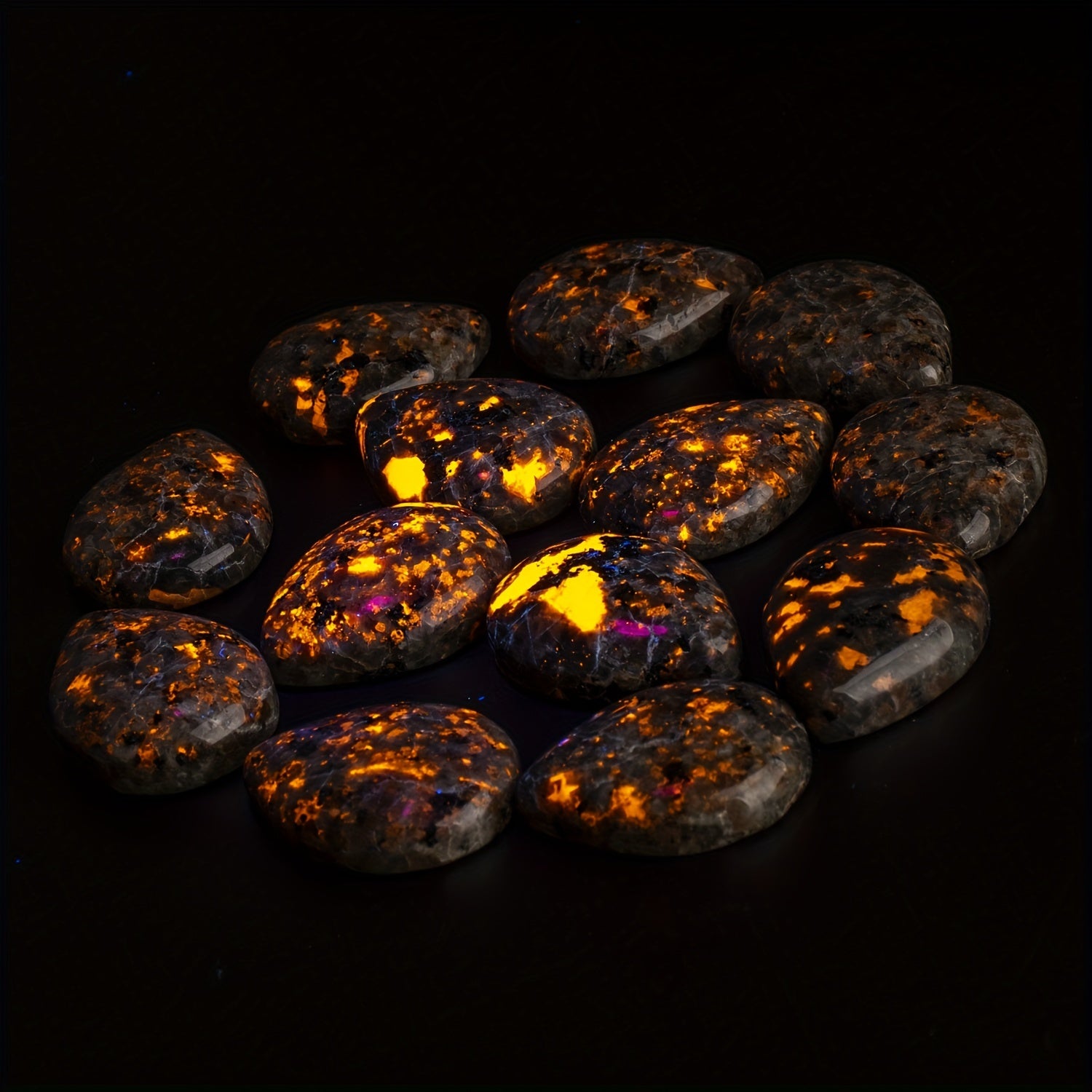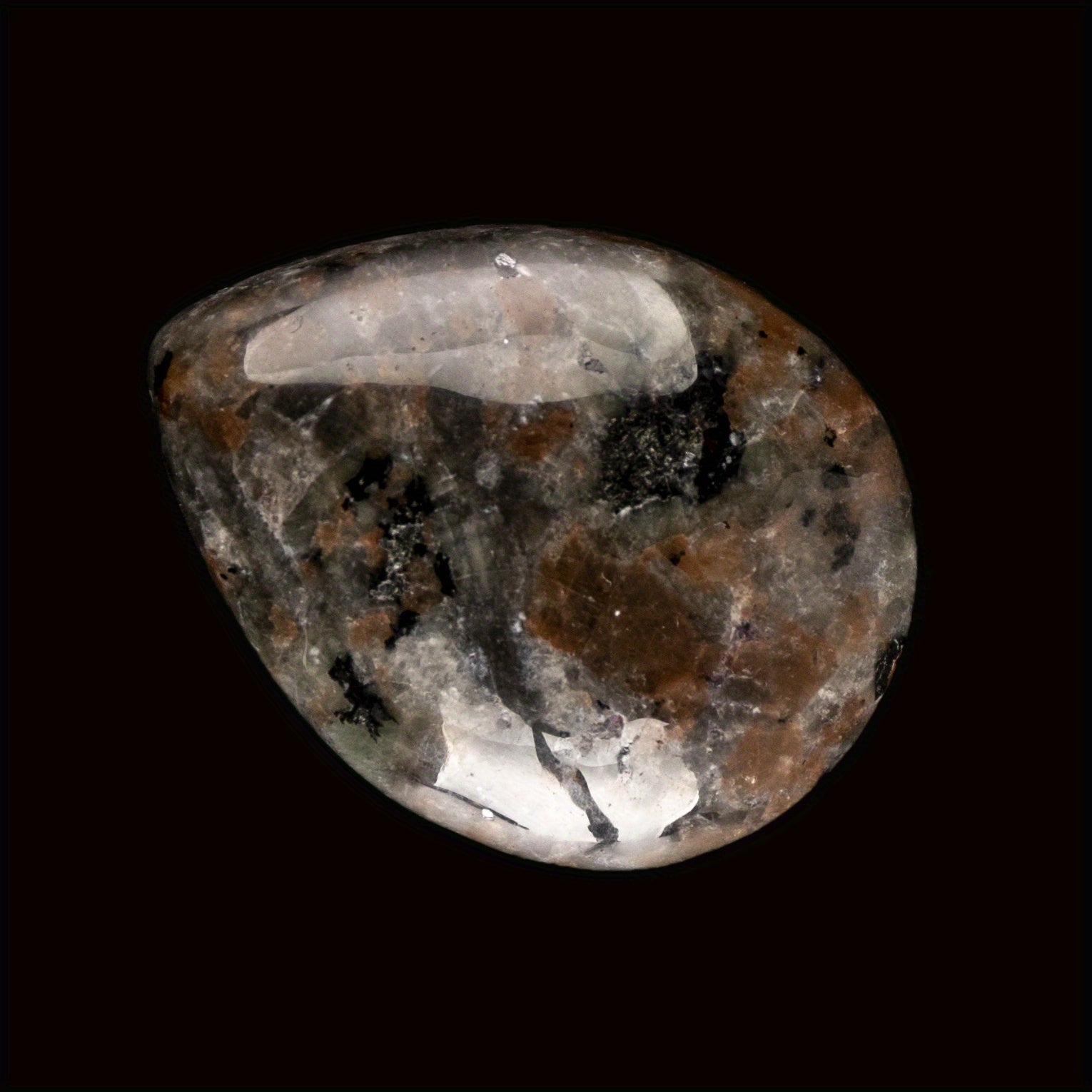 This unique stone is UV light reactive, revealing a stunning glow under blacklight. It features Syenite with fluorescent Sodalite Emberlite Tumble Gem.