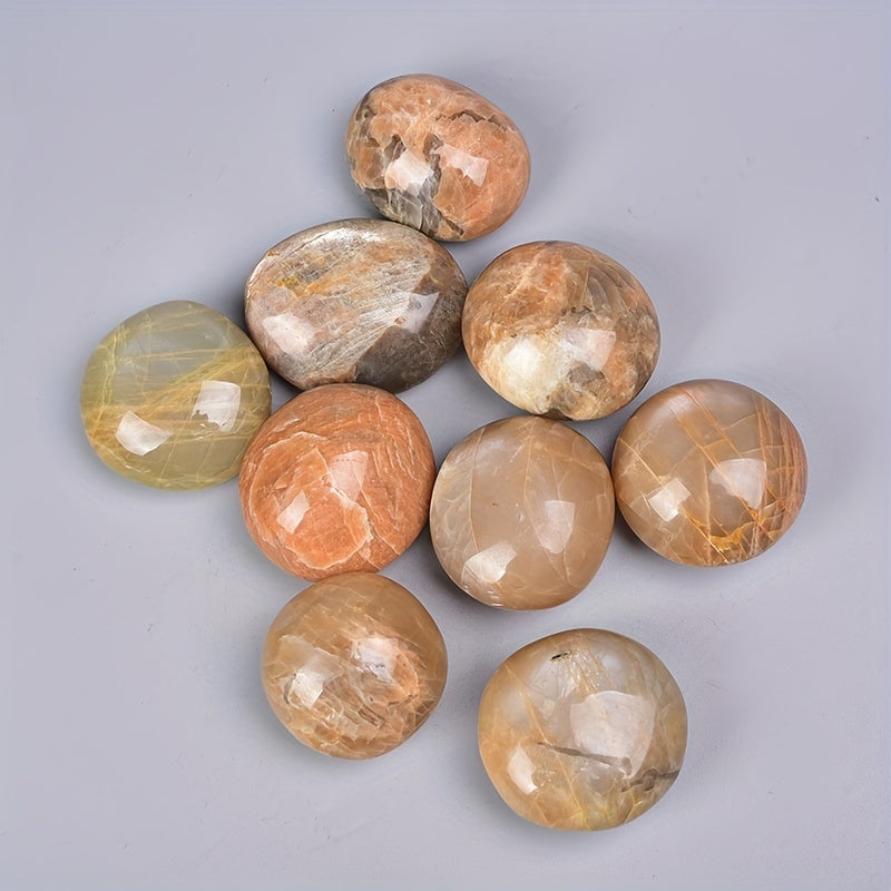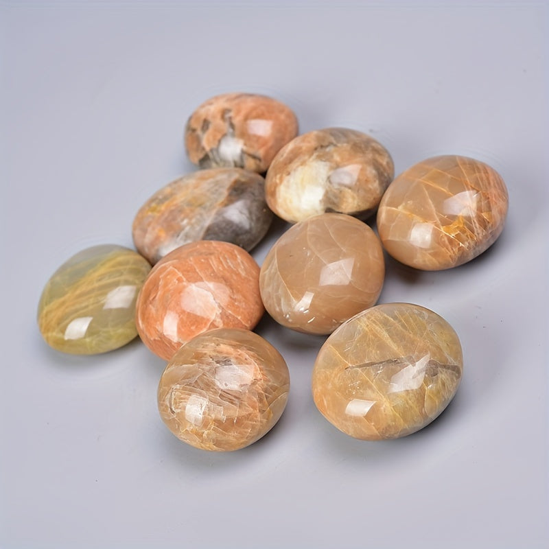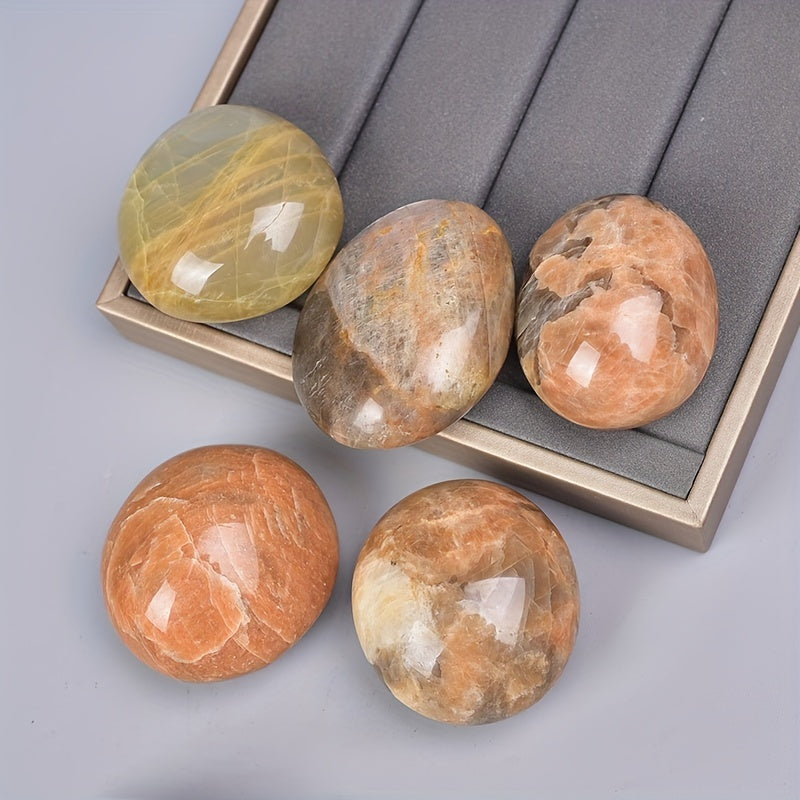 Orange Moon Stone Palm Crystal Healing Reiki Decoration