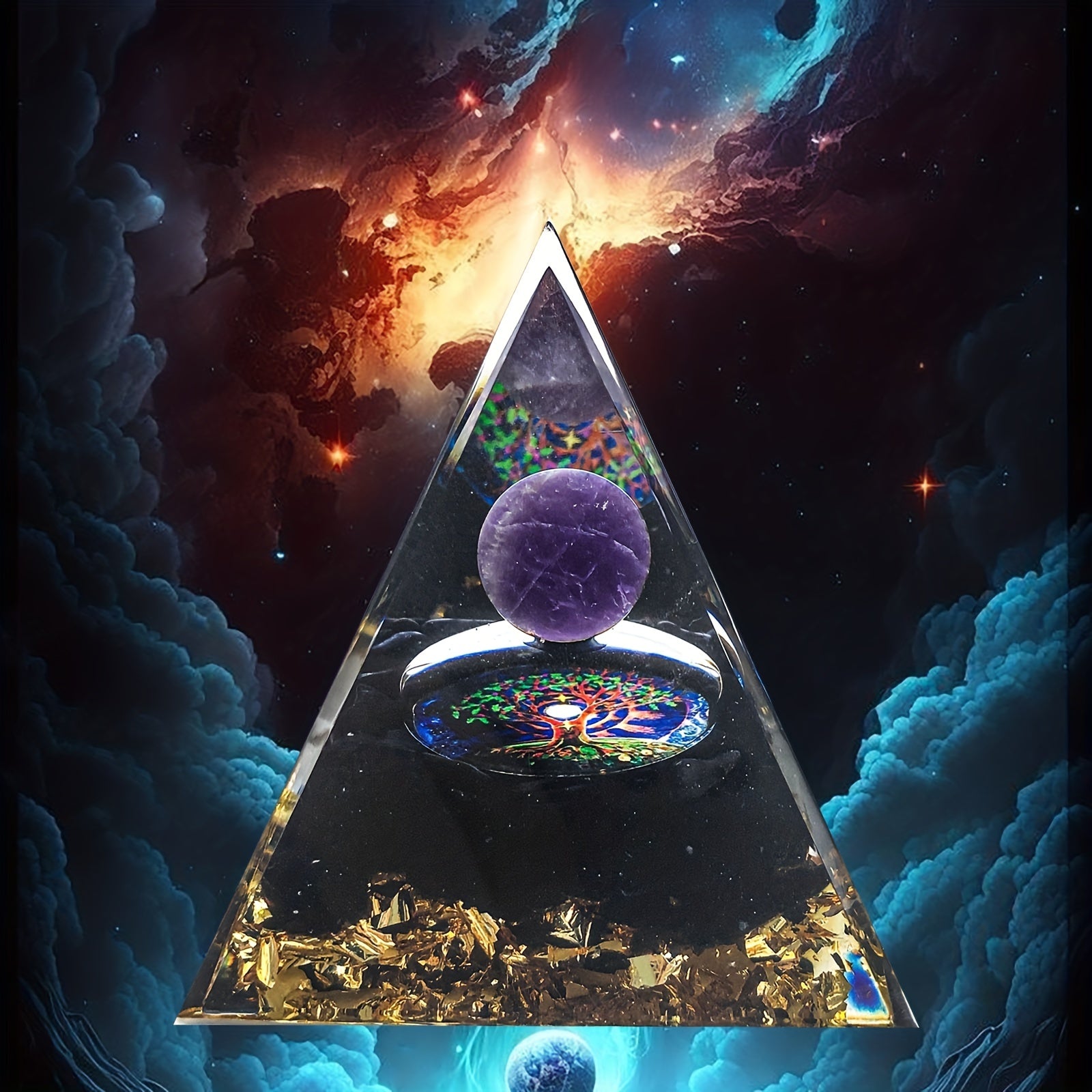 Enhance your space with this beautiful Orgone Crystal Tree Pyramid, perfect for chakra meditation and healing. Ideal for interior decoration, holidays, birthdays, and summer parties.