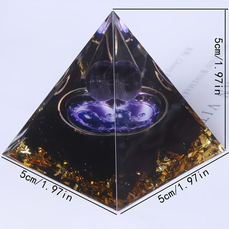 Enhance your space with this beautiful orgonite pyramid featuring amethyst crystal. Perfect for wealth and interior decoration.