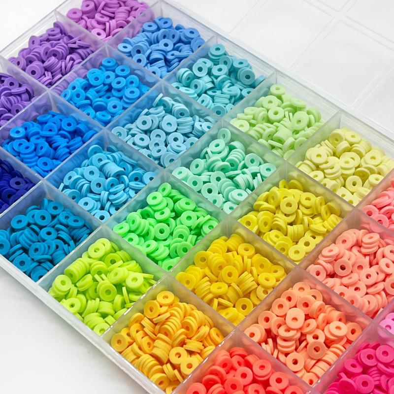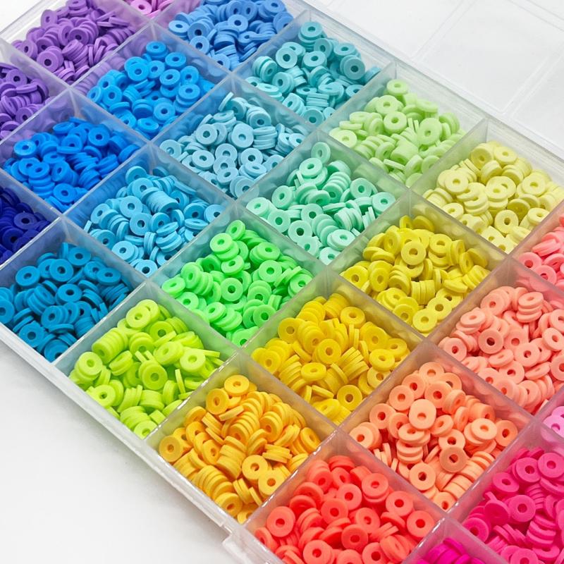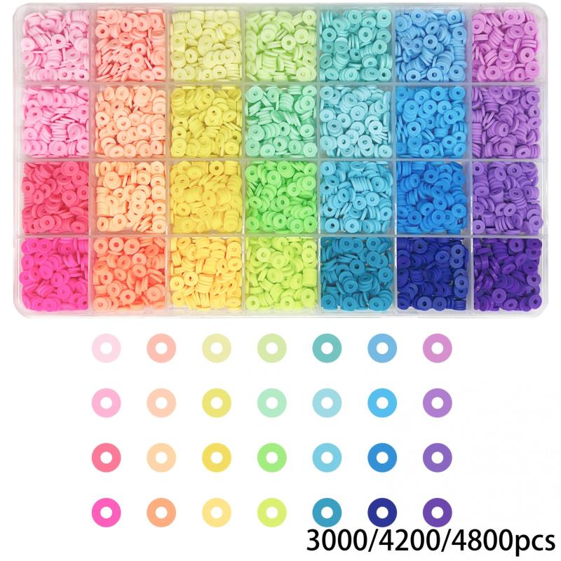 This kit includes 3000/4200/4800 flat round polymer clay beads in 28 vibrant colors. Perfect for making jewelry.