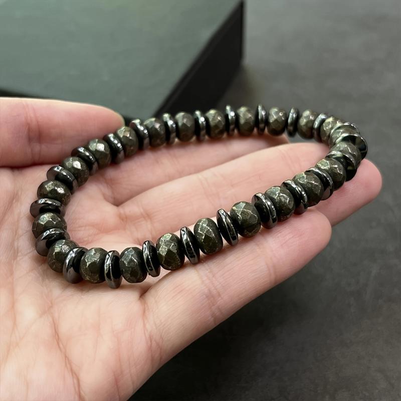 This bracelet features pyrite and hematite beads that are believed to attract wealth and abundance while providing grounding and protection. It is a spiritual chakra necklace suitable for both men and women with a bohemian style.
