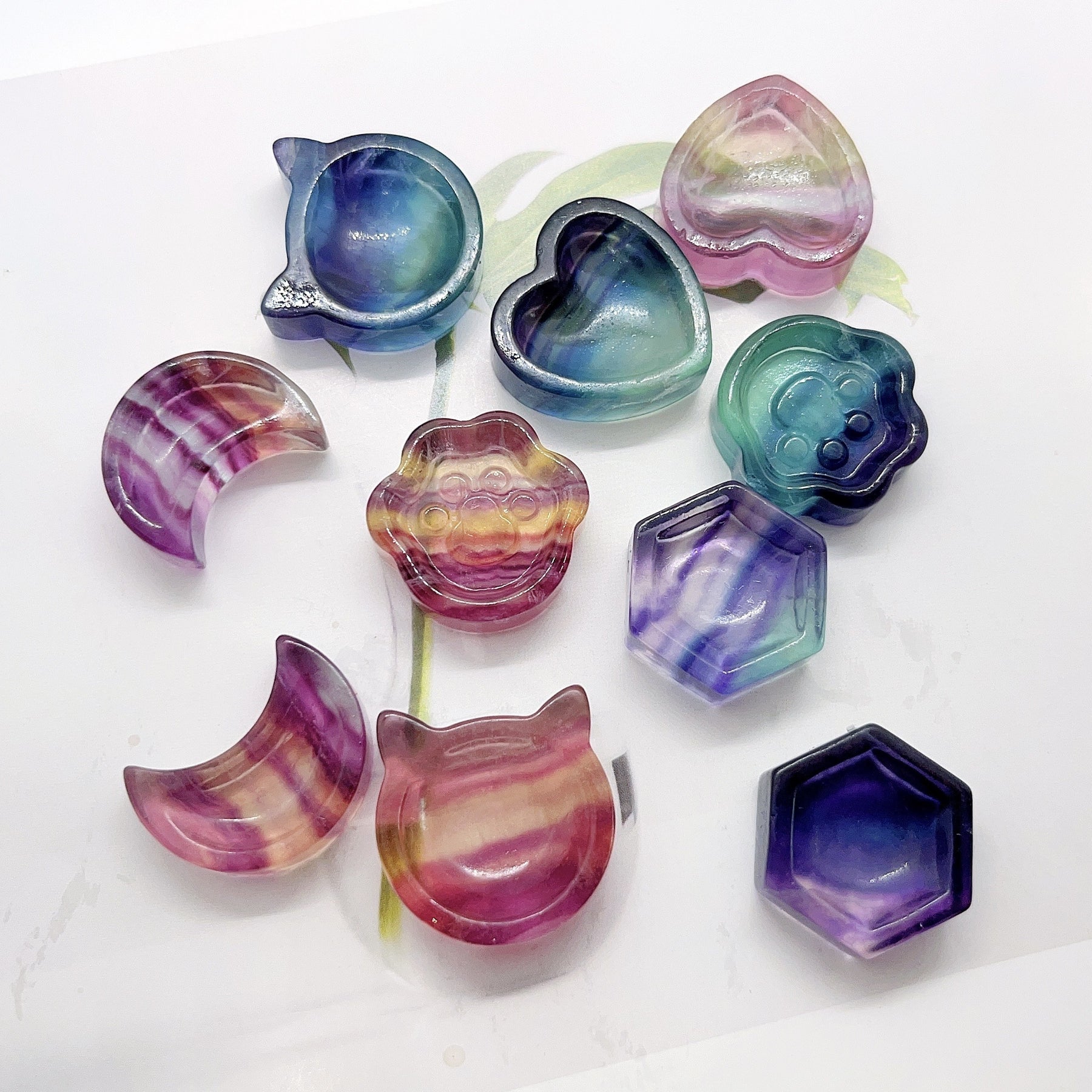 Rainbow Fluorite Bowl Healing Crystal Natural Stone Very Nice Charm