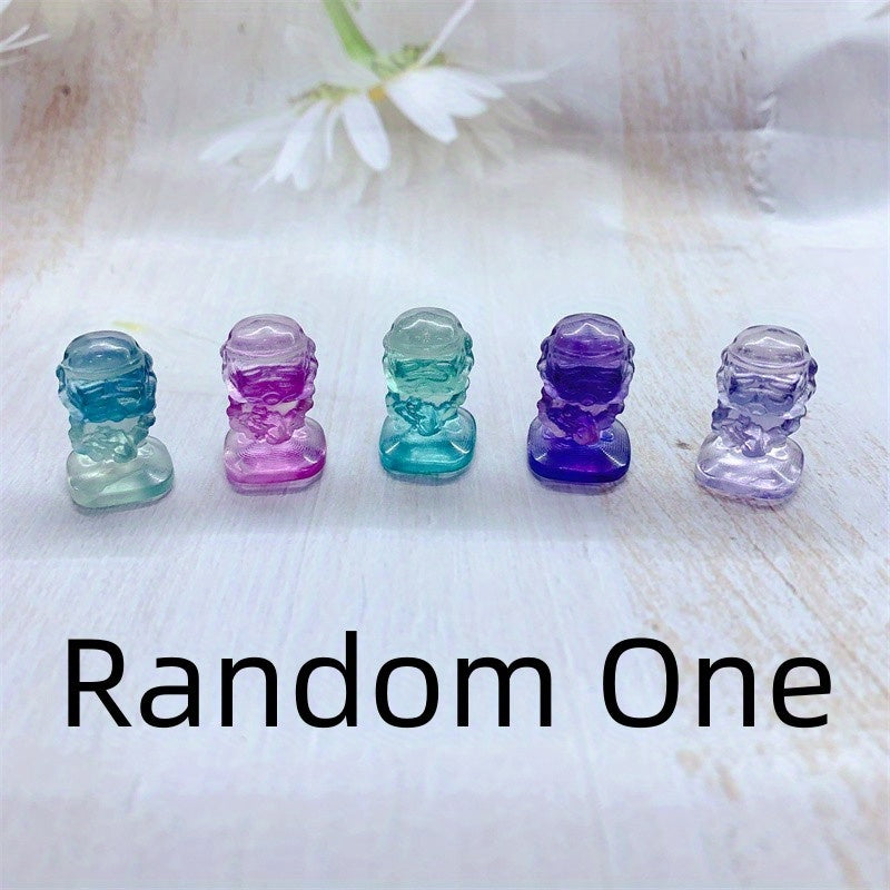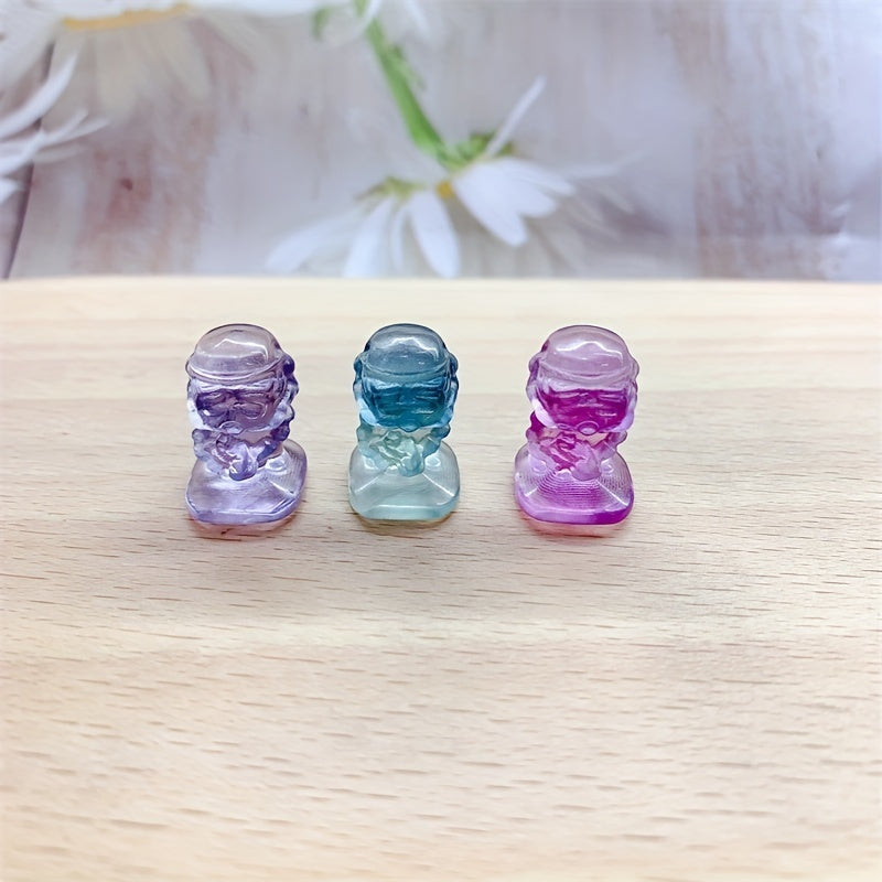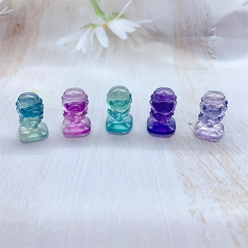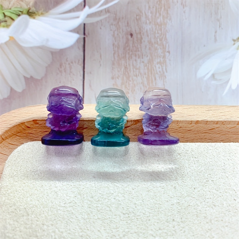 This unique handcrafted rainbow fluorite conch girl carving showcases natural colorful crystal healing properties. A great gift choice.