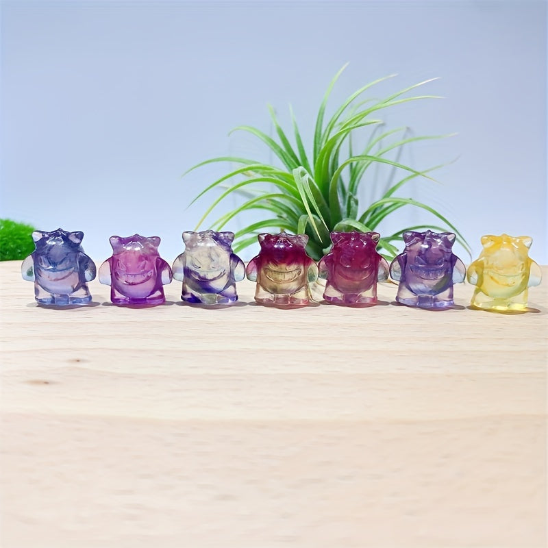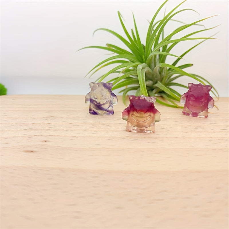 This handcrafted rainbow fluorite evil carving crystal is perfect for healing and bringing positive energy into your space.