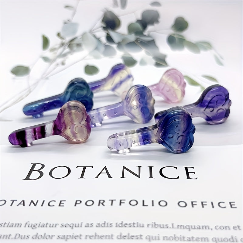 This rainbow fluorite key carving is a beautiful and creative healing crystal crafted from natural stone. Perfect for home decoration or as a unique gift.
