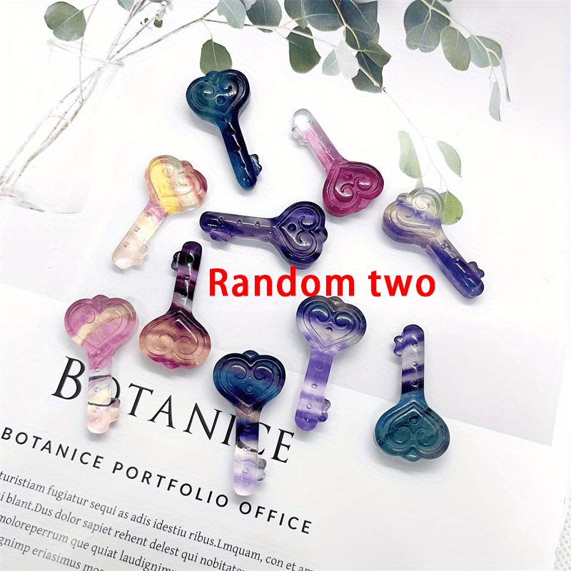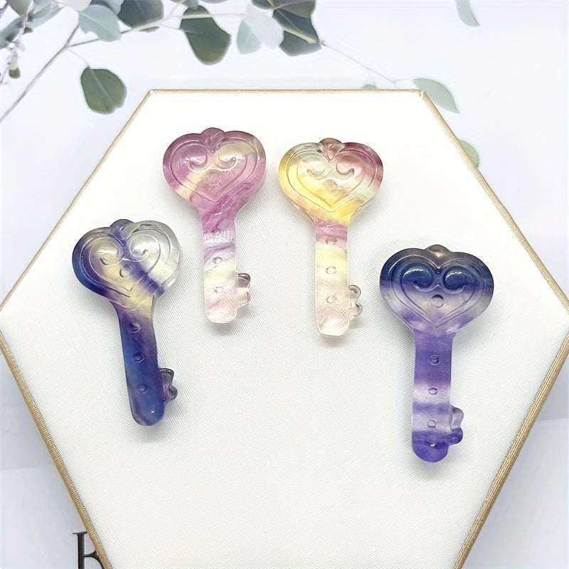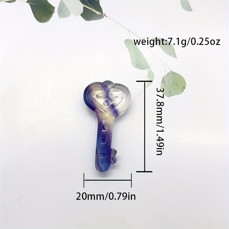 Rainbow Fluorite Key Carving Healing Crystal Stone Home Decoration