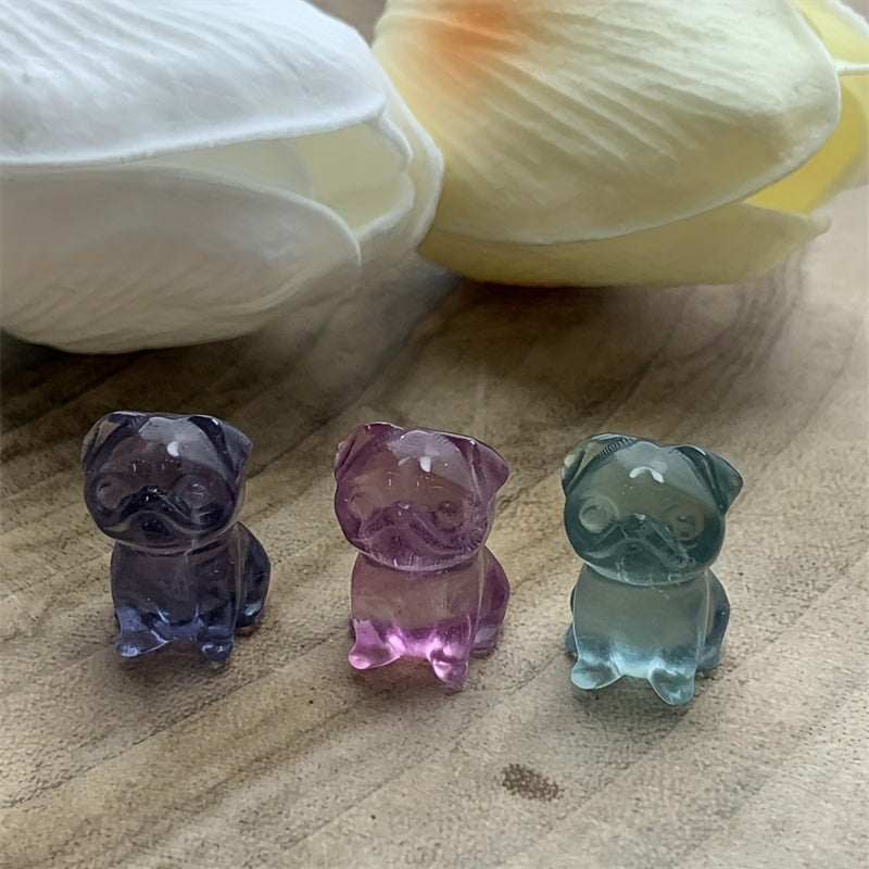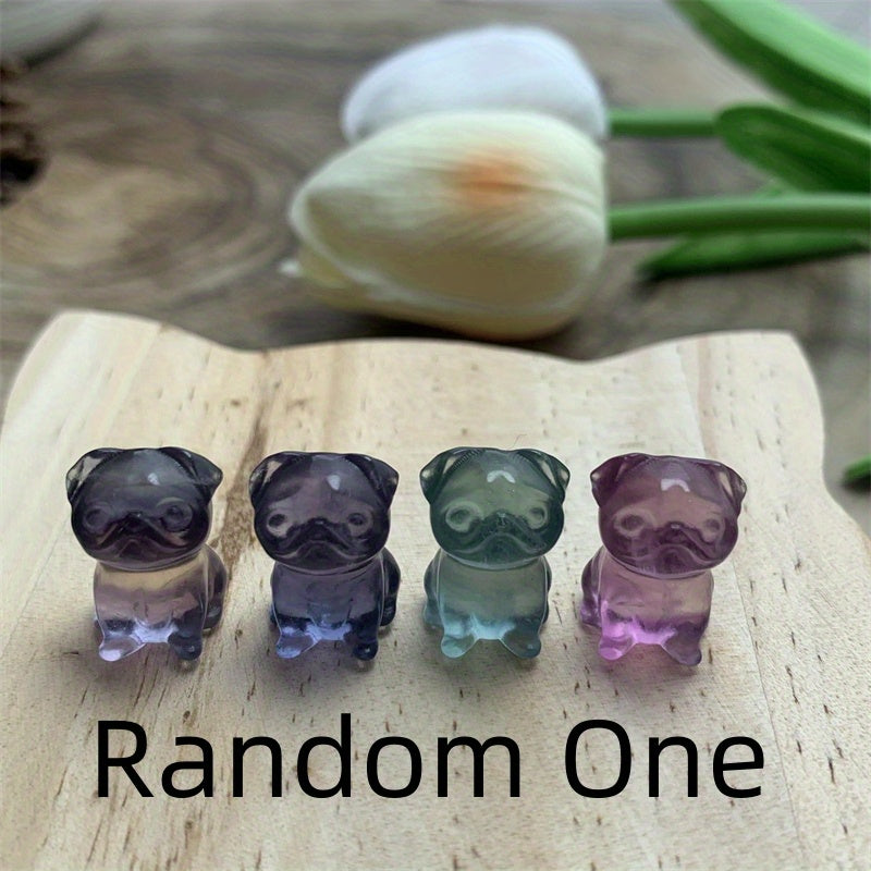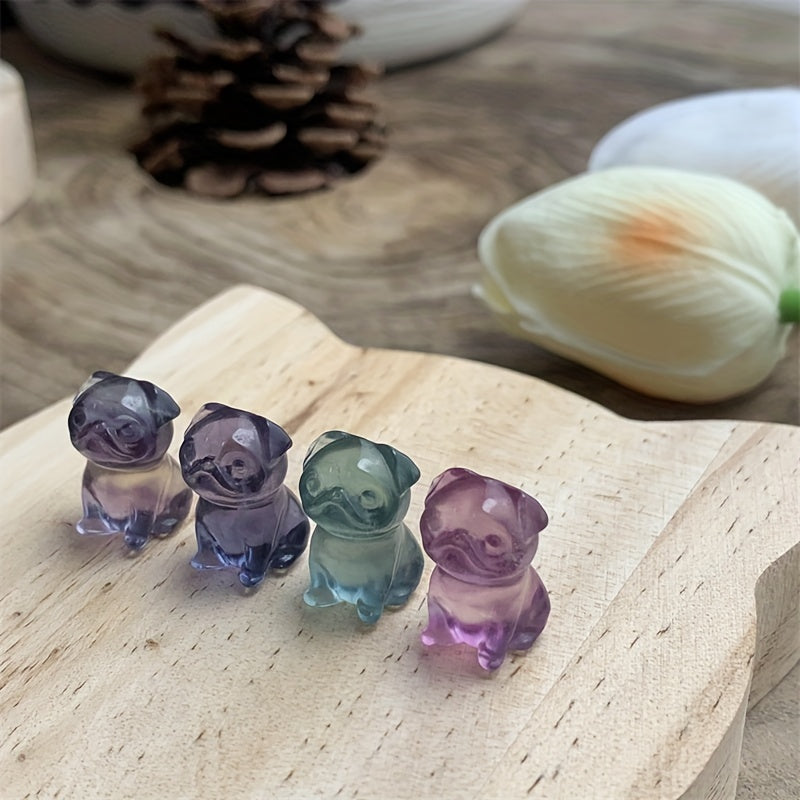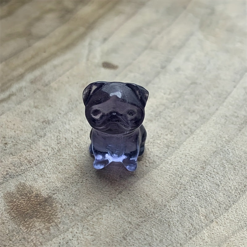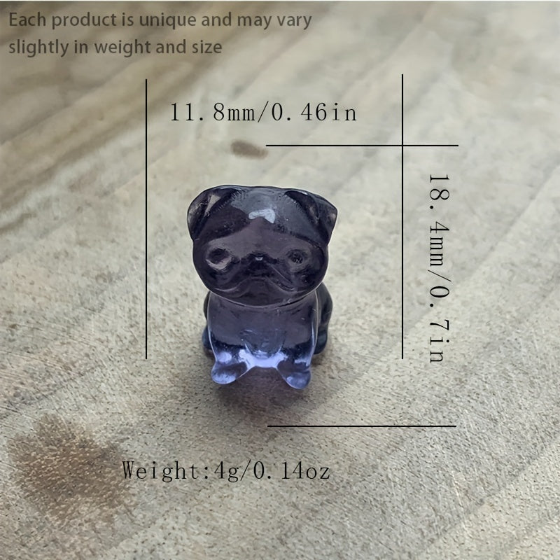 • Handcrafted Pug Dog carving made from Rainbow Fluorite crystal