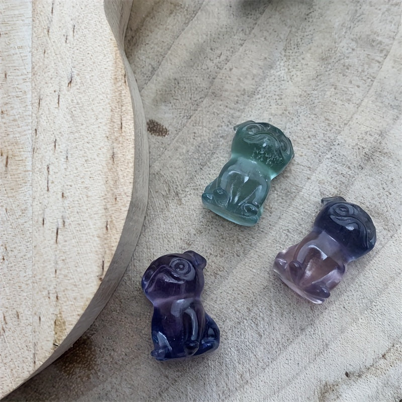 Rainbow Fluorite Pug Dog Carving Crystal Healing Stones