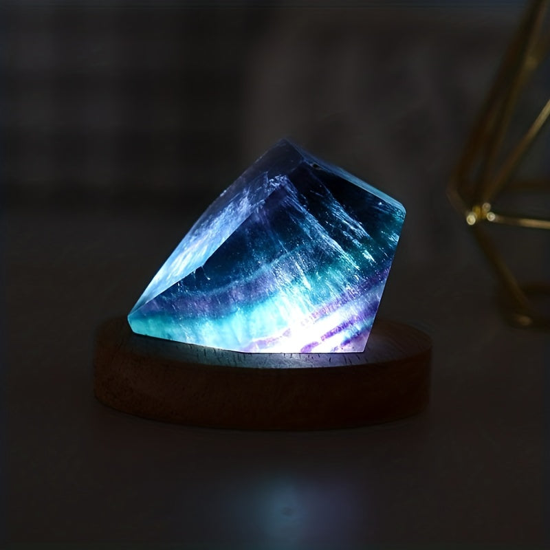 Rainbow Fluorite Quartz Crystal Night Light Lamp Healing Gemstone Decor