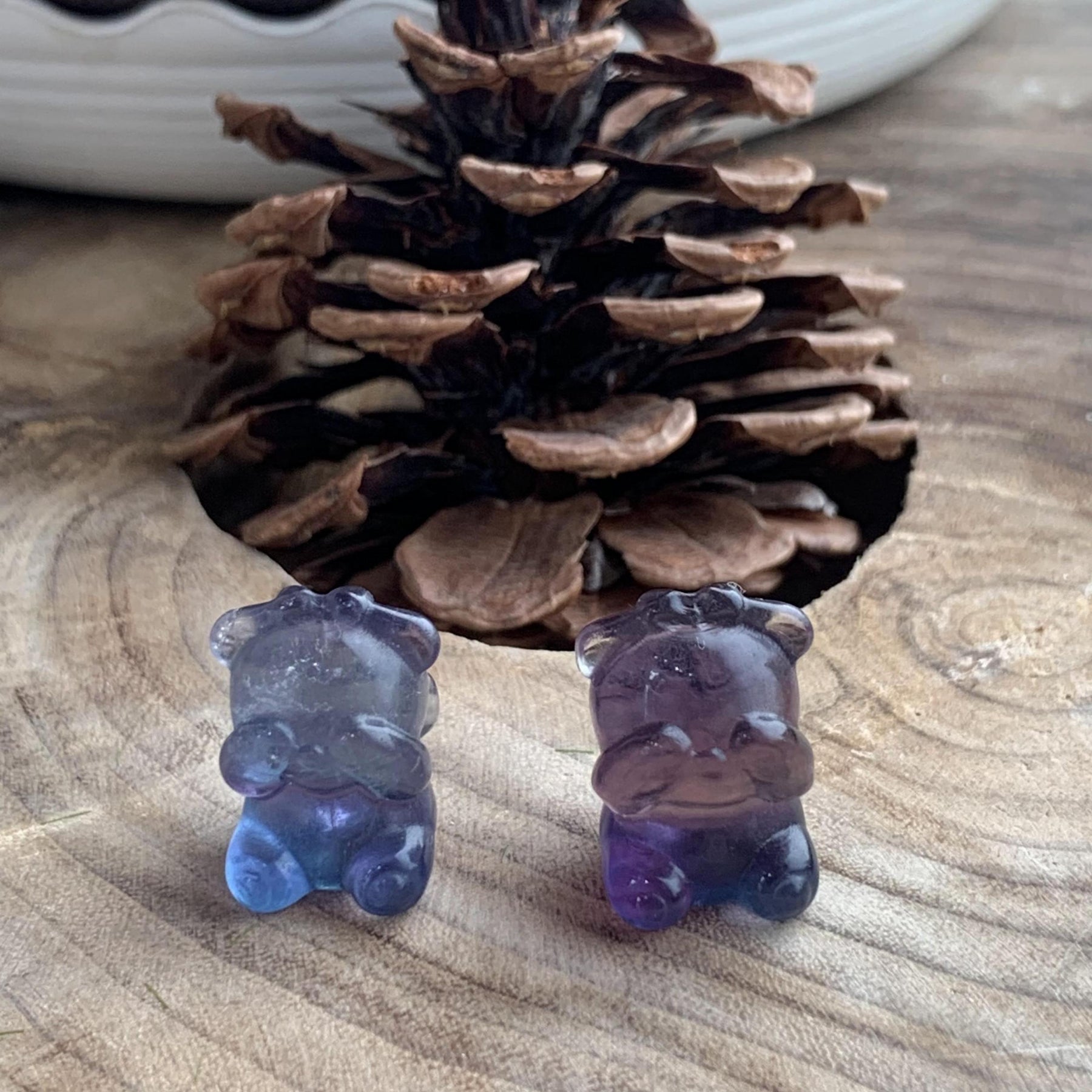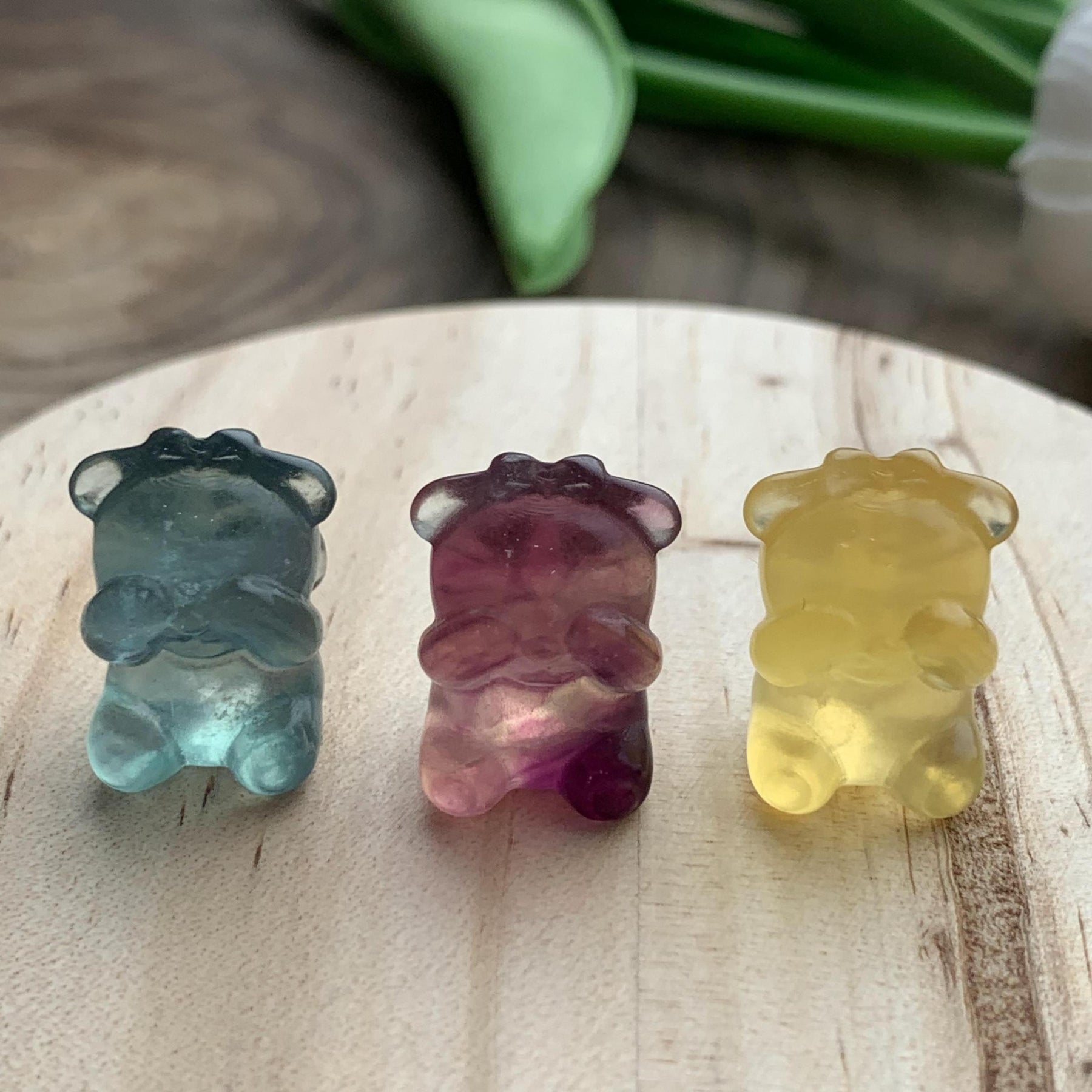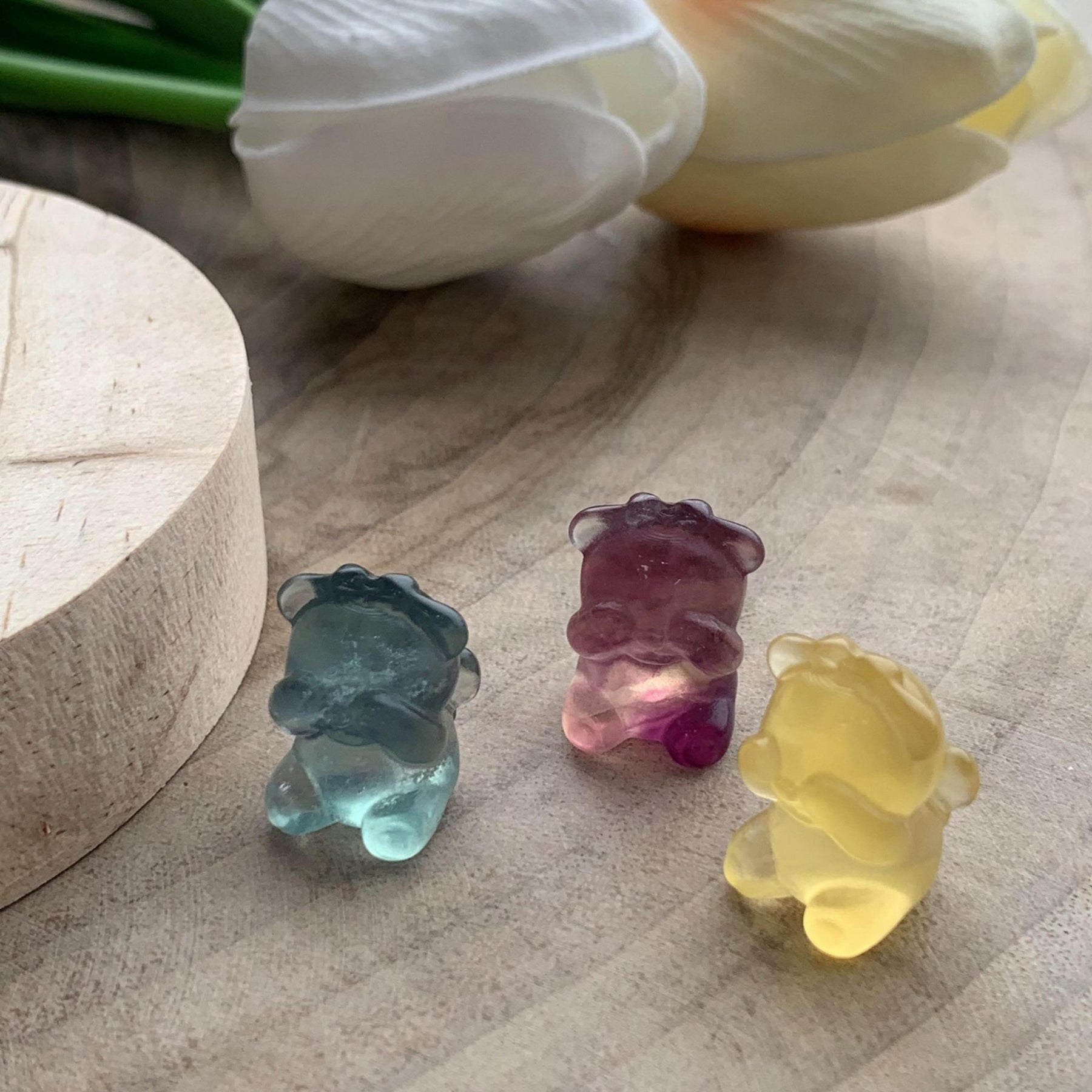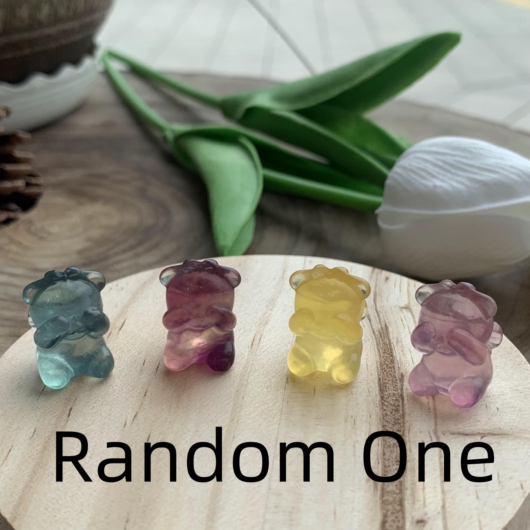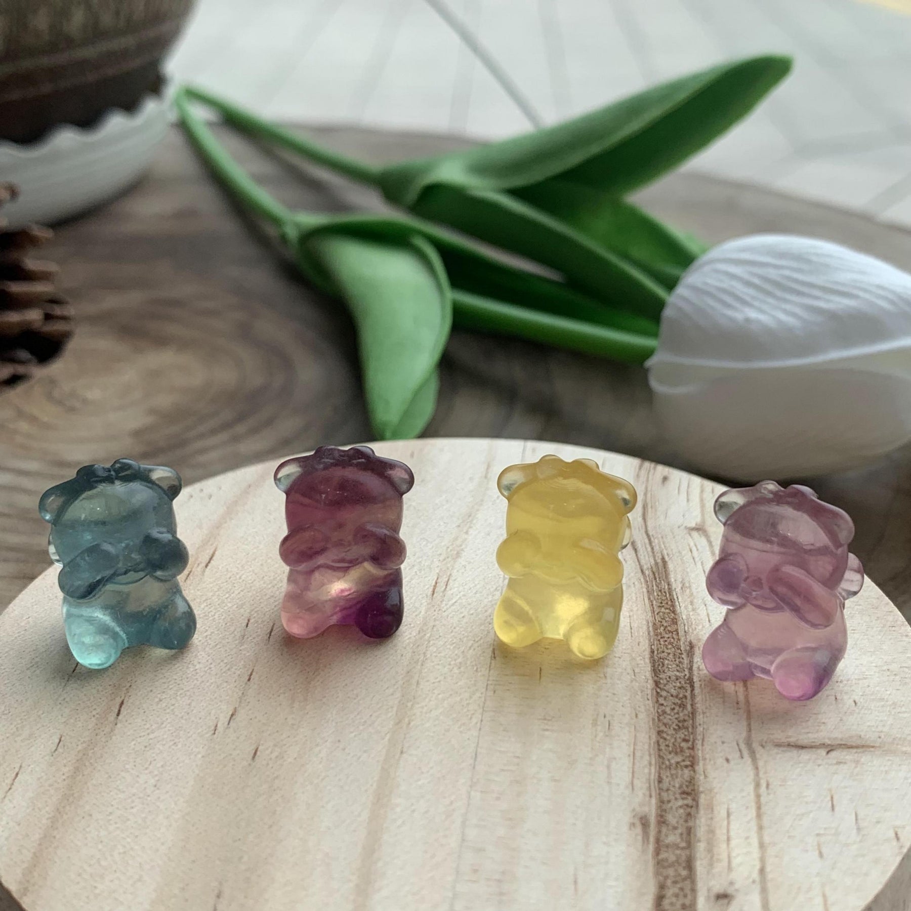 Adorable handcrafted shy girl carving made of rainbow fluorite. These colorful toys are perfect for healing and relaxation.