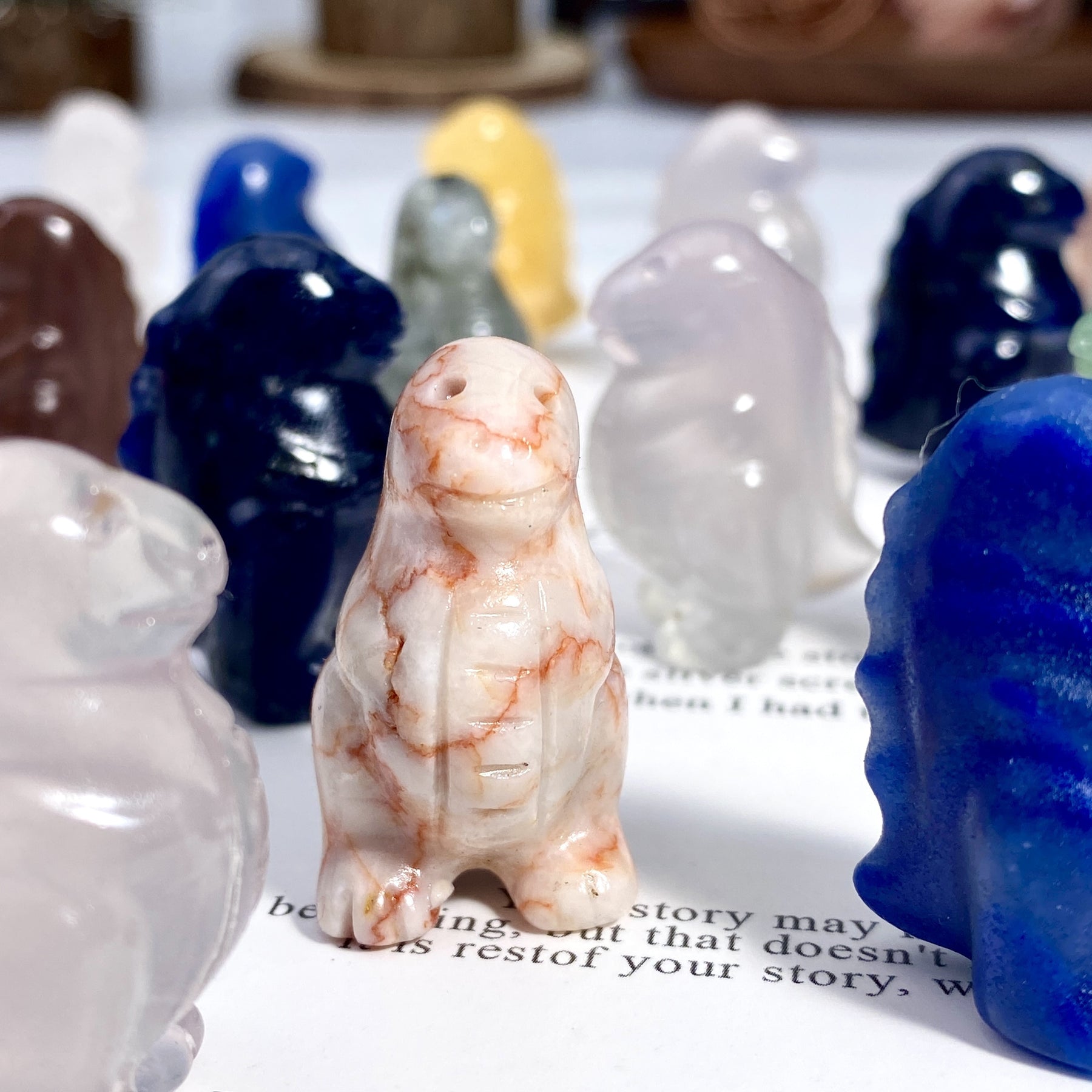 Enhance your space with these crystal dinosaurs that are perfect for home, car, or party decorations. Each piece is unique and adds a touch of charm.