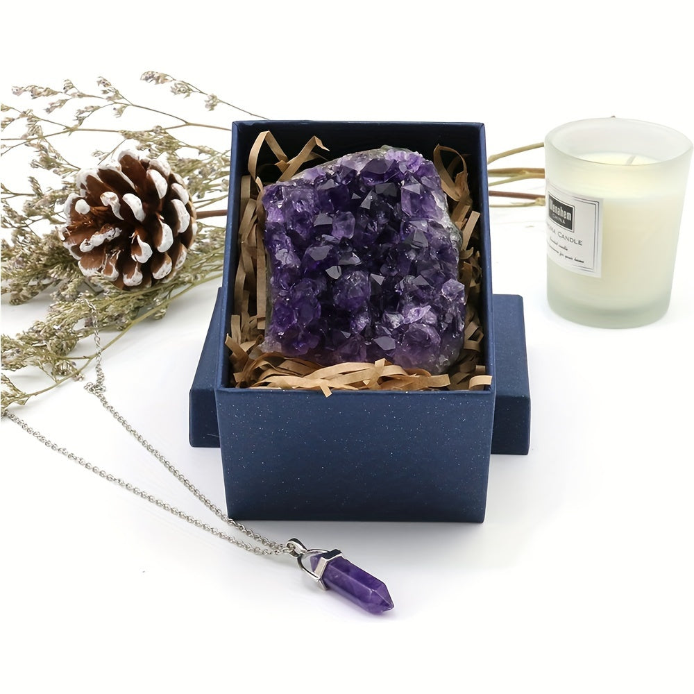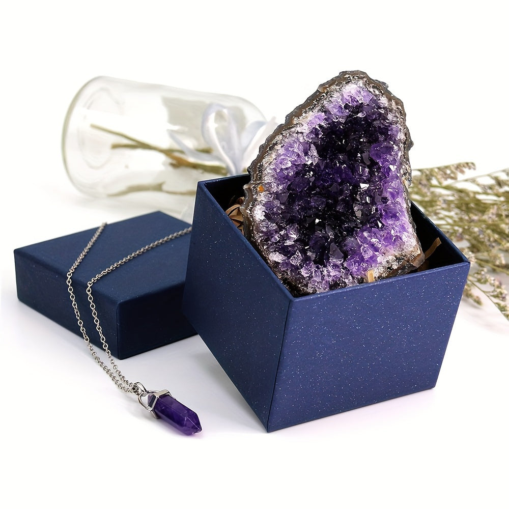 Natural raw stone geode pendant perfect for meditation or jewelry making. Genuine crystal cluster with approximately 90-72g weight. Ideal for men and women.